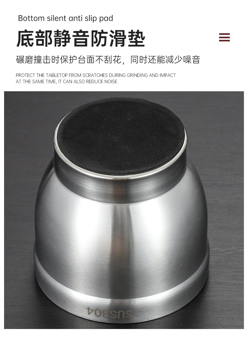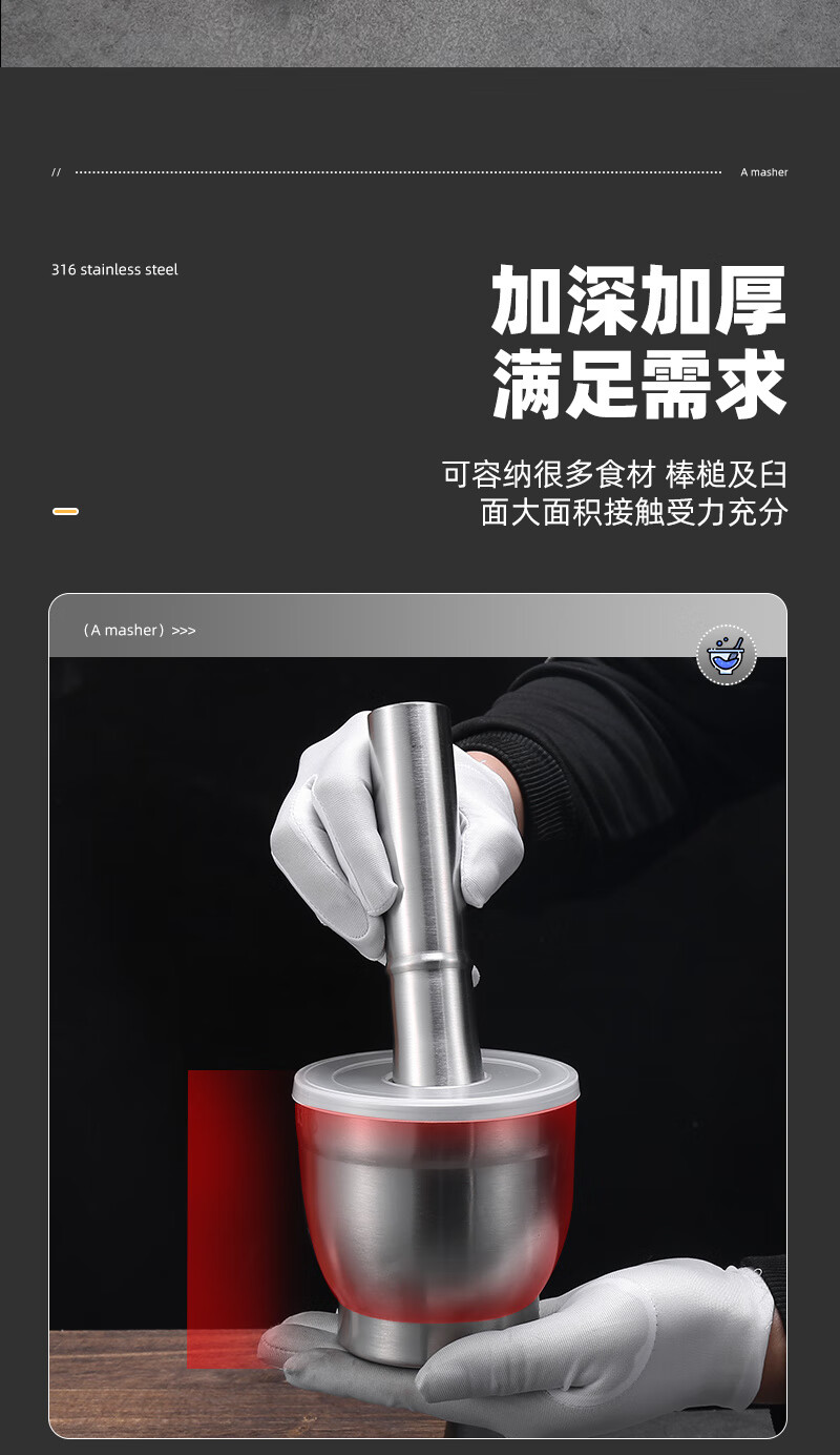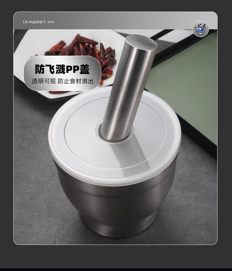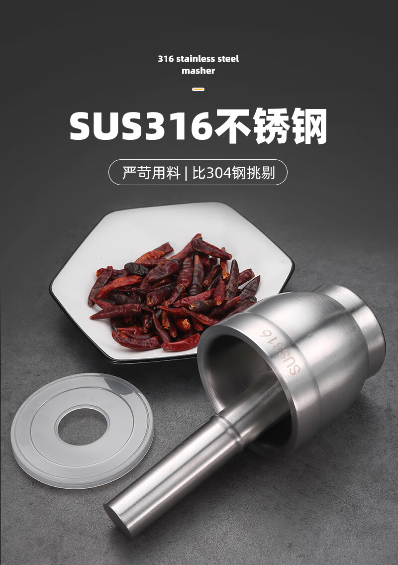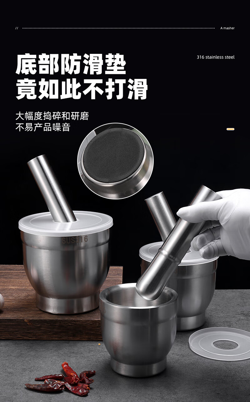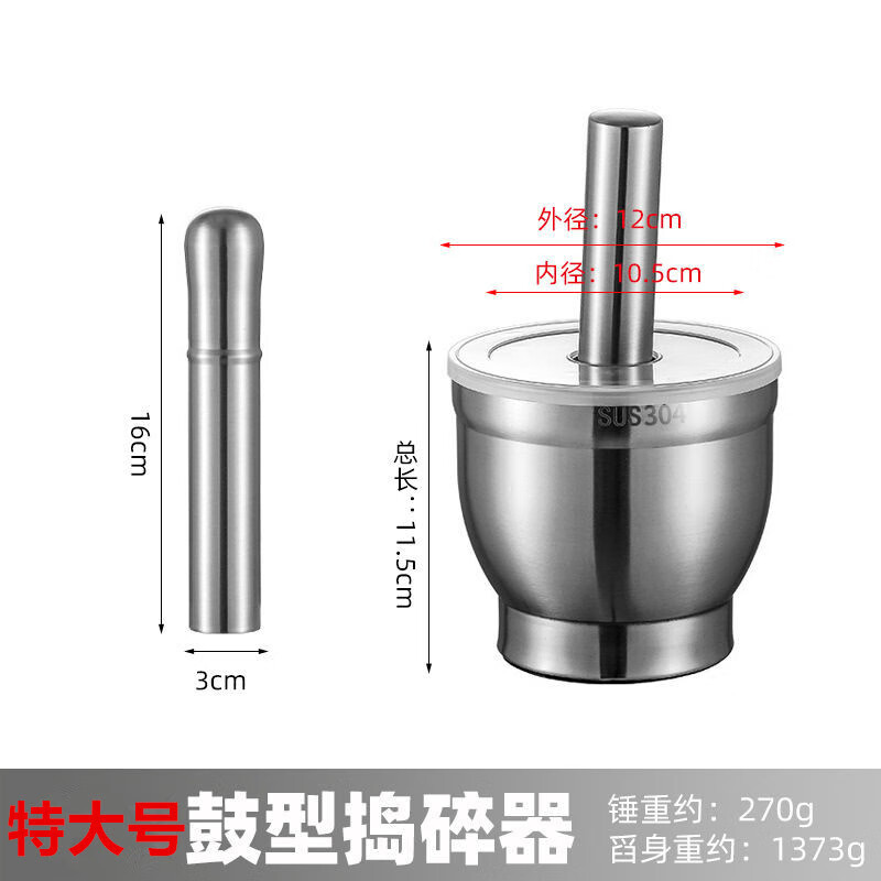 Enshousu stainless steel masher solid garlic masher household grinding jar manual garlic masher garlic mortar 304 separate lid accessories + lid