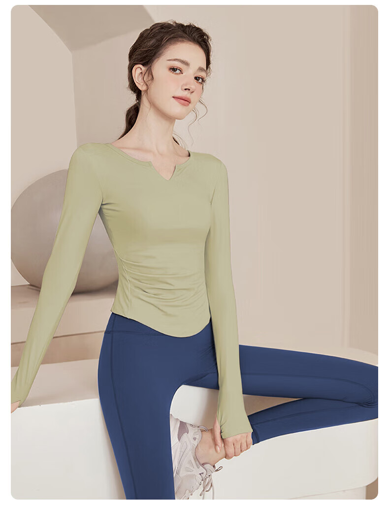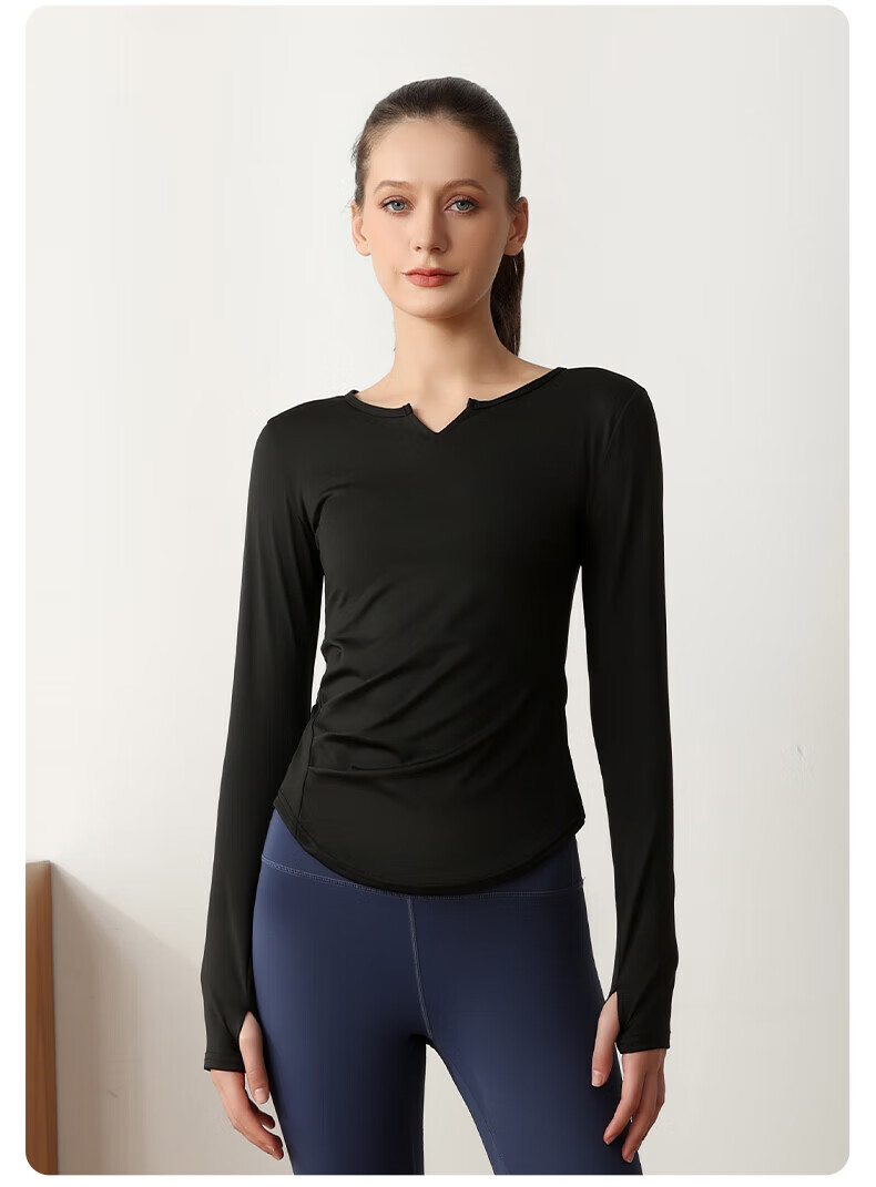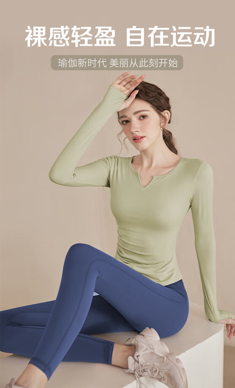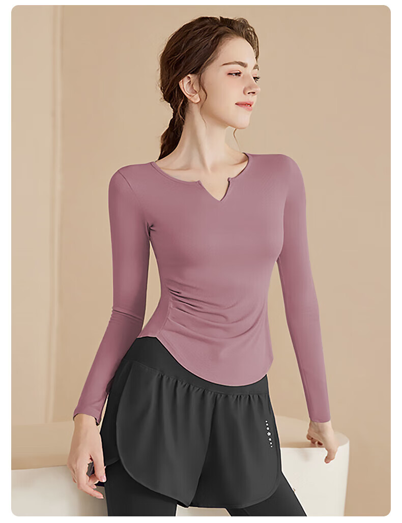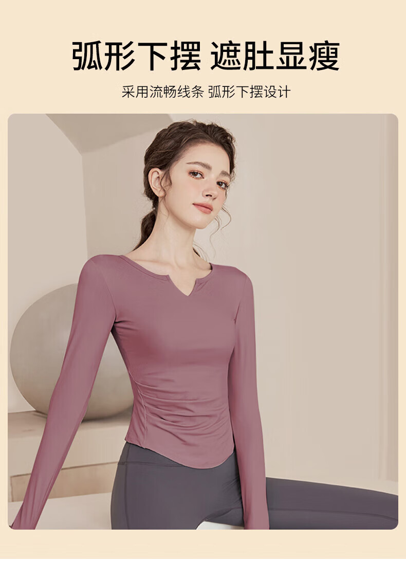 Bo Na Ling yoga wear women's autumn and winter sportswear long-sleeved T-shirt tight quick-drying fitness Pilates training clothes top V-neck waist berry purple M 85-110Jin Jin equals 0.5 kg