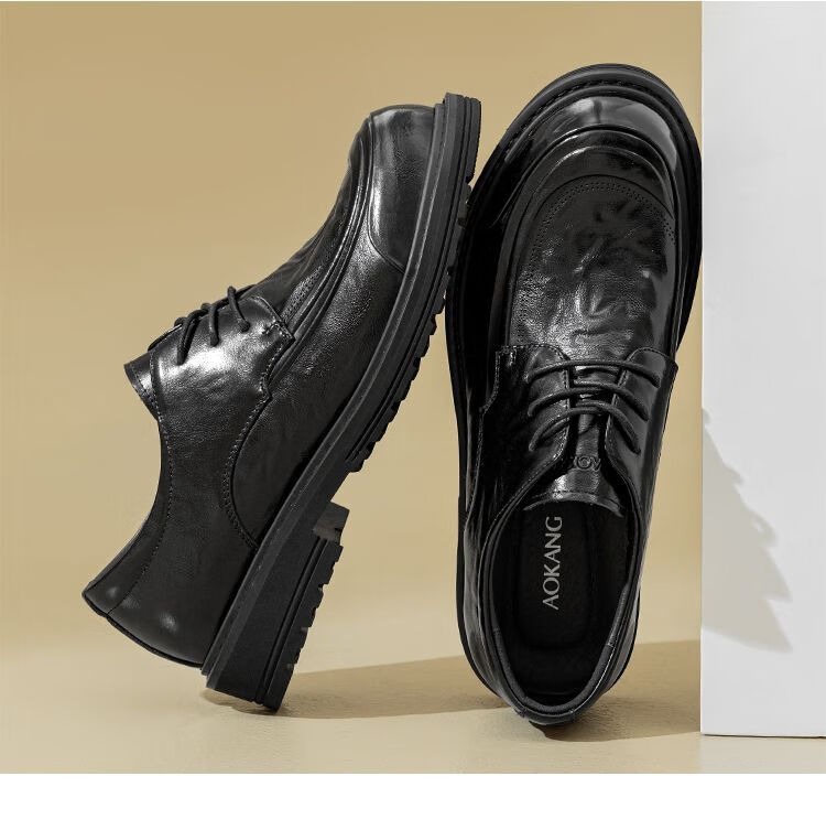 Aokang men's shoes 2025 new spring and autumn business casual leather shoes men's genuine leather formal shoes men's derby shoes British commuter shoes black 1245211147N 40 one size smaller than sports shoes