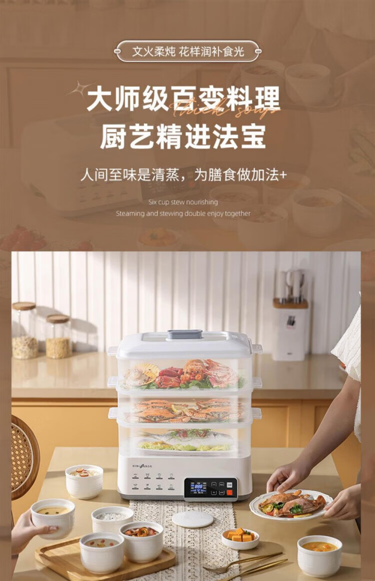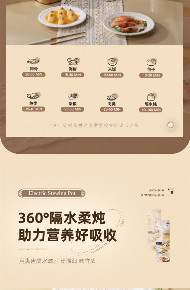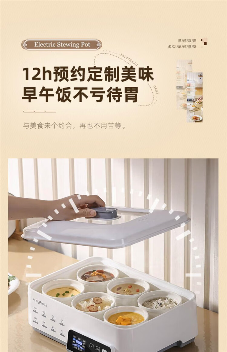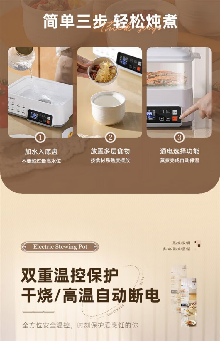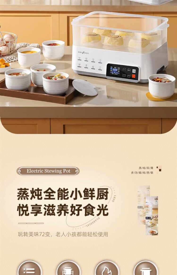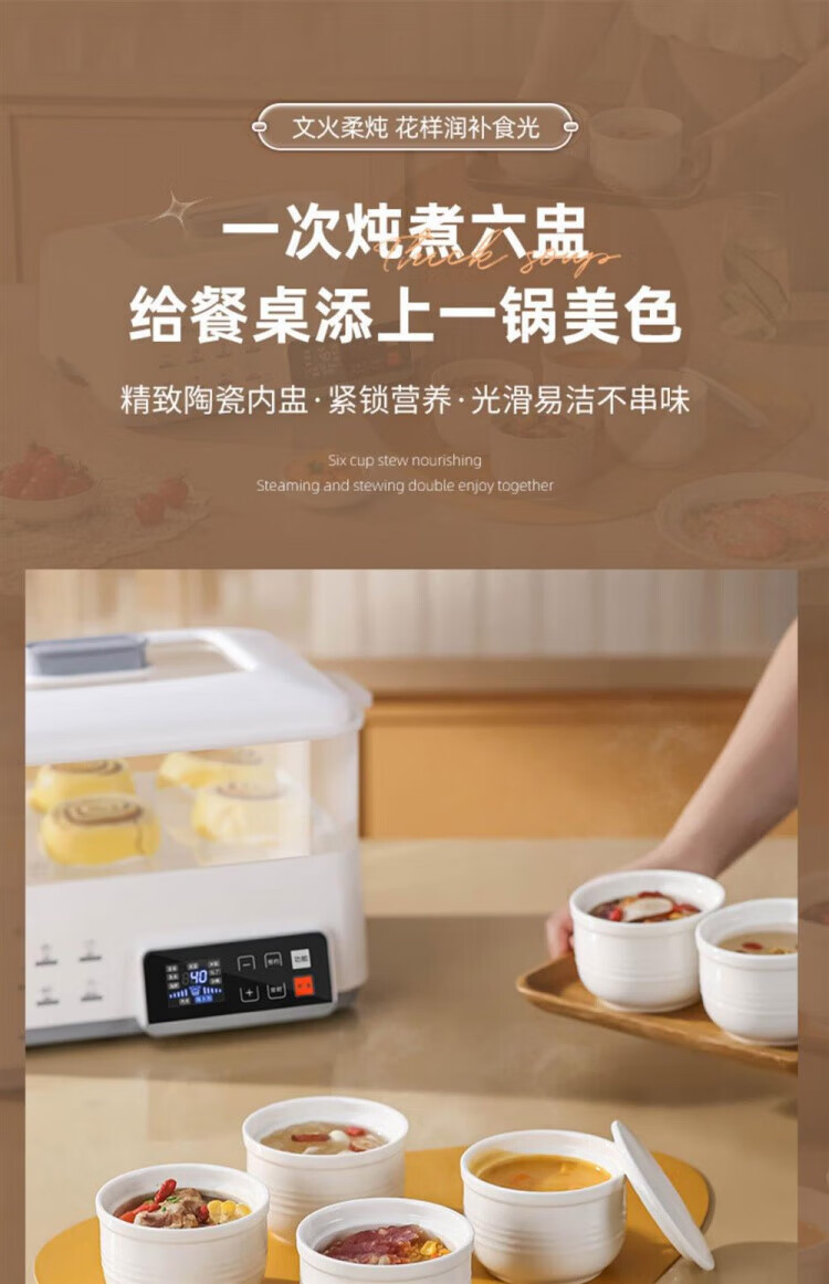 Mingjupai German electric stew pot for 4 people and 6 people, with water-proof ceramic liner for quick stew, household fully automatic reservation, large-capacity soup-making electric steamer, all-in-one stew pot, porridge and health care, intelligent steaming stew pot + six stew pots + 1 layer steaming grid 25L German quality - 10 years warranty
