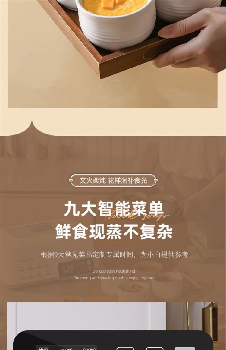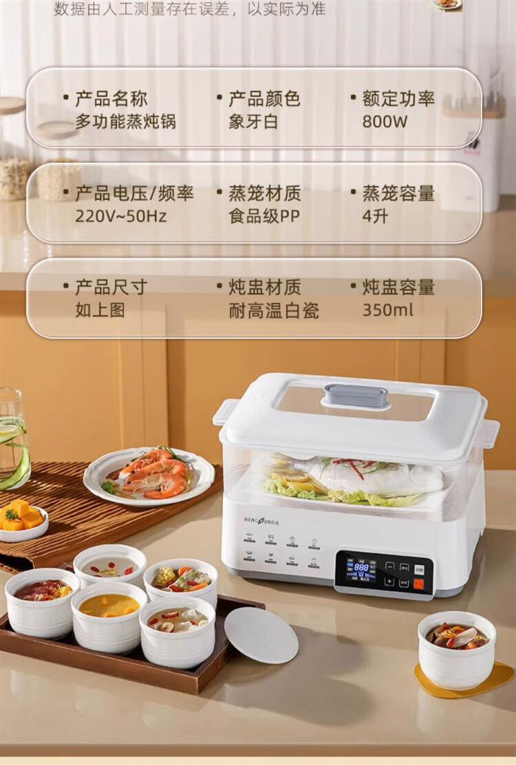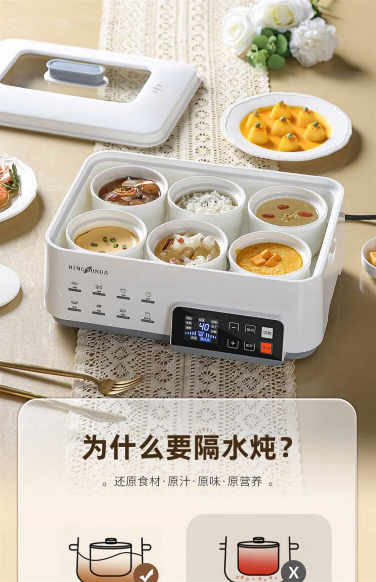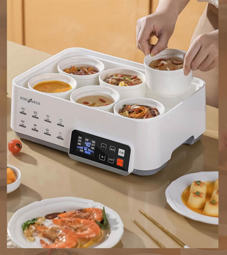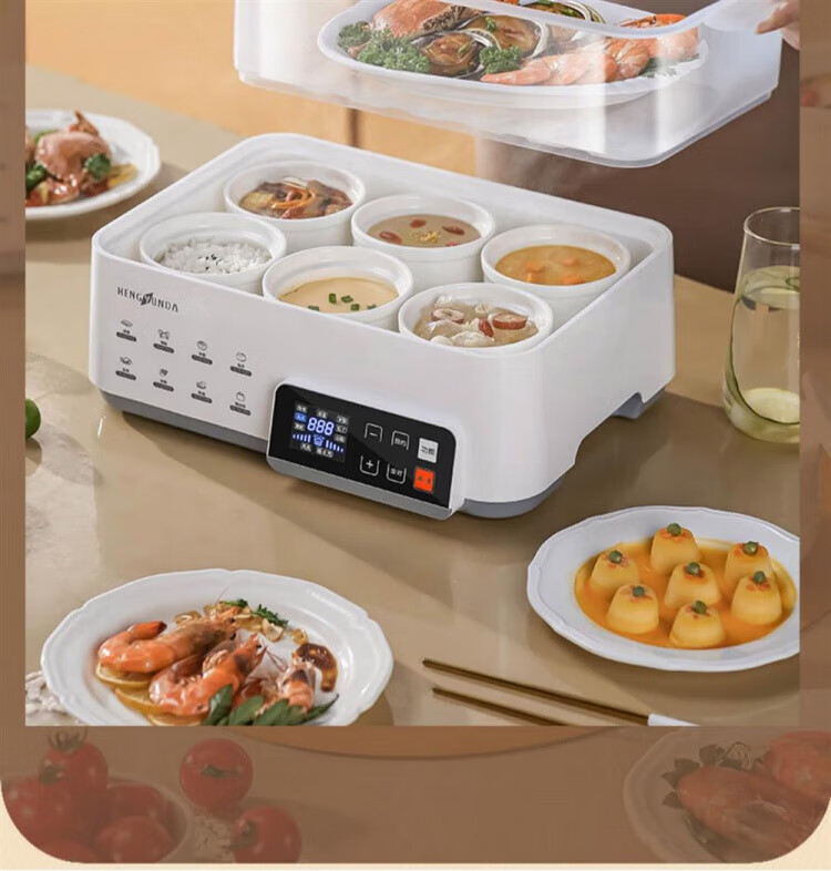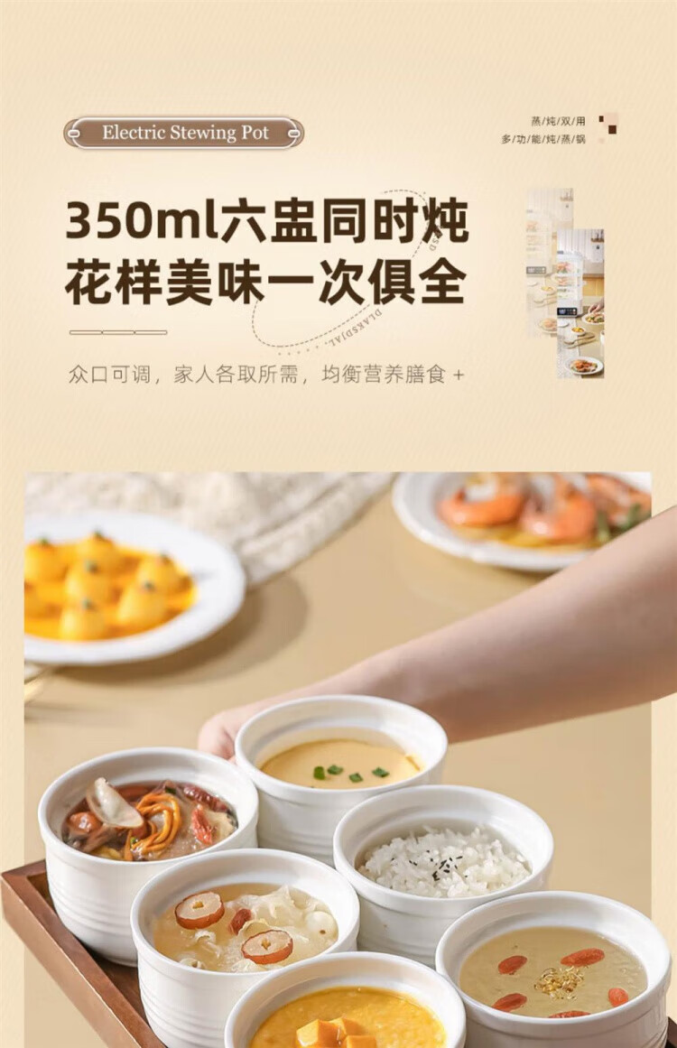 Mingjupai German electric stew pot for 4 people and 6 people, with water-proof ceramic liner for quick stew, household fully automatic reservation, large-capacity soup-making electric steamer, all-in-one stew pot, porridge and health care, intelligent steaming stew pot + six stew pots + 1 layer steaming grid 25L German quality - 10 years warranty