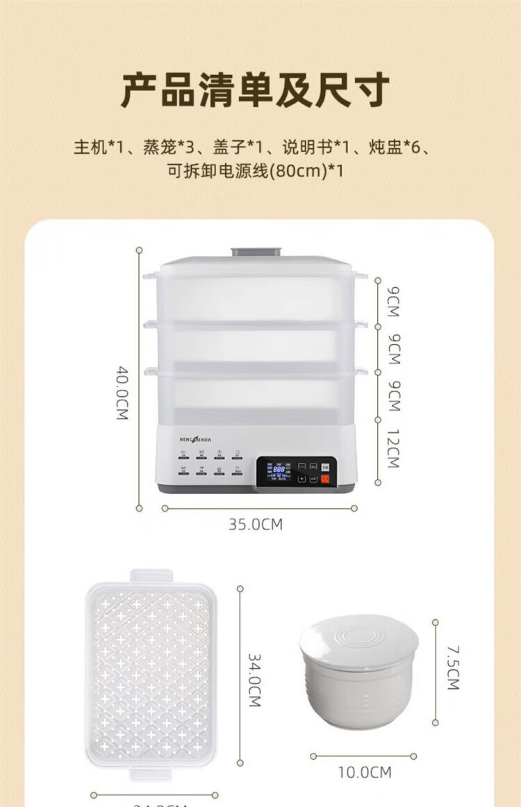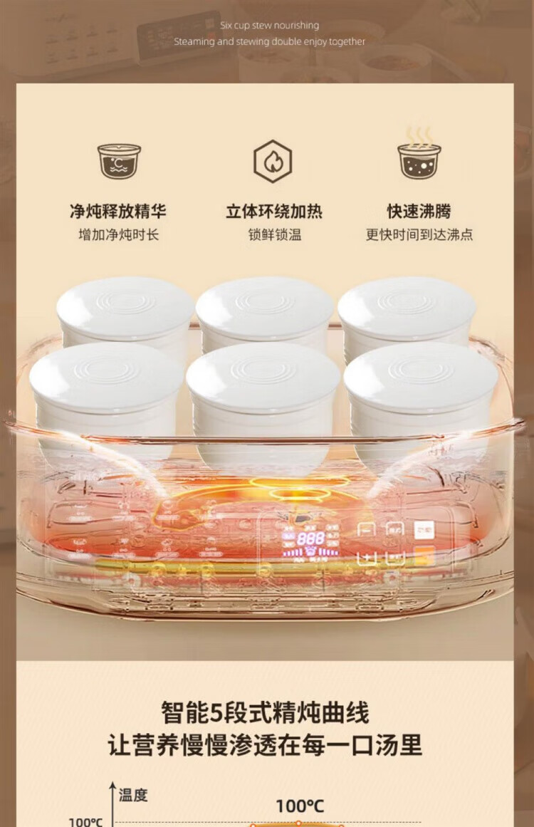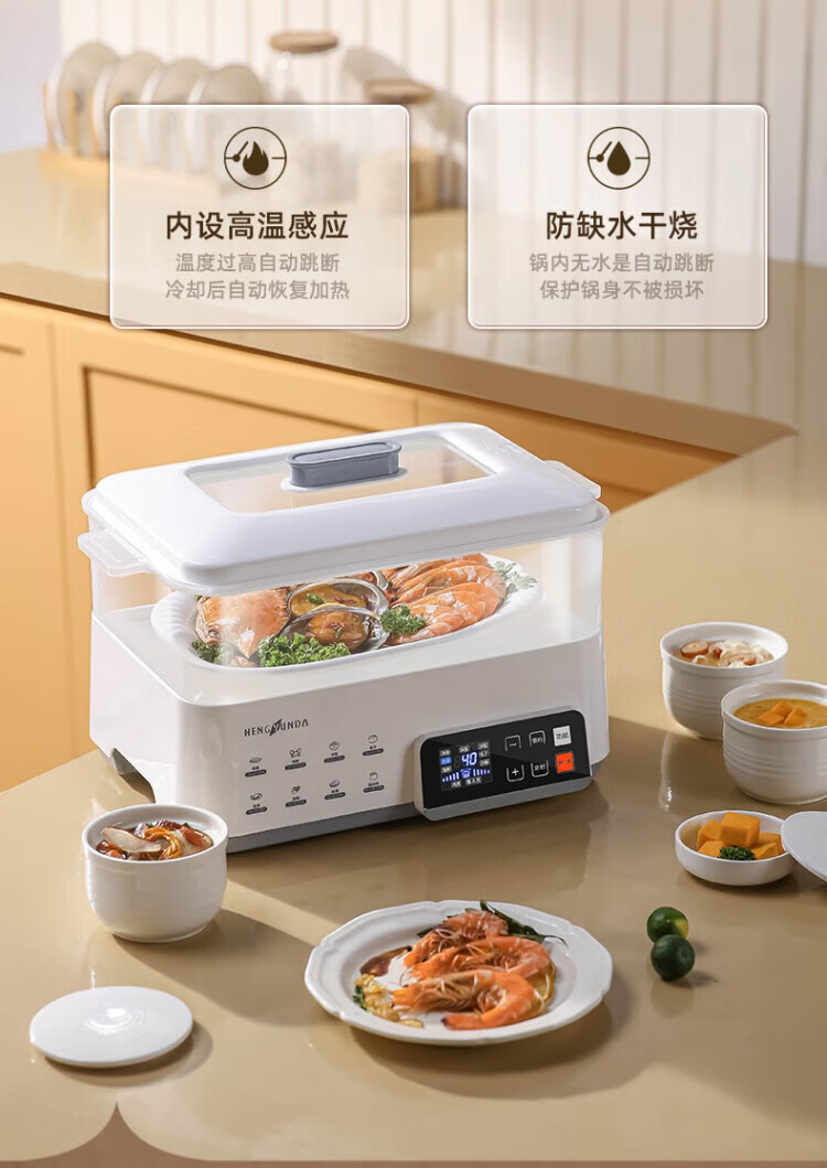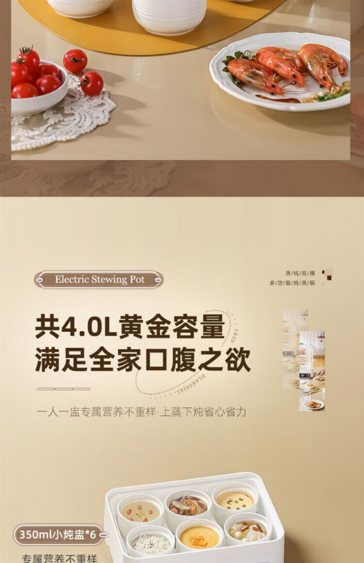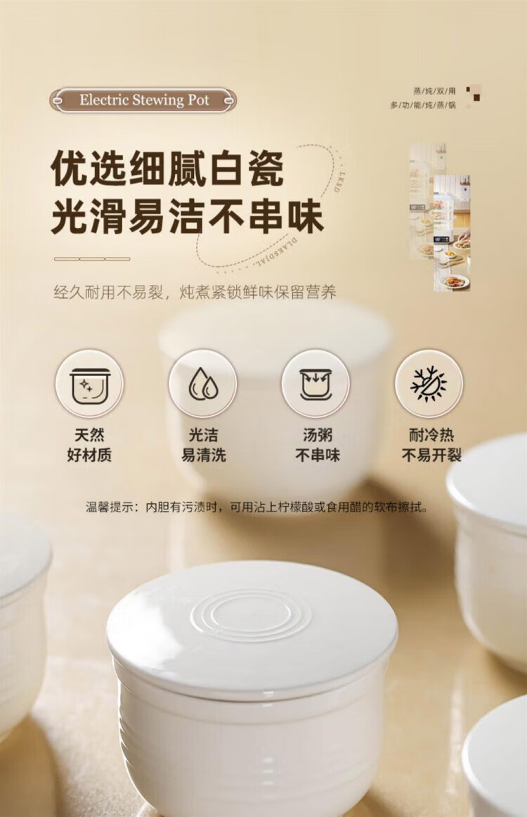 Mingjupai German electric stew pot for 4 people and 6 people, with water-proof ceramic liner for quick stew, household fully automatic reservation, large-capacity soup-making electric steamer, all-in-one stew pot, porridge and health care, intelligent steaming stew pot + six stew pots + 1 layer steaming grid 25L German quality - 10 years warranty