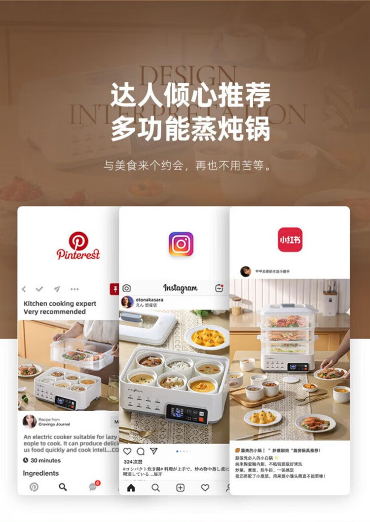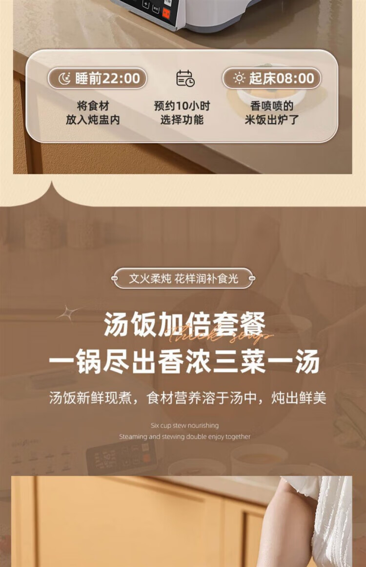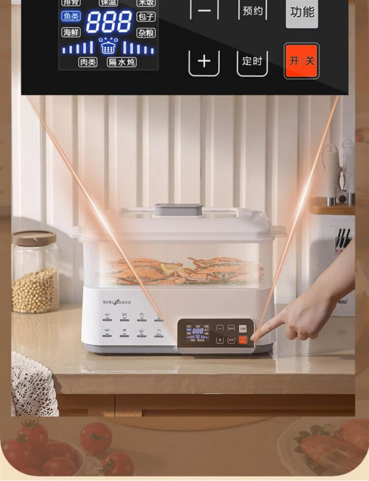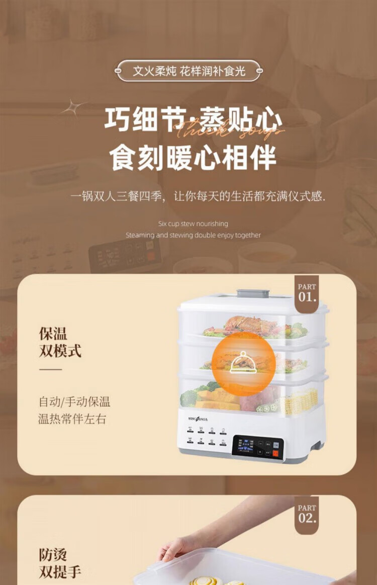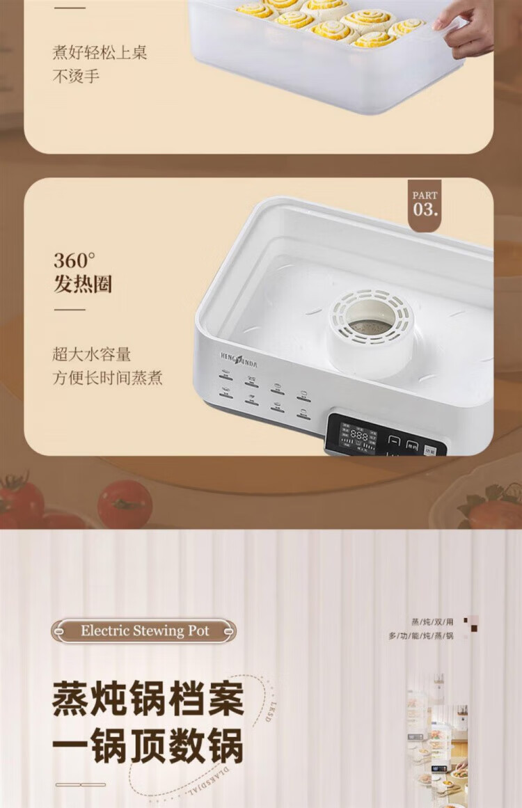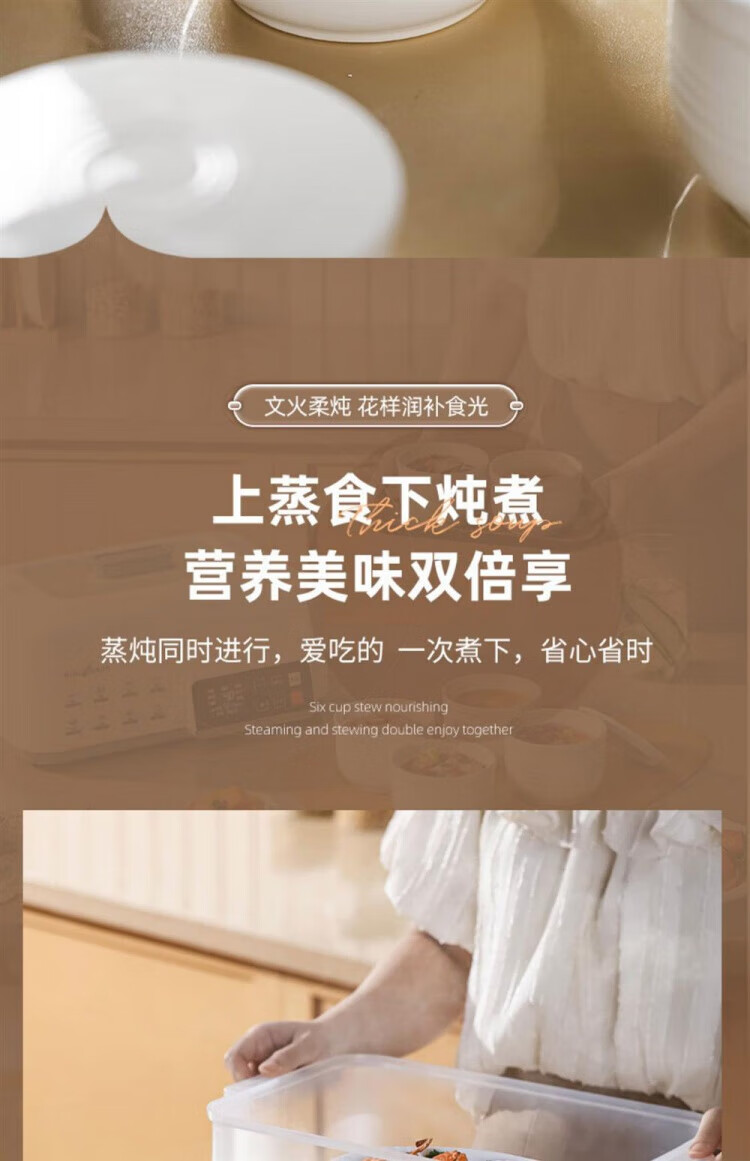 Mingjupai German electric stew pot for 4 people and 6 people, with water-proof ceramic liner for quick stew, household fully automatic reservation, large-capacity soup-making electric steamer, all-in-one stew pot, porridge and health care, intelligent steaming stew pot + six stew pots + 1 layer steaming grid 25L German quality - 10 years warranty