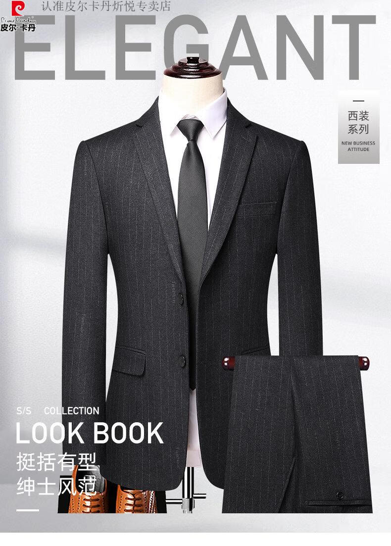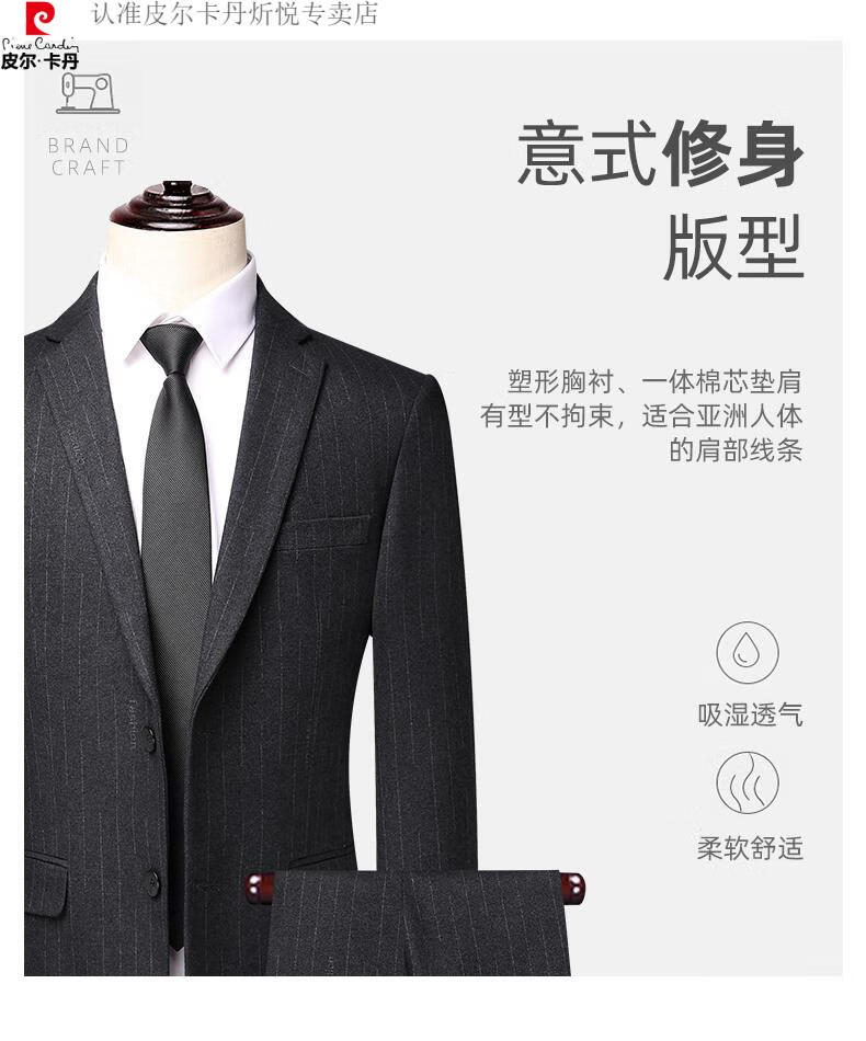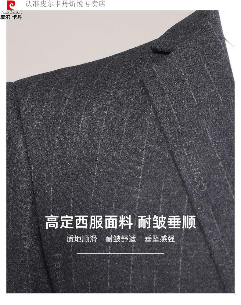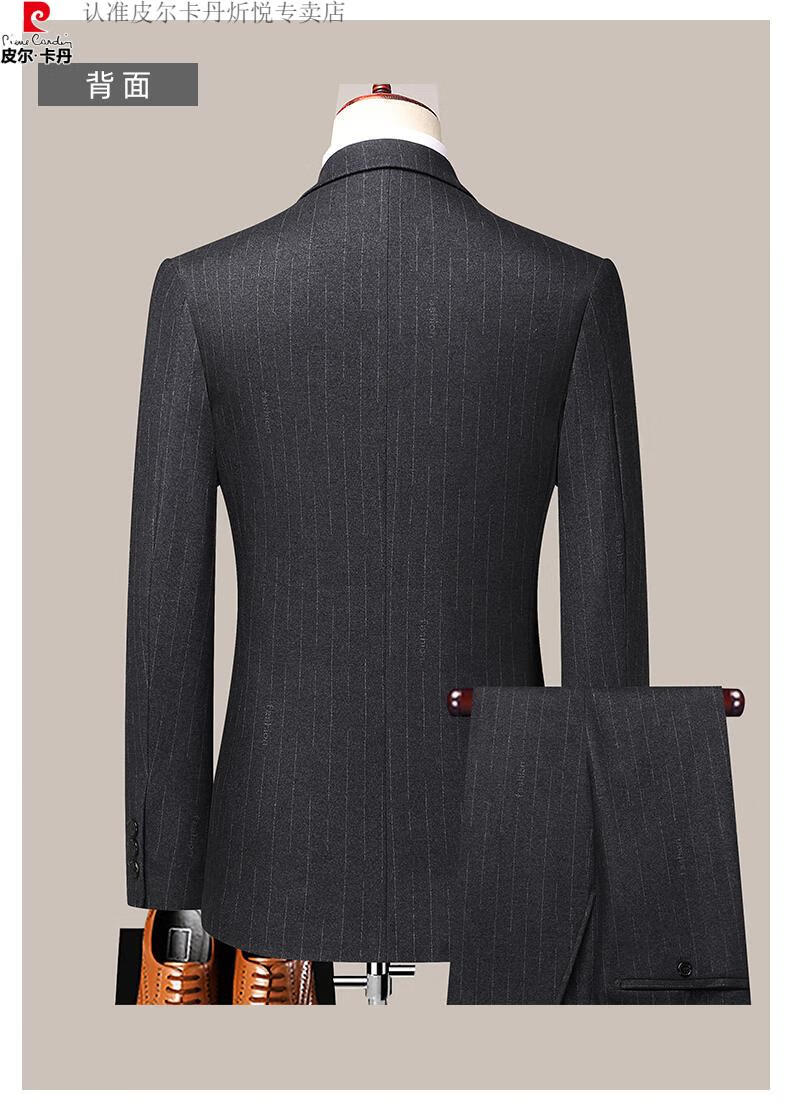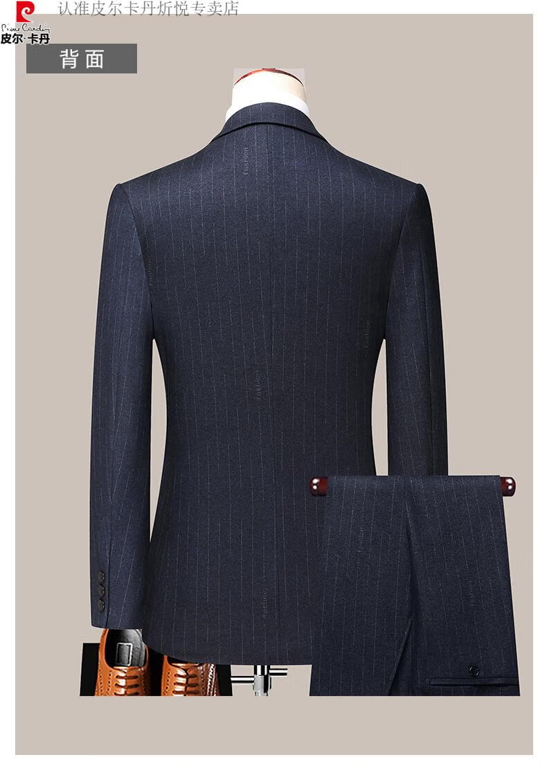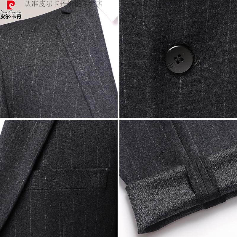 Pierre Cardin high-end men's wool suit striped no-iron suit dress slim business casual middle-aged men's suit thick black and gray striped suit M