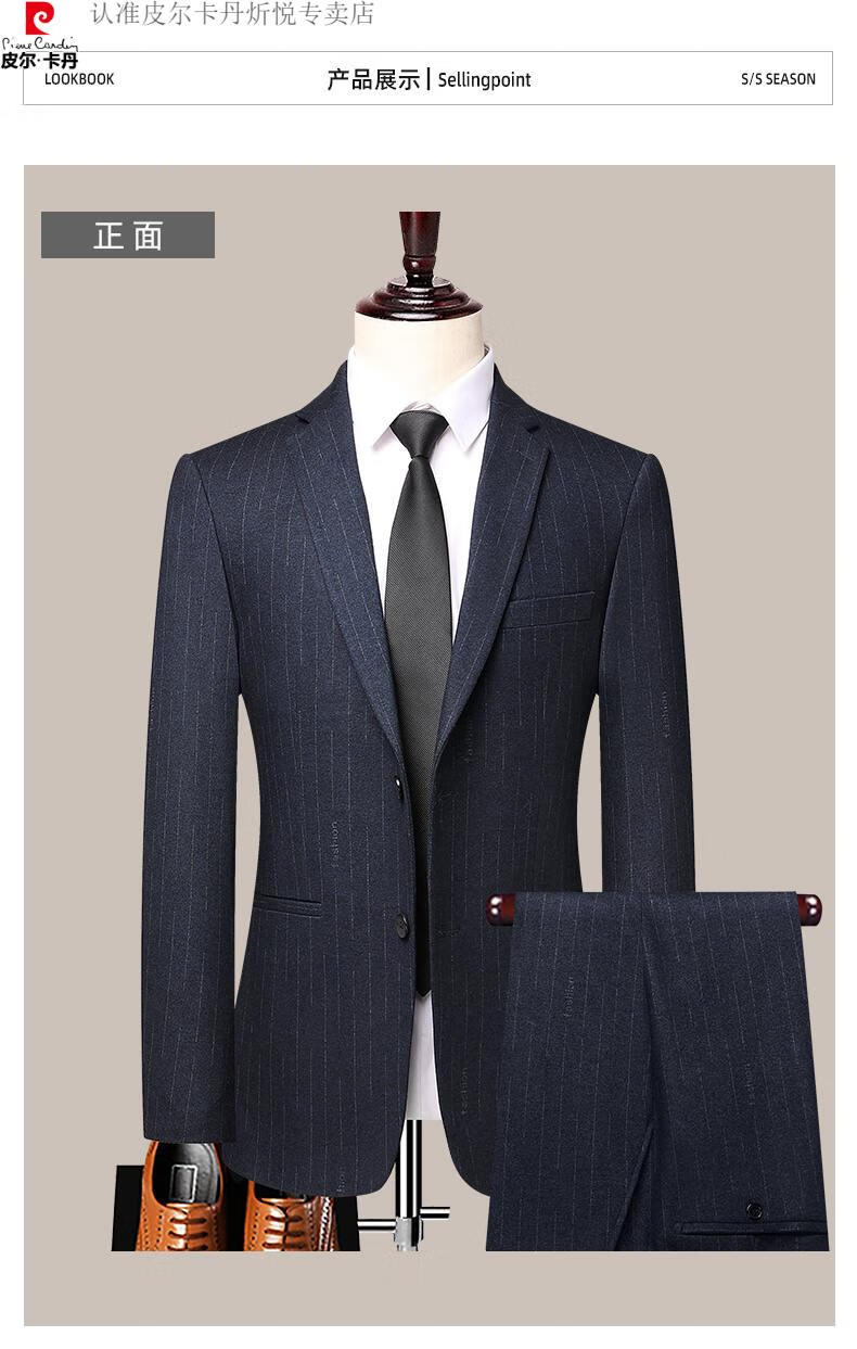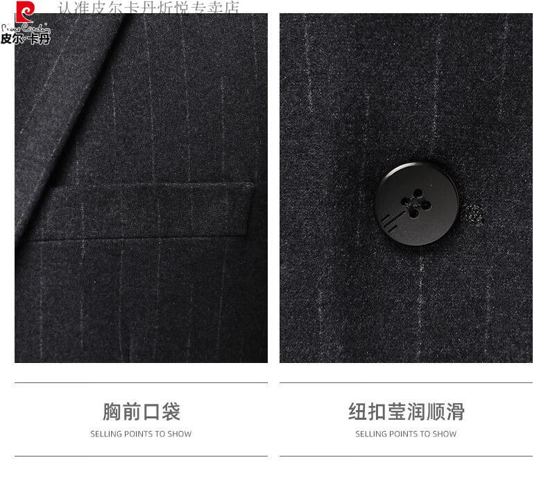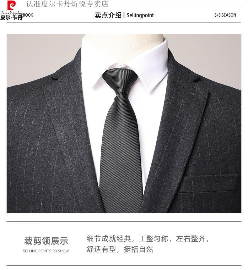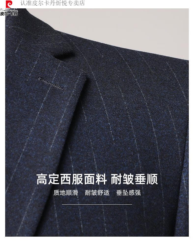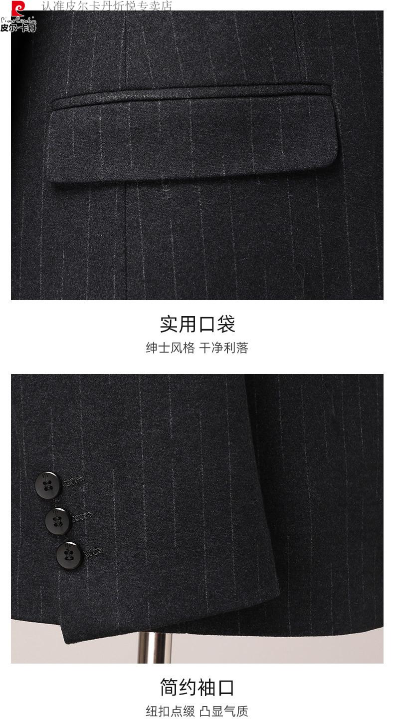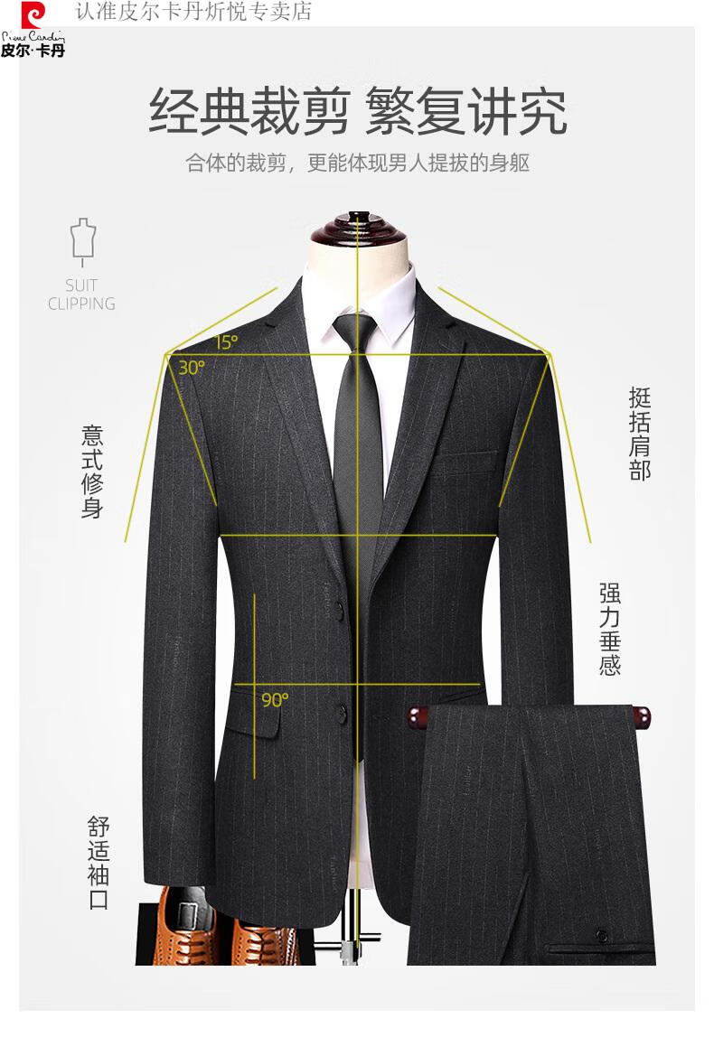 Pierre Cardin high-end men's wool suit striped no-iron suit dress slim business casual middle-aged men's suit thick black and gray striped suit M