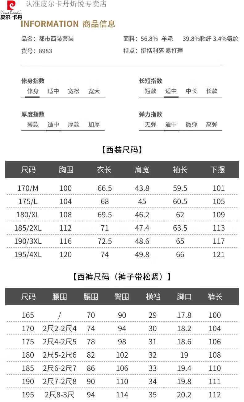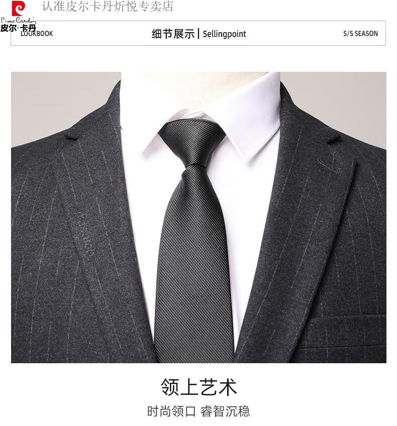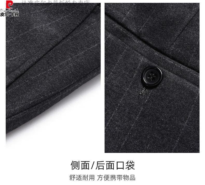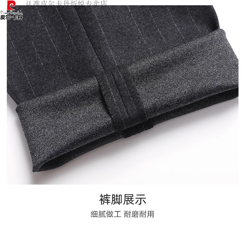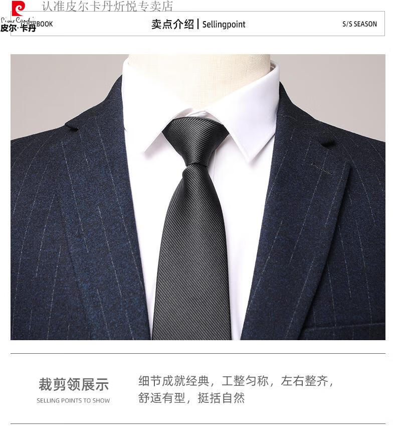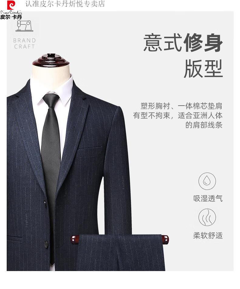 Pierre Cardin high-end men's wool suit striped no-iron suit dress slim business casual middle-aged men's suit thick black and gray striped suit M