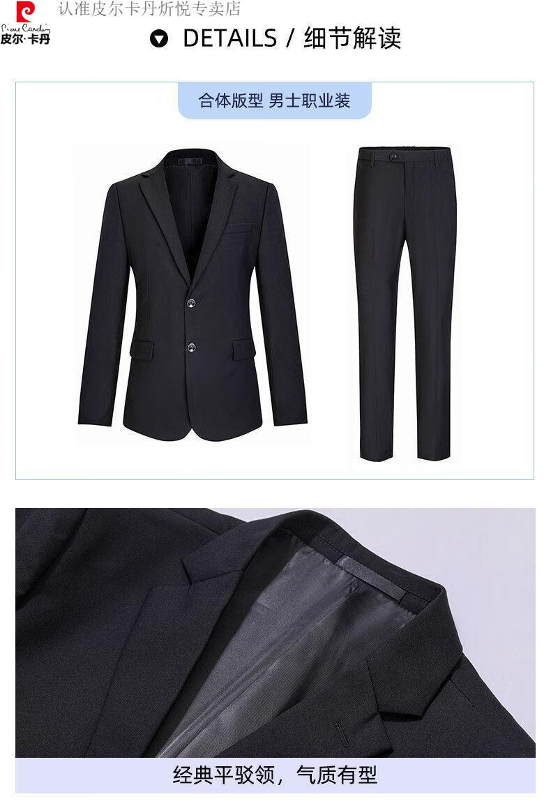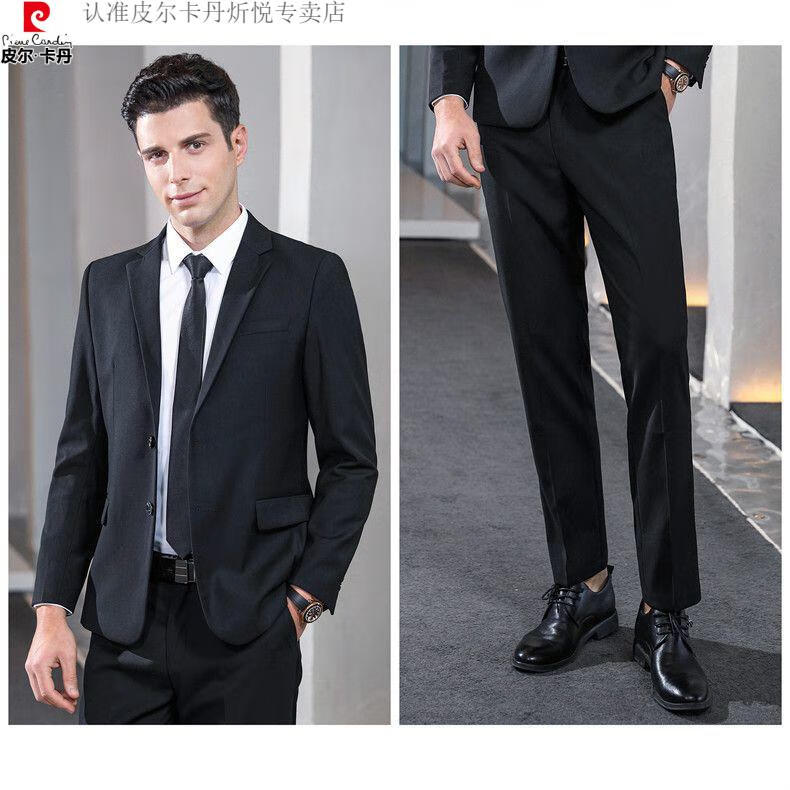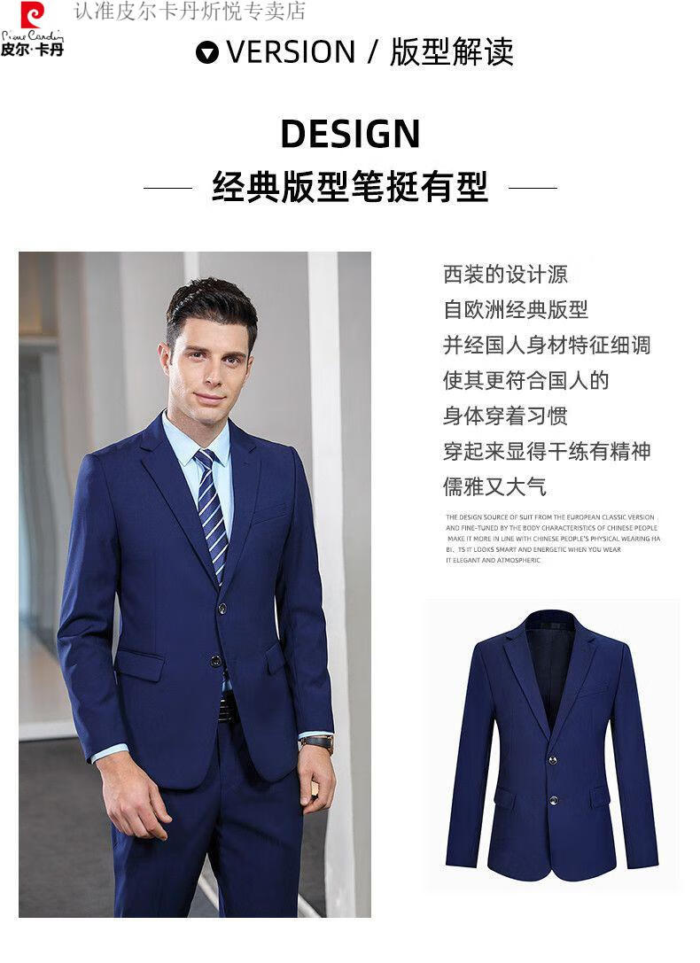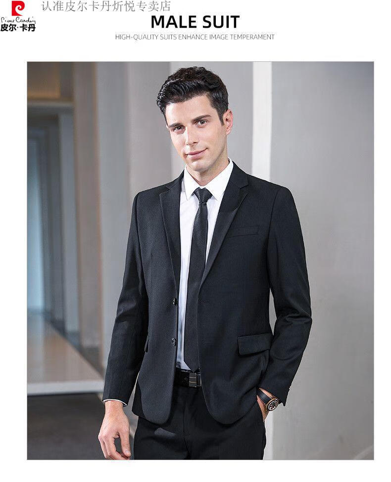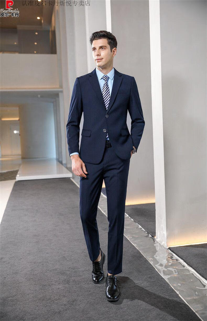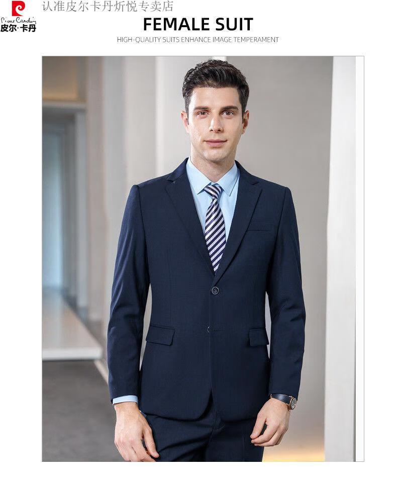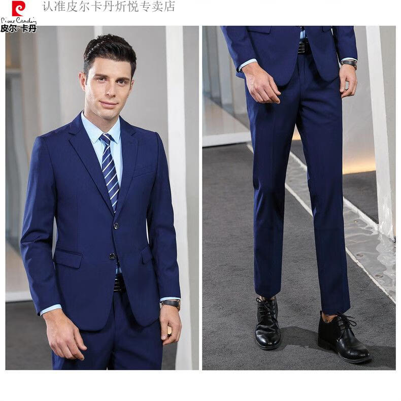 Pierre Cardin high-end non-iron wool suit for men anti-wrinkle business professional formal suit senior suit groom wedding dress for men royal blue shirt and tie single slit at the back 175/L suitable for 115-130 Jin Jin equals 0.5 kg