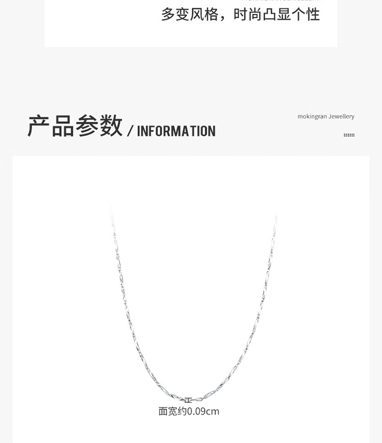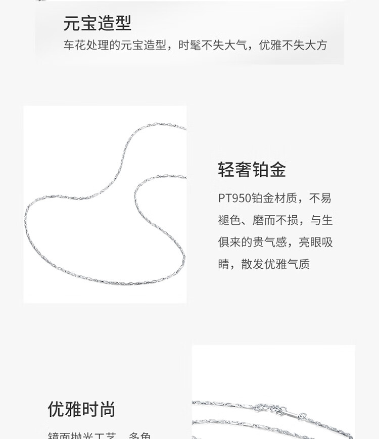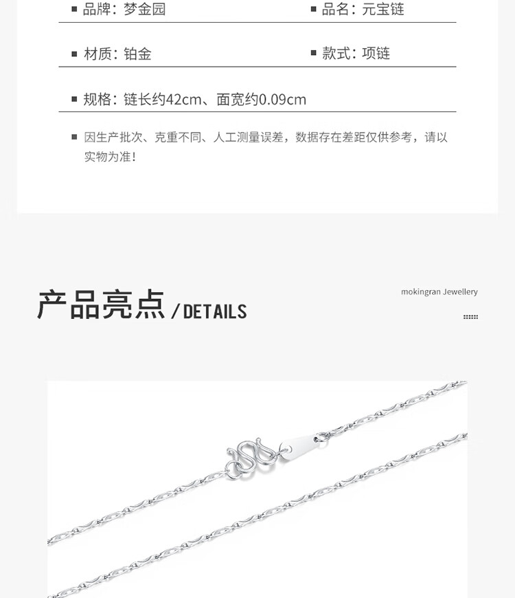 Mengjinyuan Platinum Necklace PT950 Platinum Necklace Ingot Chain Clavicle Necklace Women Birthday Gift 42cm - About 4.15g