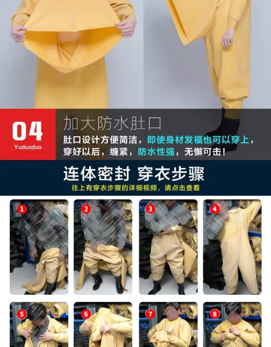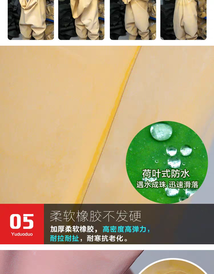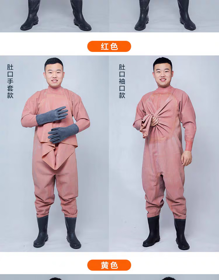 HHONGSHIYU full-body thickened rubber waders for catching fish, fully enclosed leather forks for digging lotus roots, wading waterproof suits, jumpsuits and shoes, yellow pure rubber full-body cuffs 150 silk, shoe size 41