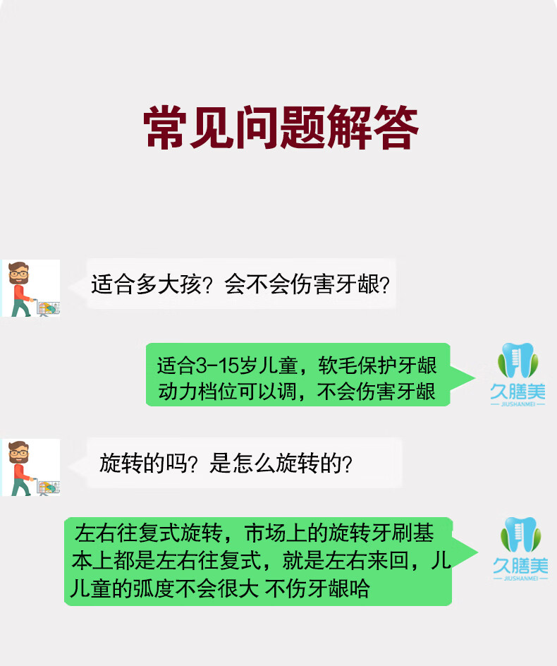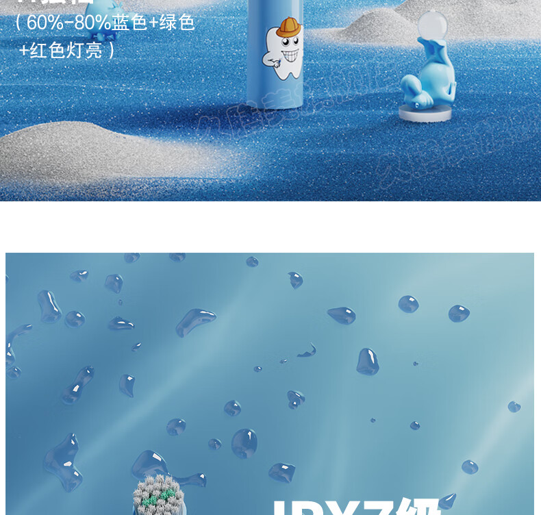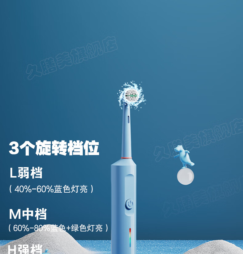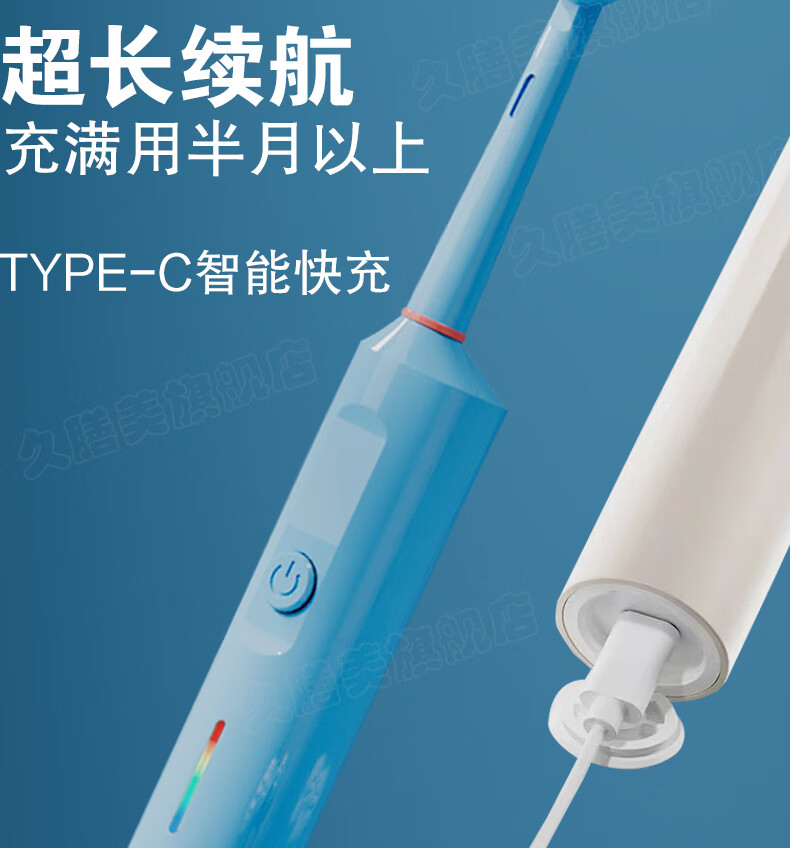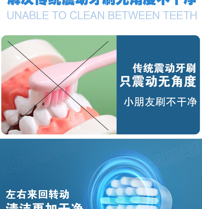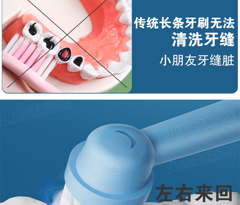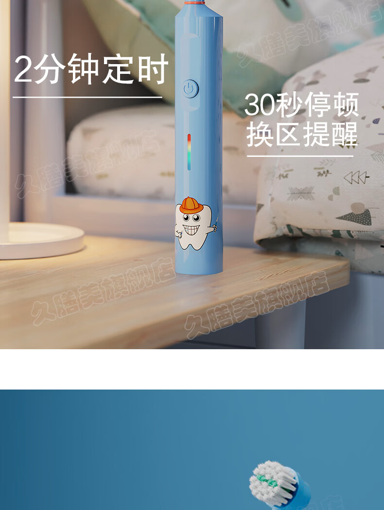 Jiushanmei Cepillo de dientes eléctrico para niños Cabeza redonda automática giratoria 3-6-8-12 años Niños Estudiantes Bebé Cabello suave Uso doméstico Azul + Total 2 cabezales de cepillo