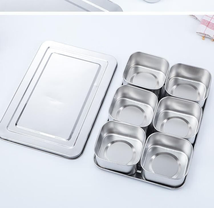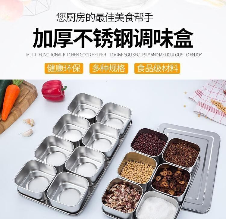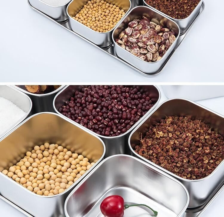 Enshousu stainless steel seasoning box seasoning box machine-made flavor box sample box food display box seasoning jar with lid commercial stall 6-grid seasoning box with lid and spoon