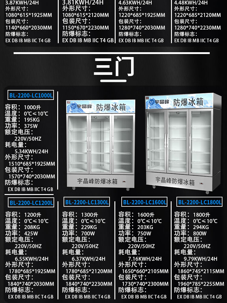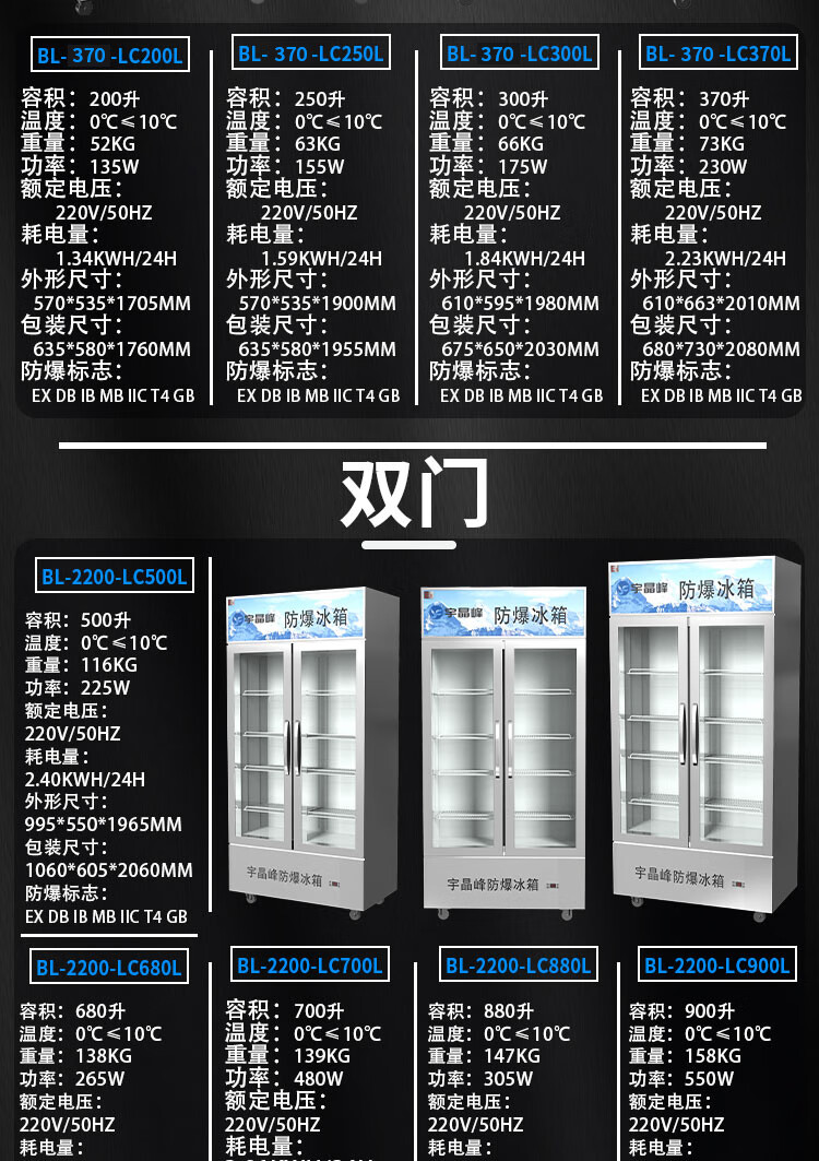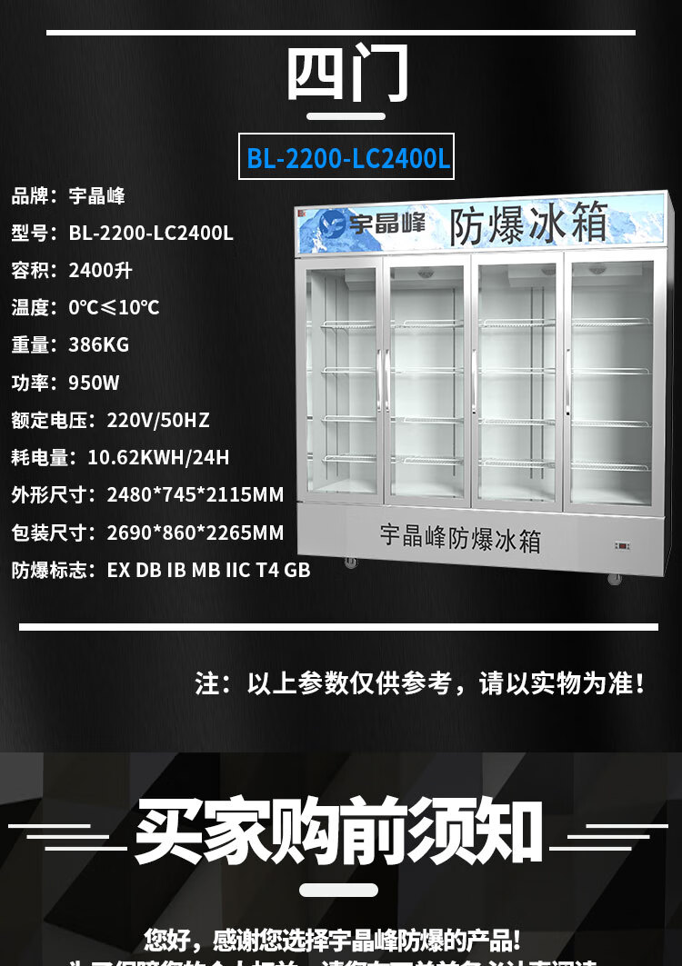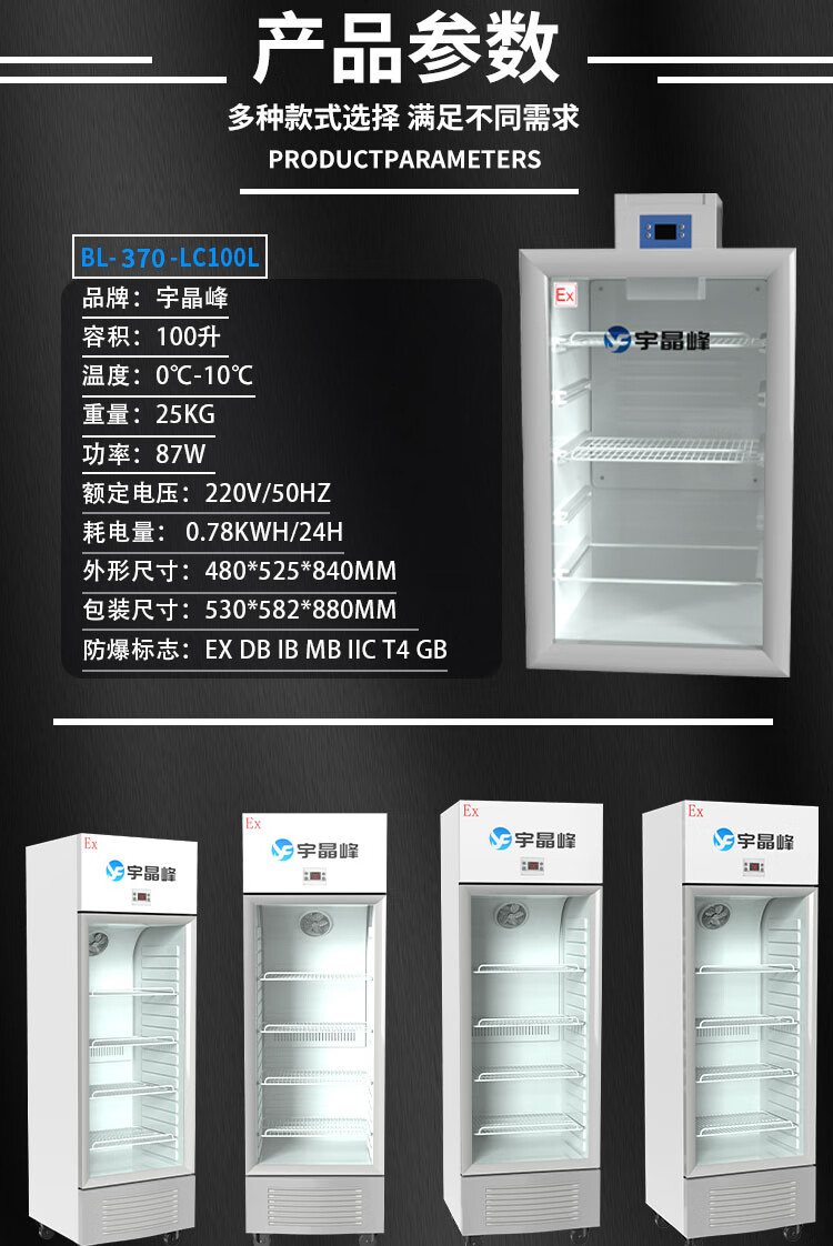 Yujingfeng explosion-proof refrigerator explosion-proof electrical device refrigerator freezer vertical glass door small industrial laboratory chemical plant hazardous chemicals storage cabinet rapid cooling size capacity 100L refrigerator explosion-proof refrigerator