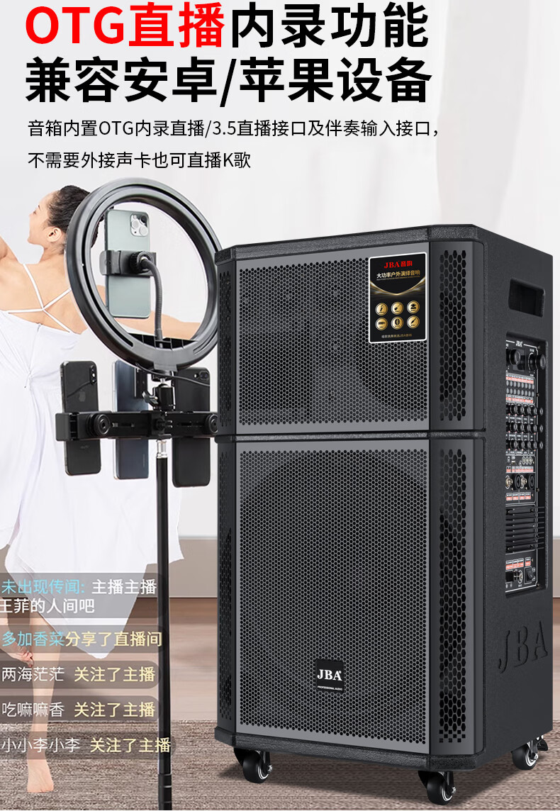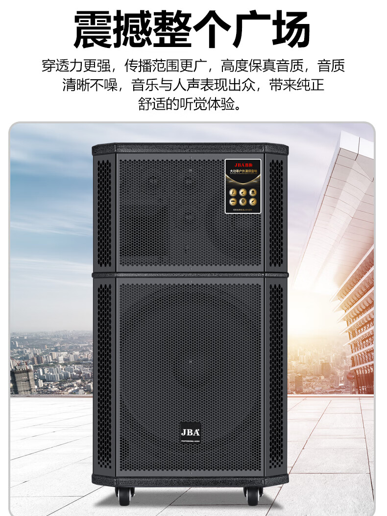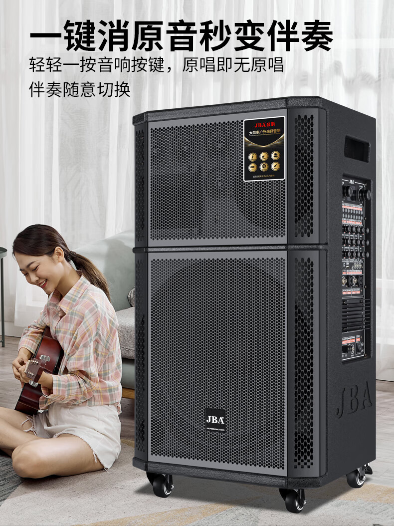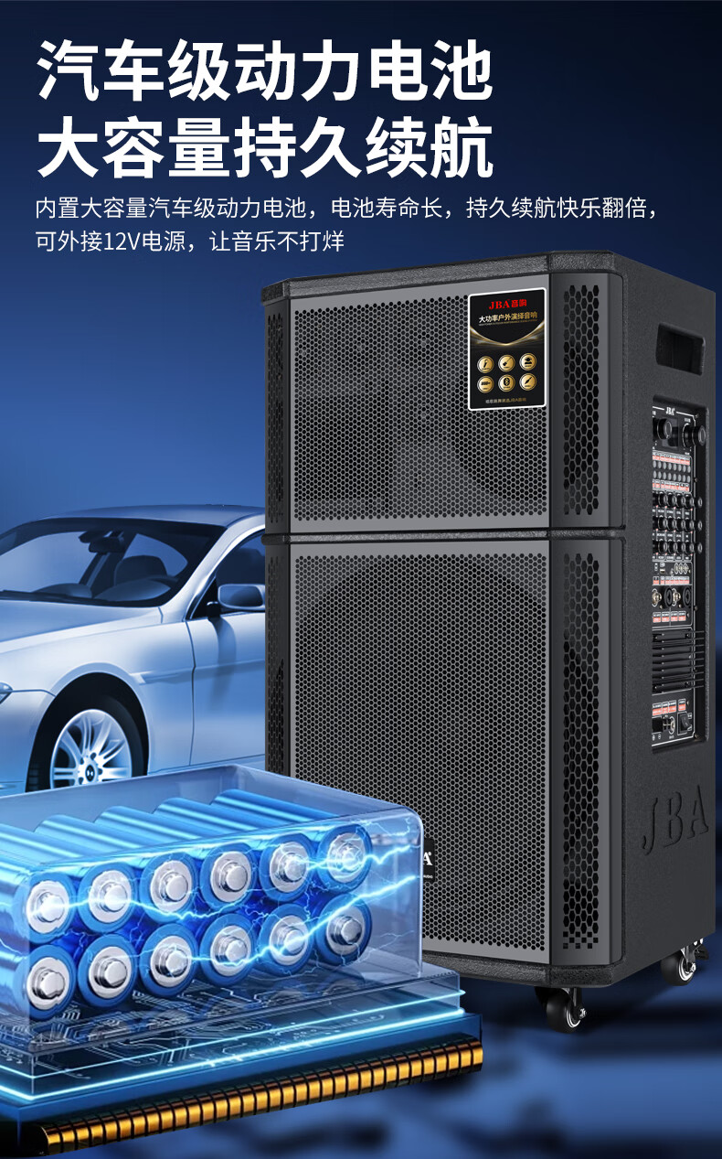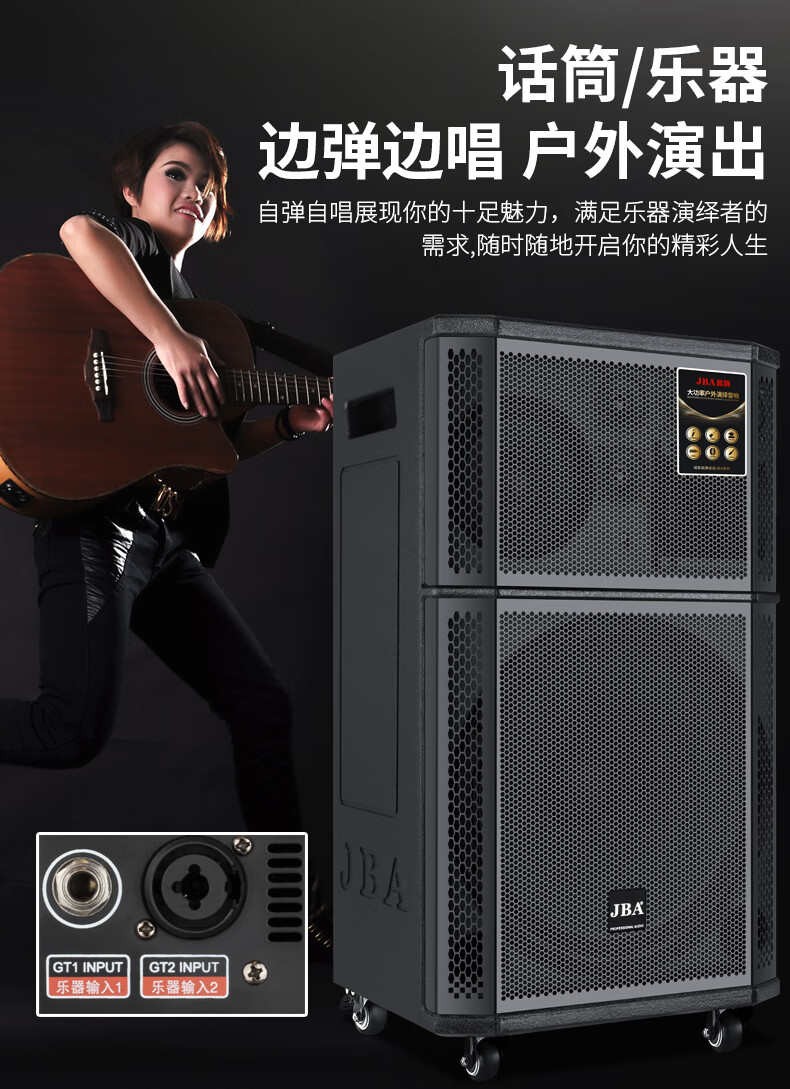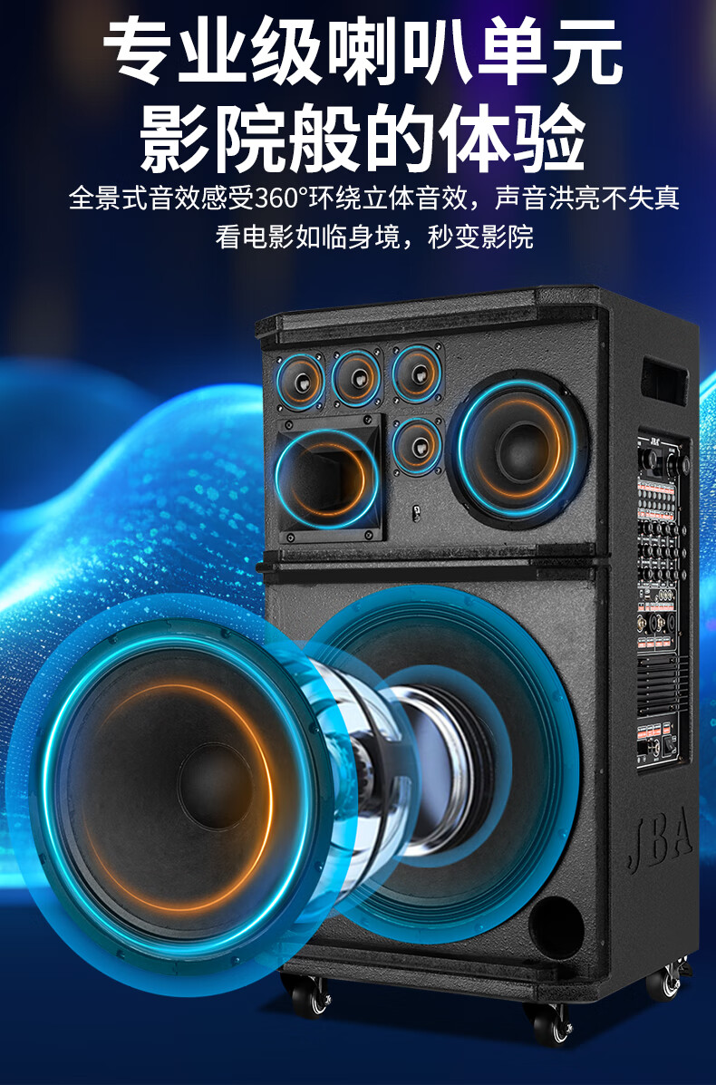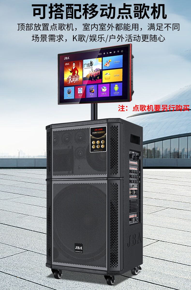 JBA high-end professional stage performance outdoor square dance audio high-power bass karaoke with Bluetooth song request wedding school meeting outdoor activities mobile KTV trolley speaker 15-inch professional bass + dual microphones
