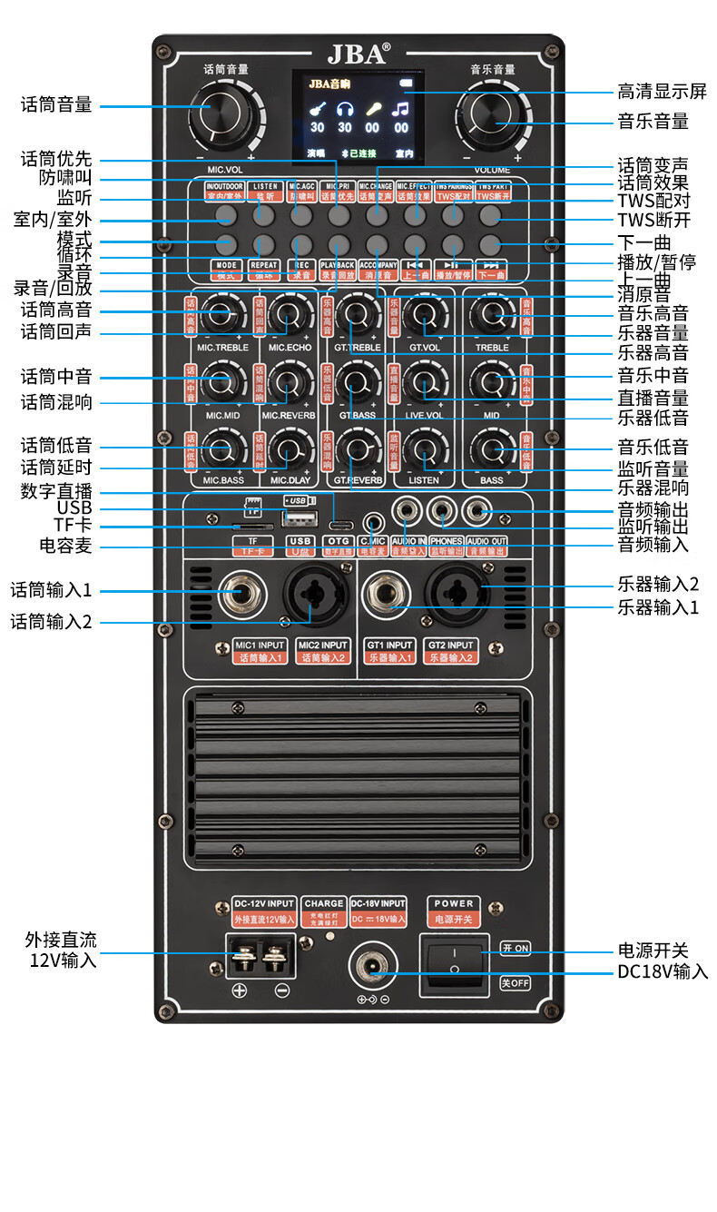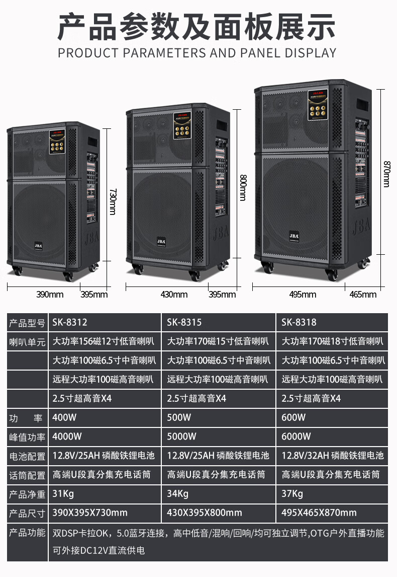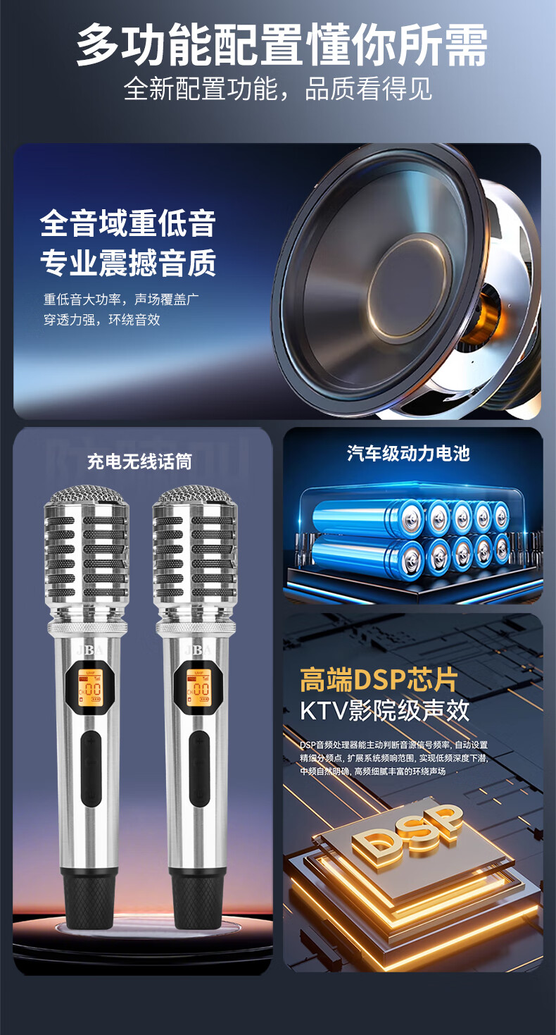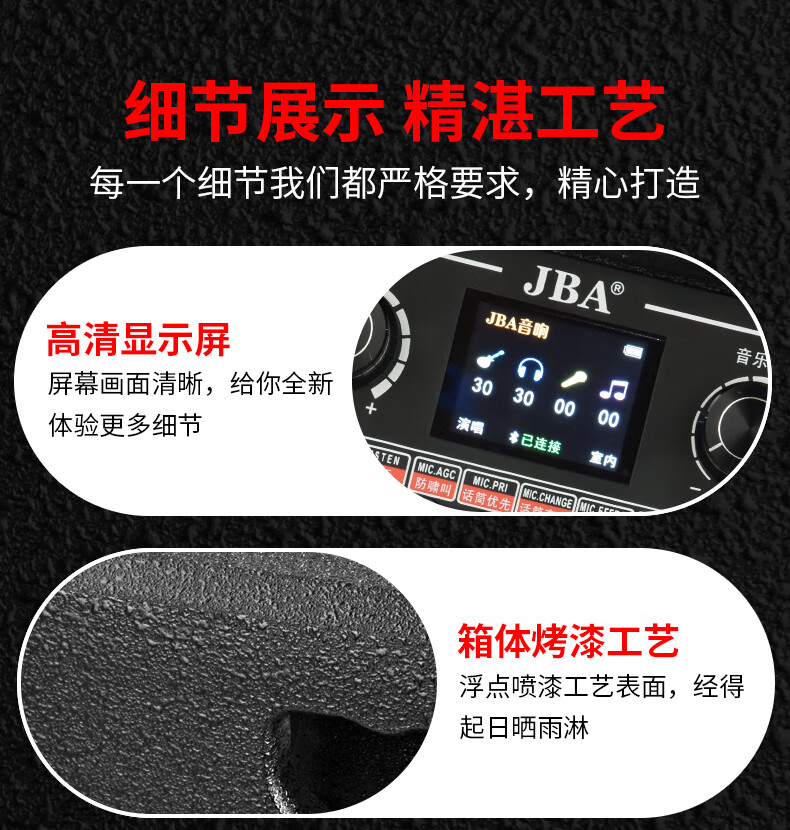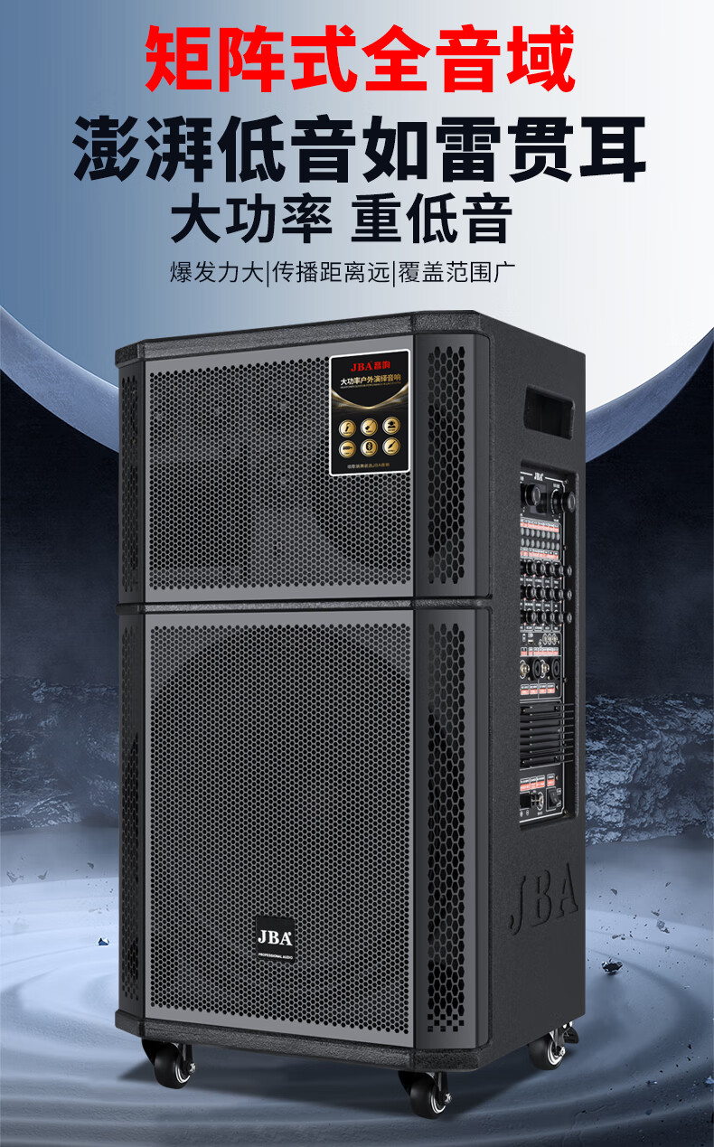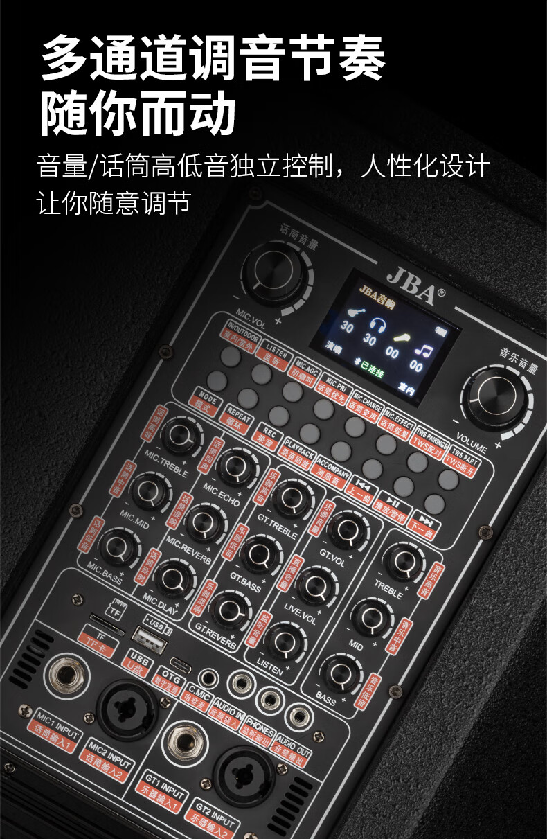 JBA high-end professional stage performance outdoor square dance audio high-power bass karaoke with Bluetooth song request wedding school meeting outdoor activities mobile KTV trolley speaker 15-inch professional bass + dual microphones