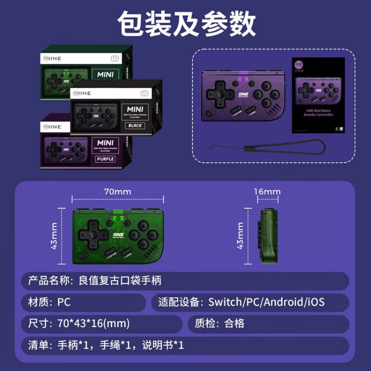 Good Value (IINE) Mini Controller Wireless Bluetooth Small Controller Anki B Game Graphic Novel Page Turner Suitable for Switch Android IOS Phone/PC DW12C Transparent Purple-L1013
