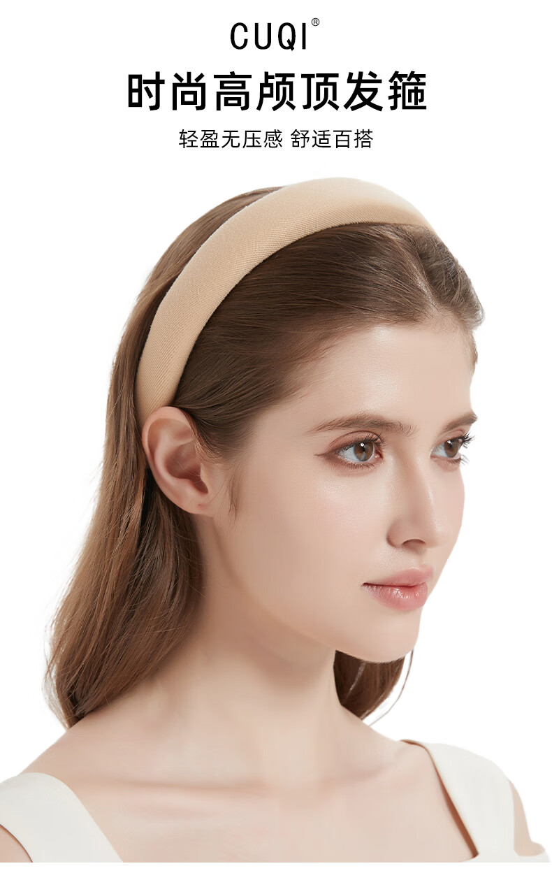 CUQI high-end hair hoop with wide brim and high cranial pressure hair comb with wide brim that does not tie the head and washes the face with hairpins, simple headwear, fashionable and versatile, milk tea color