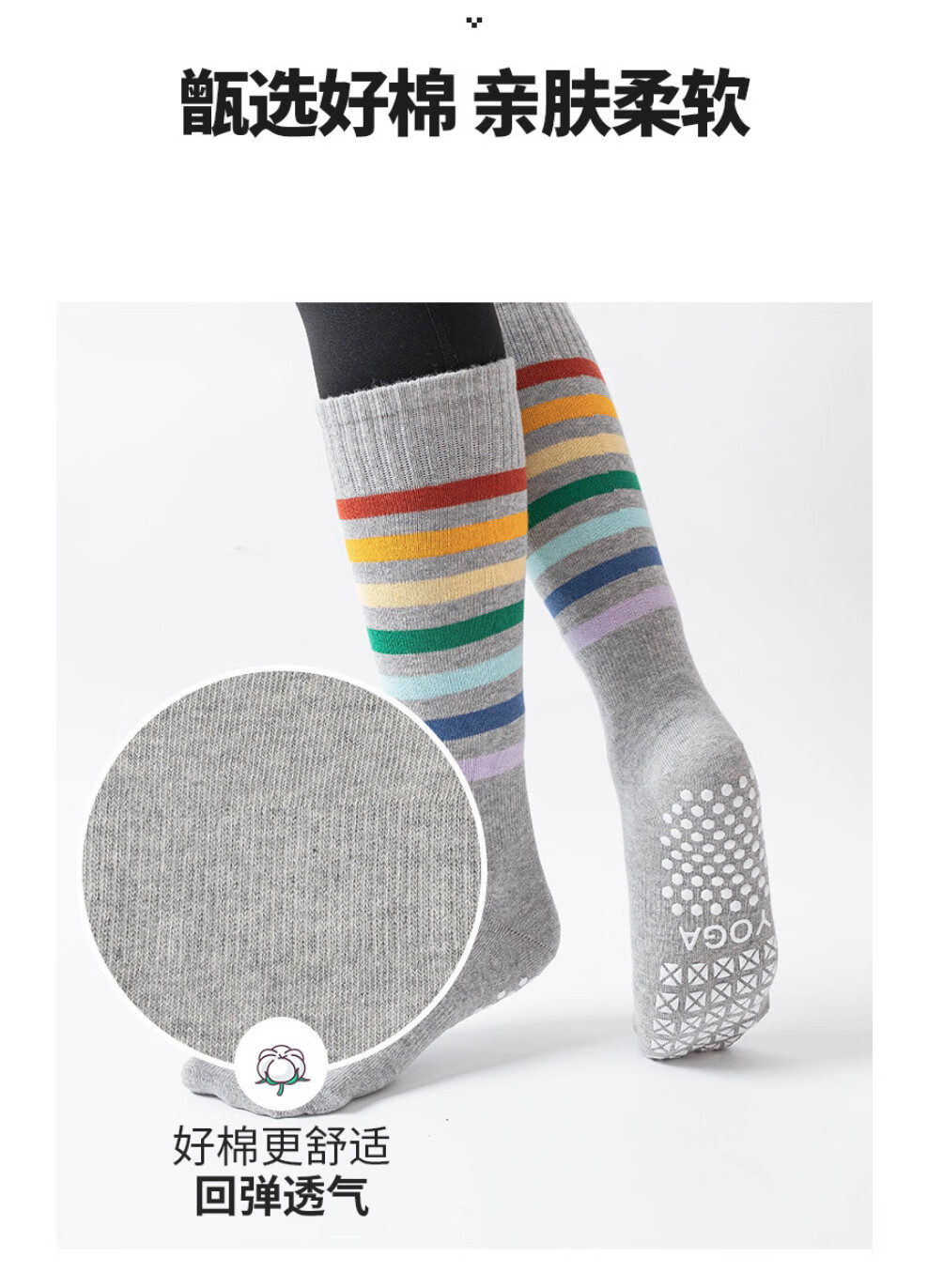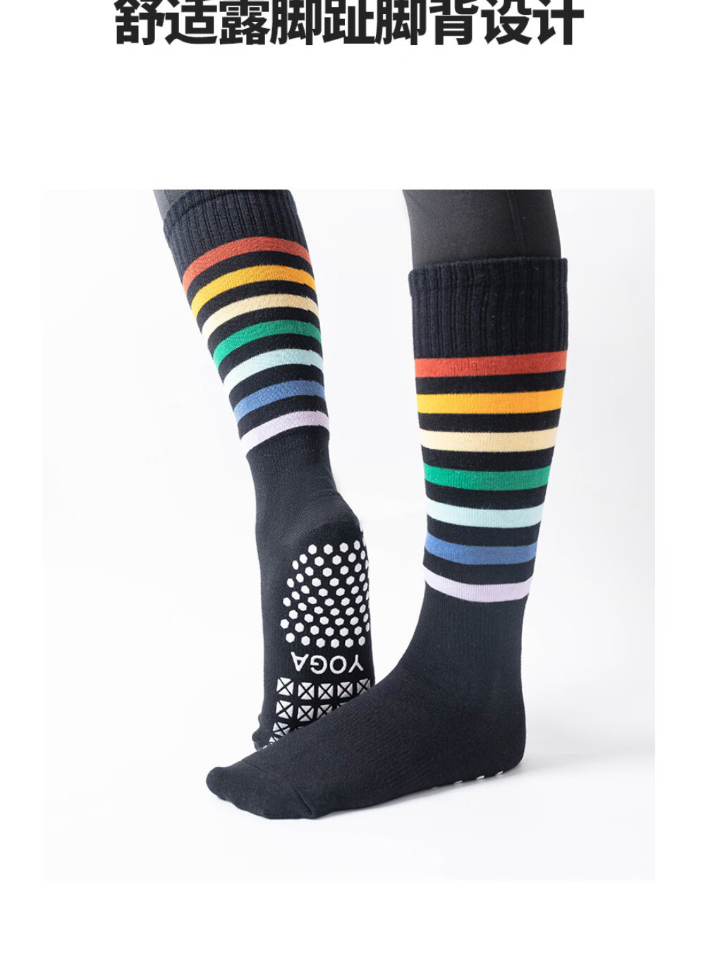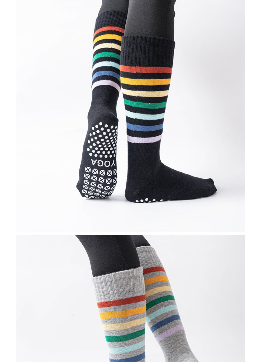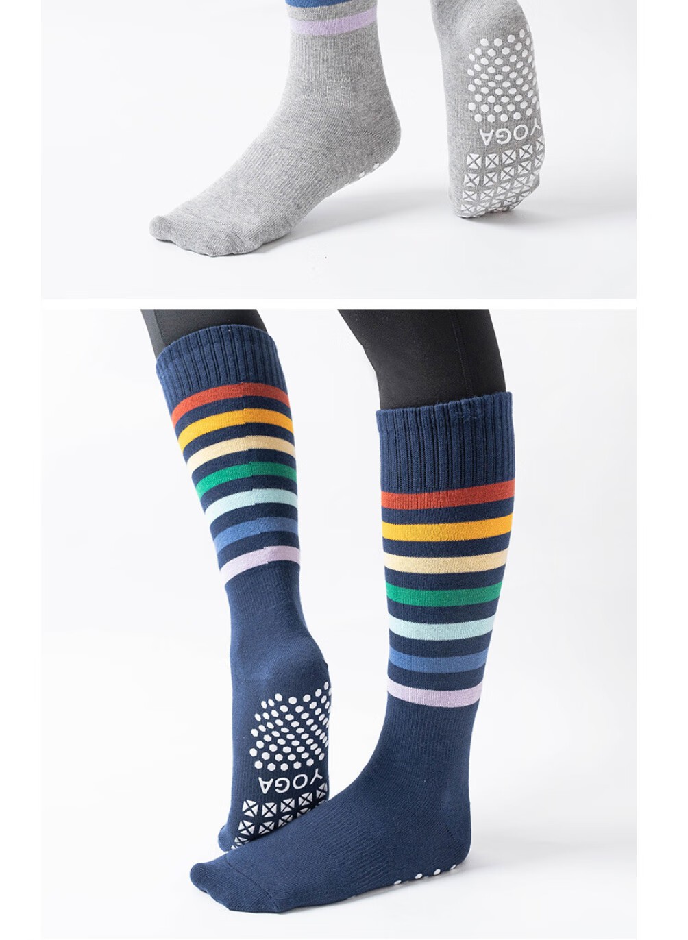 Huodiniao Yoga Socks Non-slip Professional Women's Autumn and Winter Long-Tube Pilates Special Socks for Adult Sports and Fitness Training Floor Socks. Optional Three Pairs Color Contact Customer Service for Notes