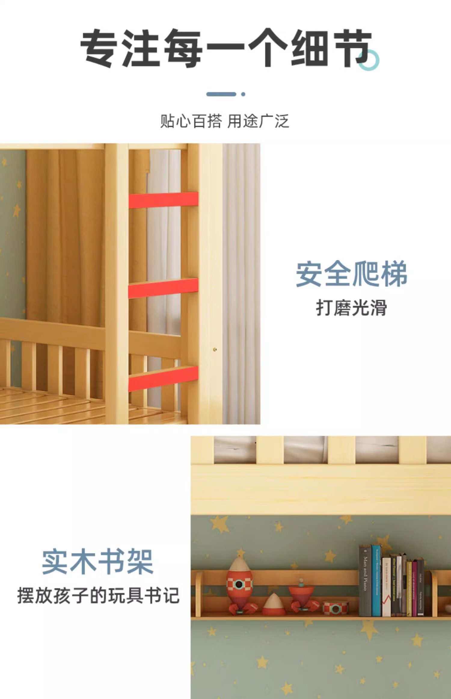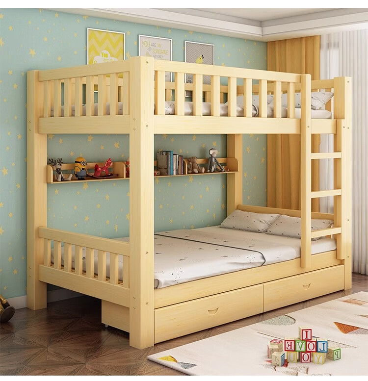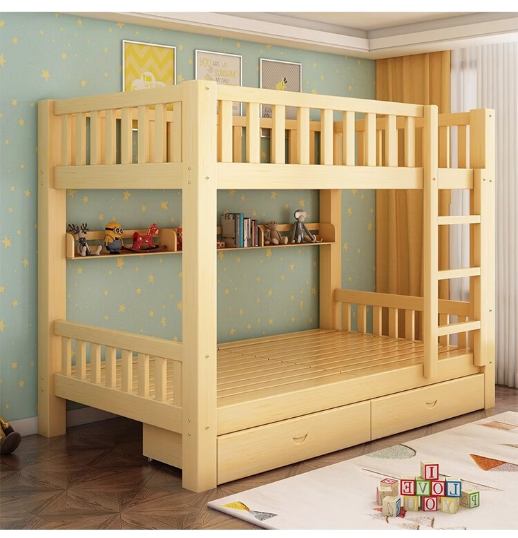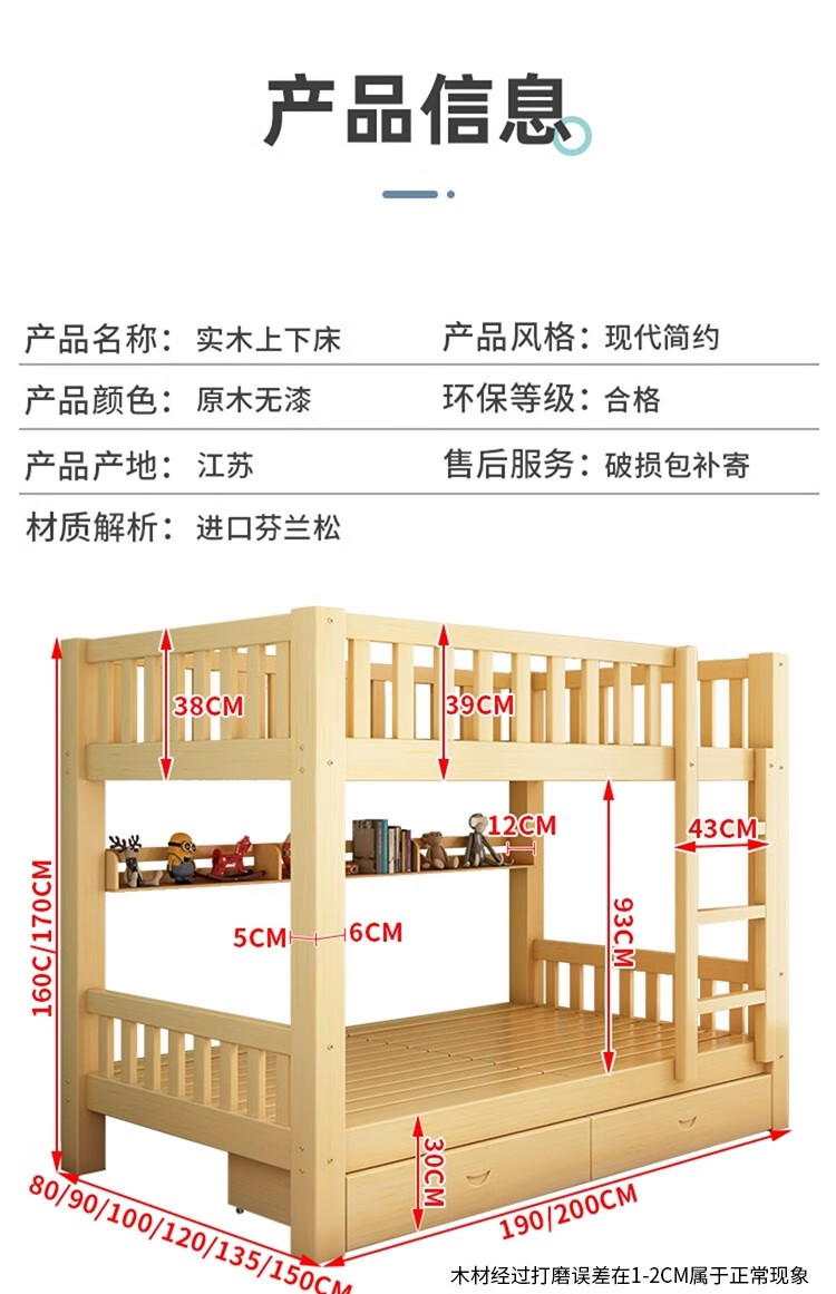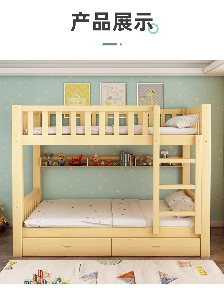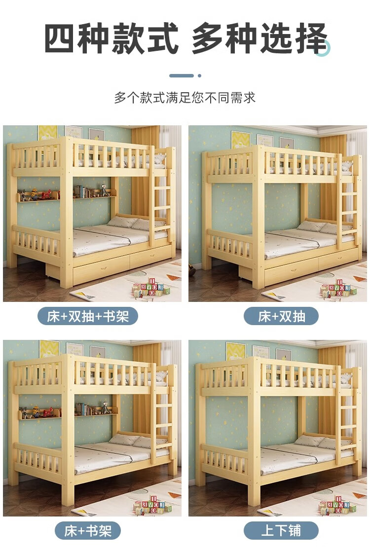 Jingci solid wood bunk bed, two-story high and low bed, double bed, small apartment, child bed and bunk bed, classic style - matching bookshelf, width 800mm* length 1900mm