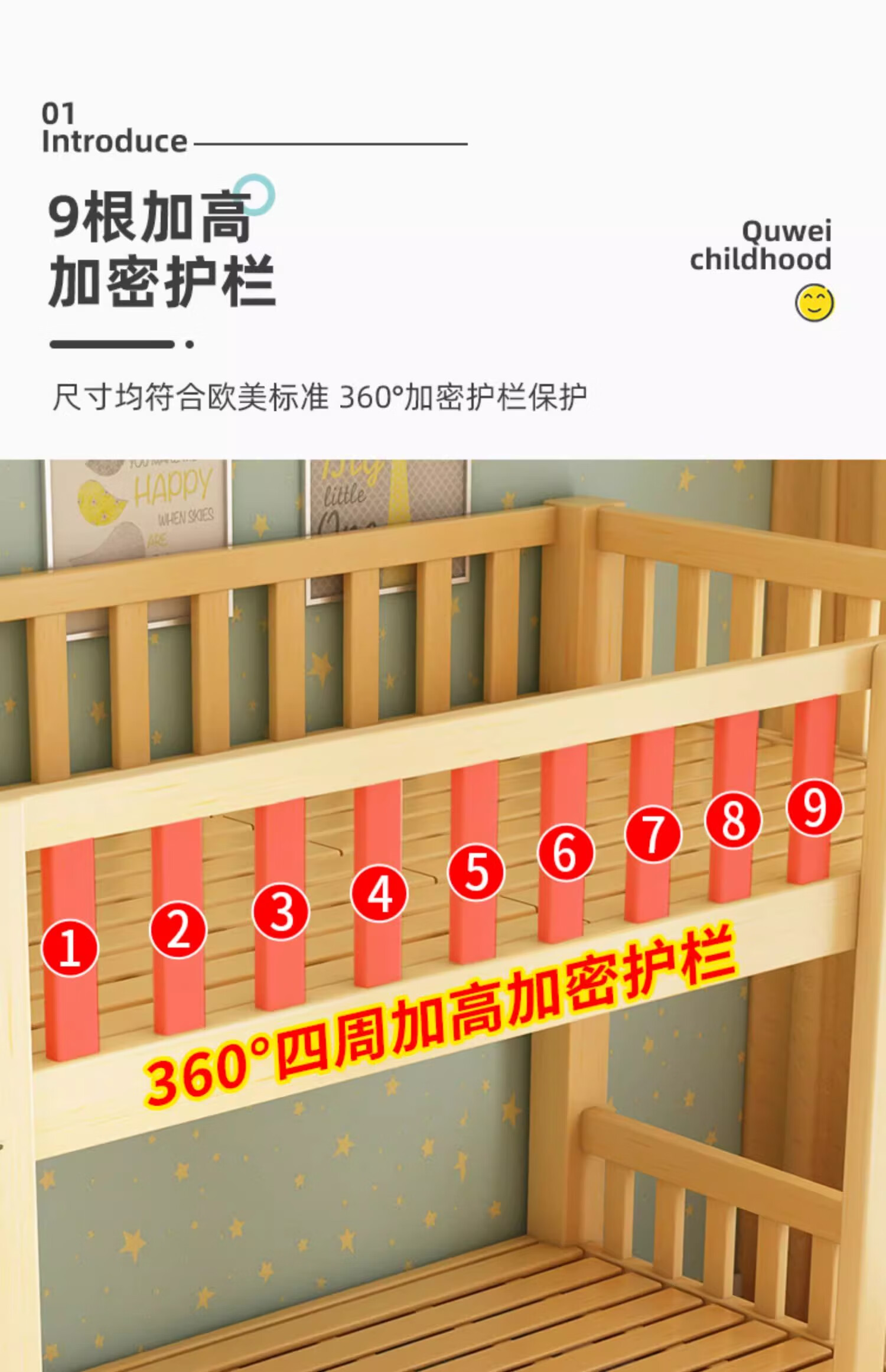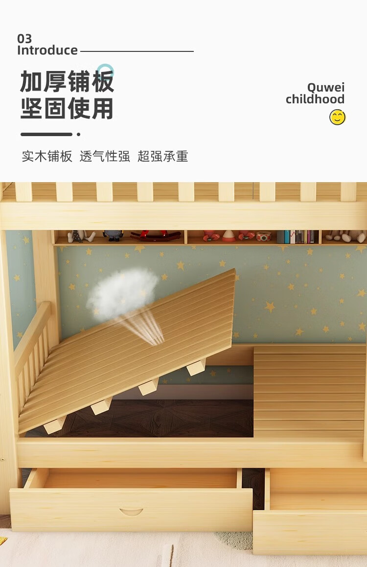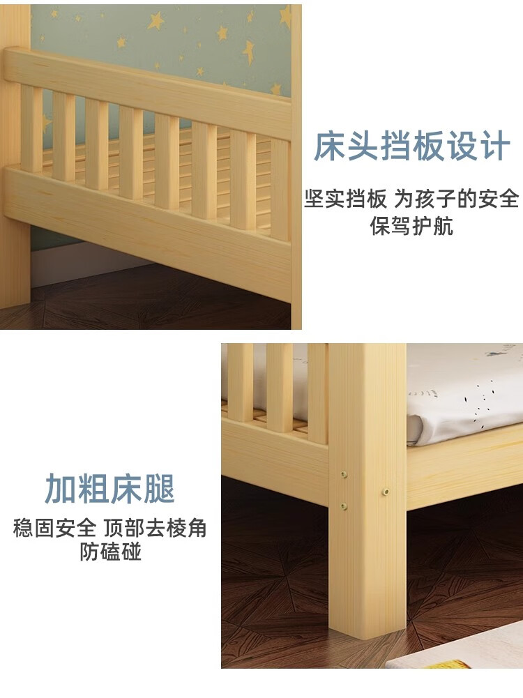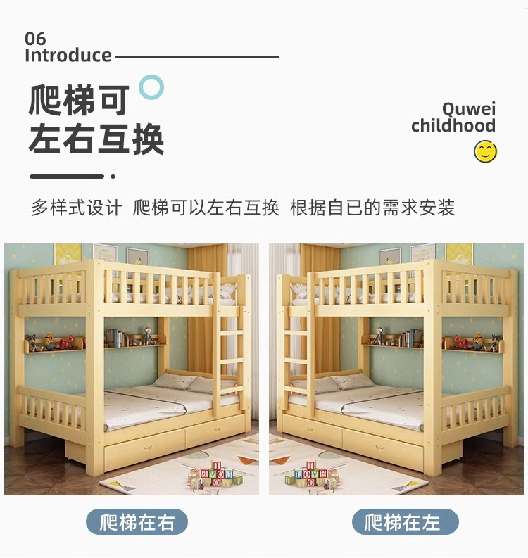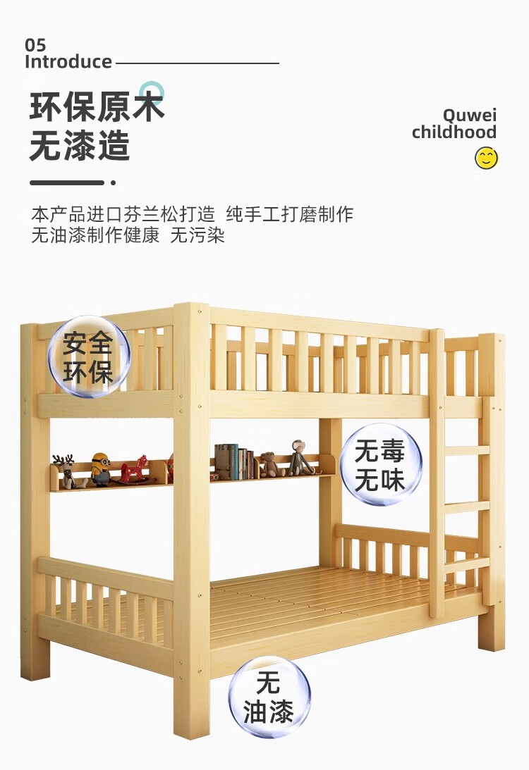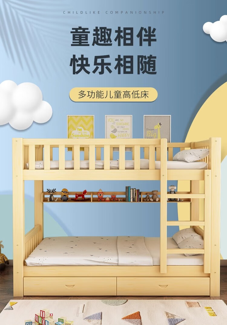 Jingci solid wood bunk bed, two-story high and low bed, double bed, small apartment, child bed and bunk bed, classic style - matching bookshelf, width 800mm* length 1900mm