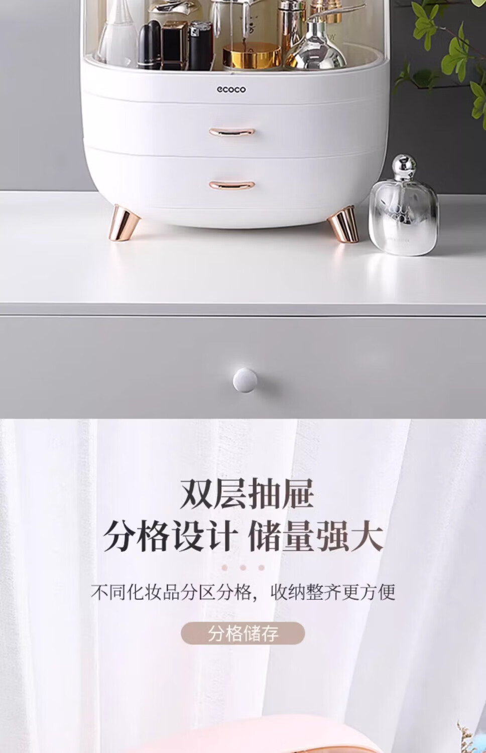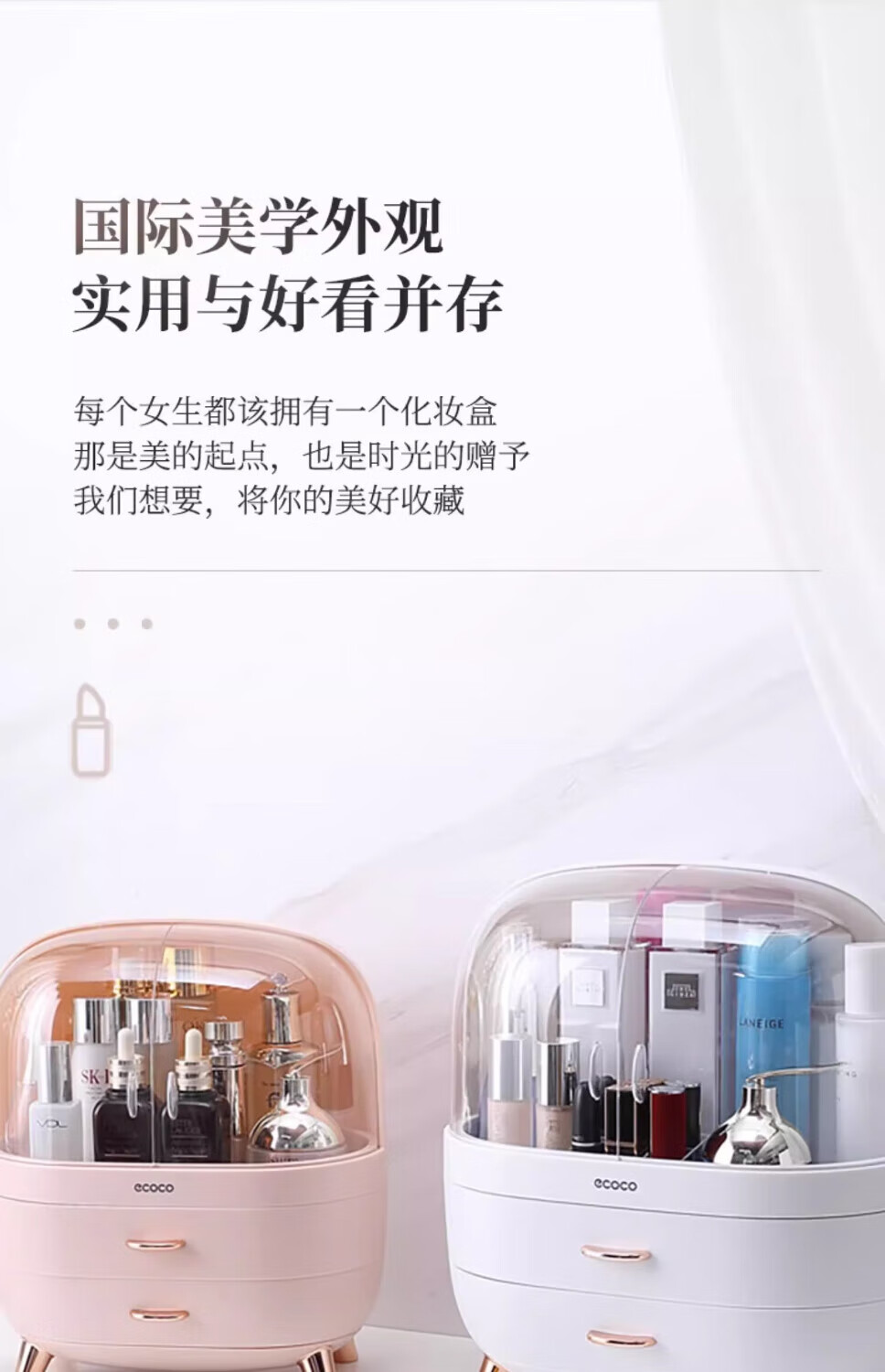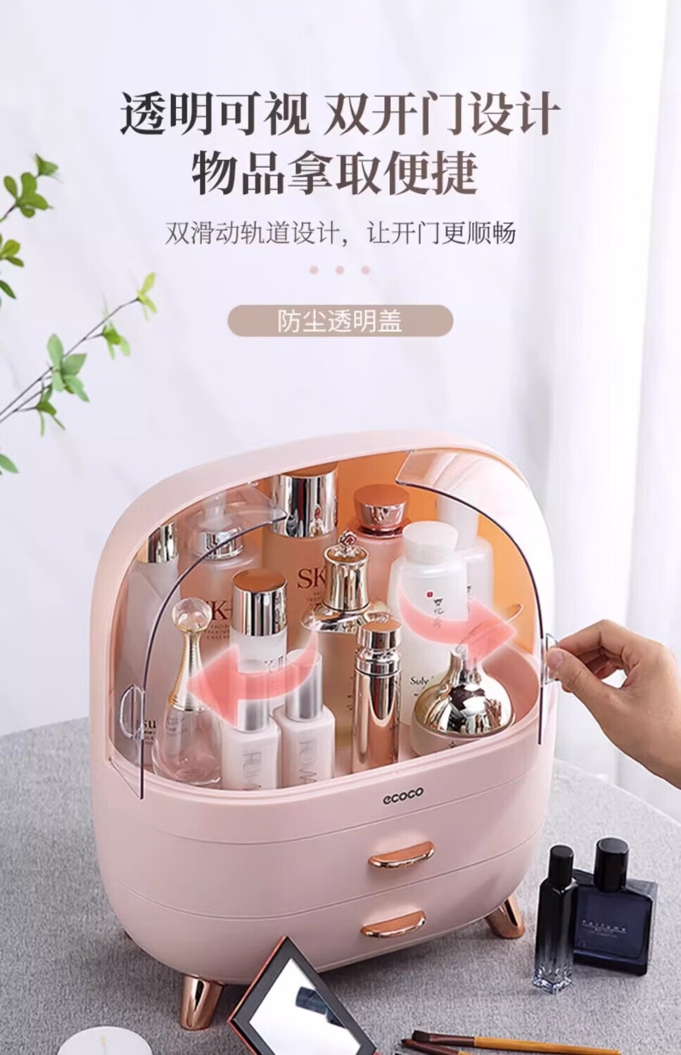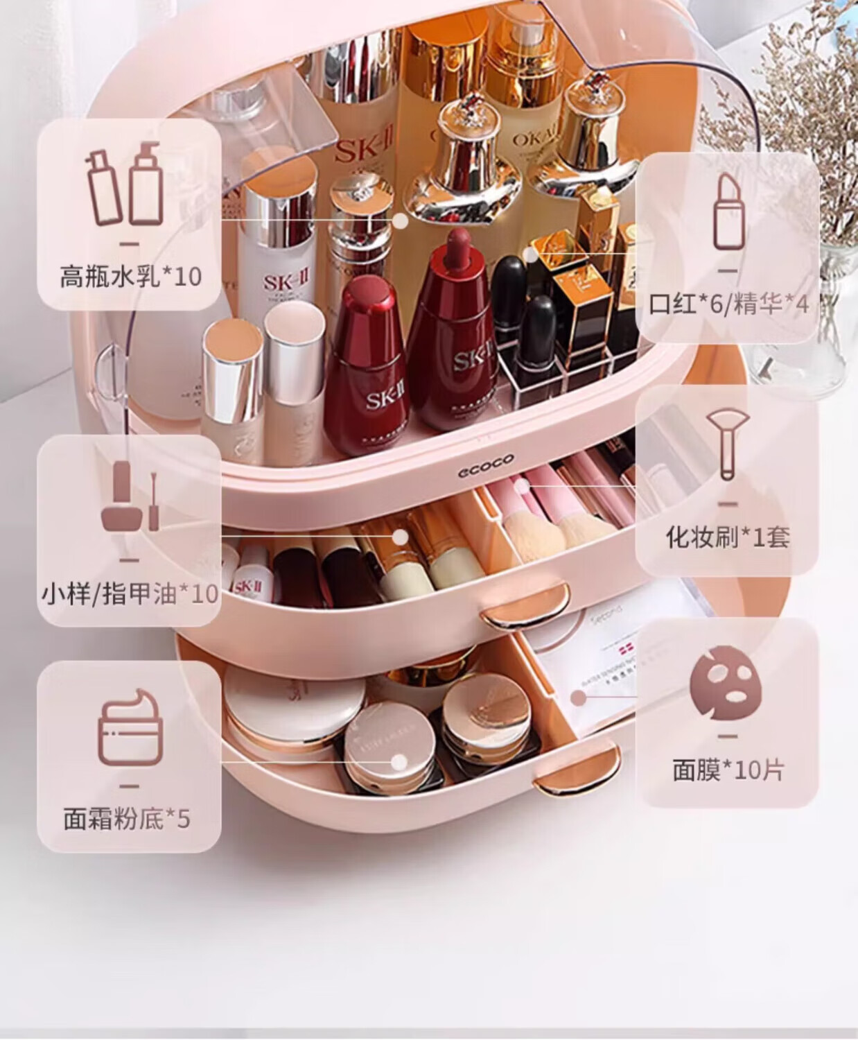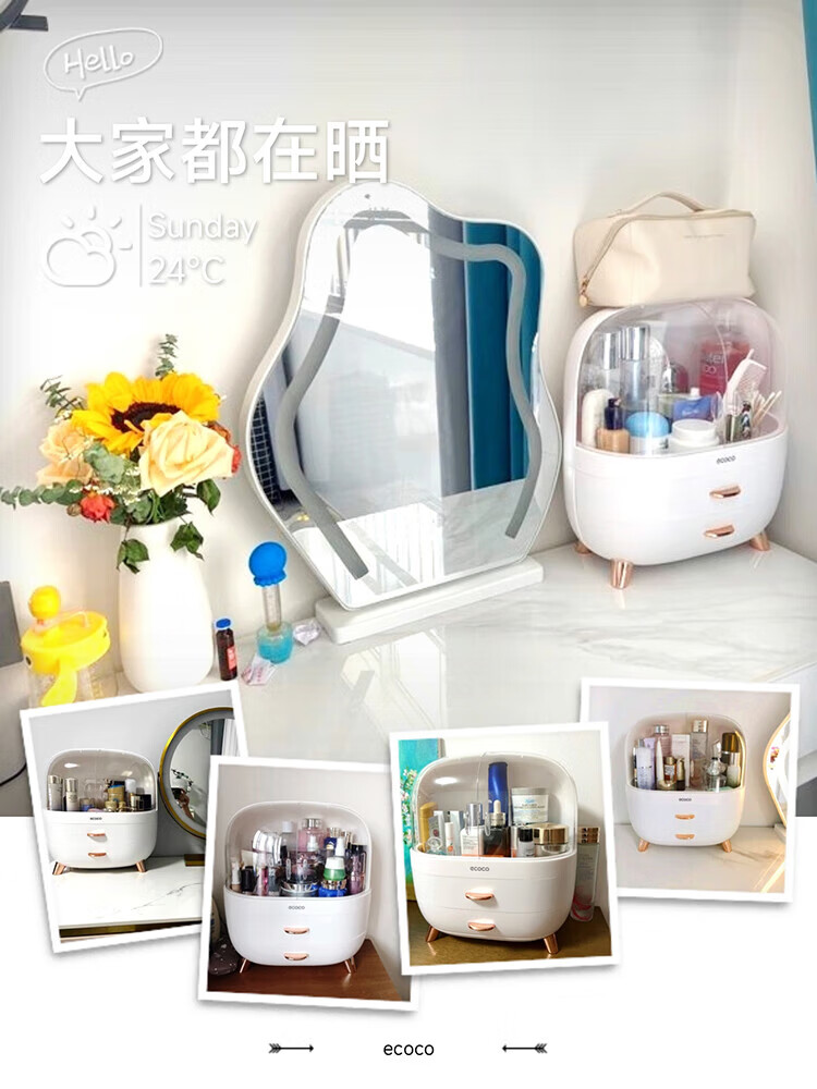 Ecoco cosmetics storage box dustproof makeup box desktop dressing table shelf skin care product box gift for girlfriend large lotus root pink - enlargeable bottle 230ml fairy water