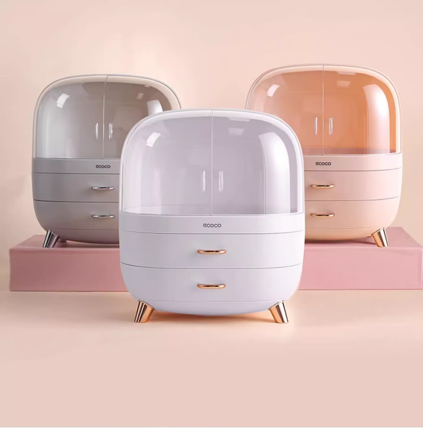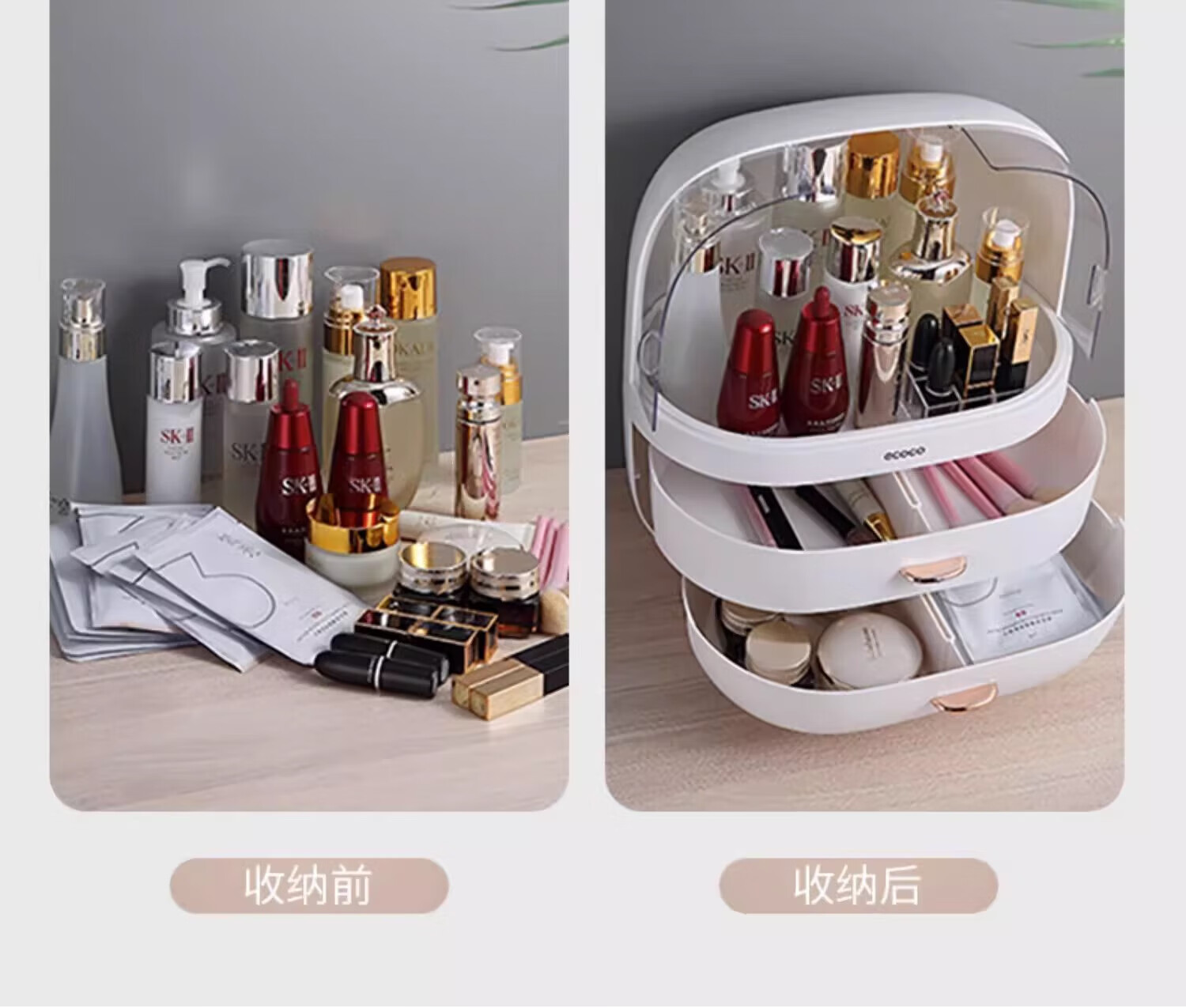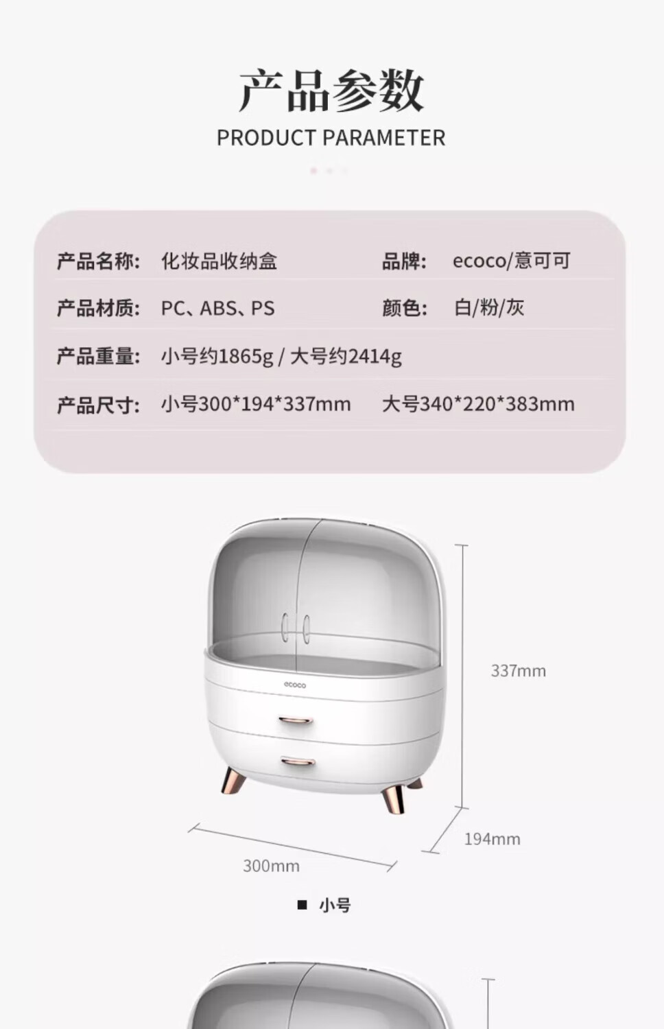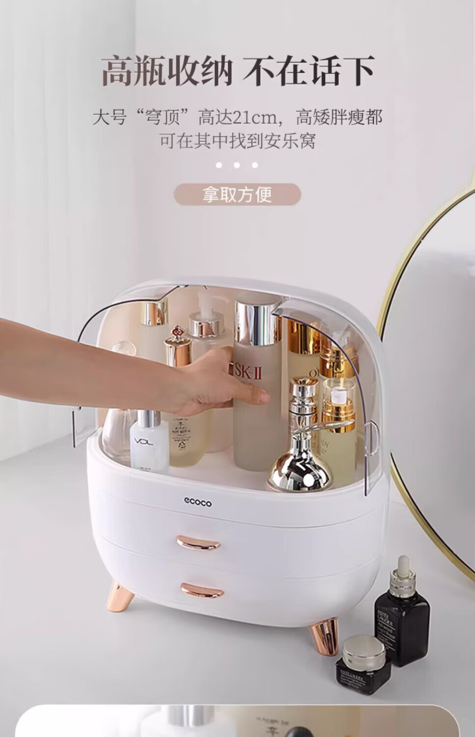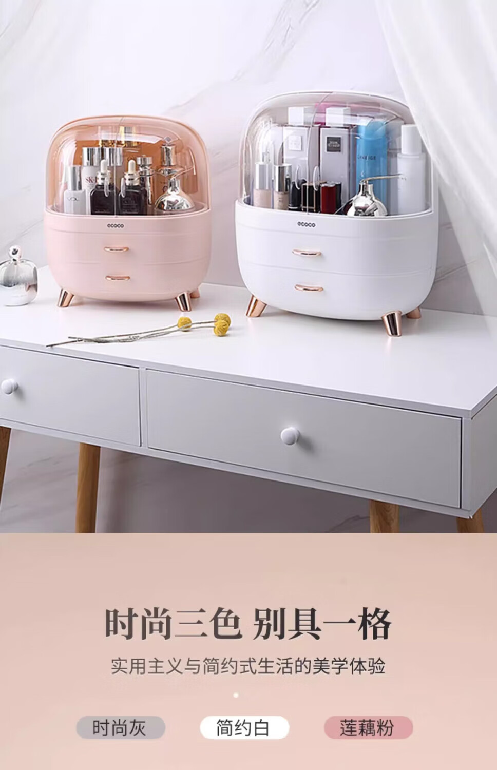 Ecoco cosmetics storage box dustproof makeup box desktop dressing table shelf skin care product box gift for girlfriend large lotus root pink - enlargeable bottle 230ml fairy water