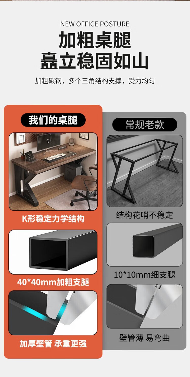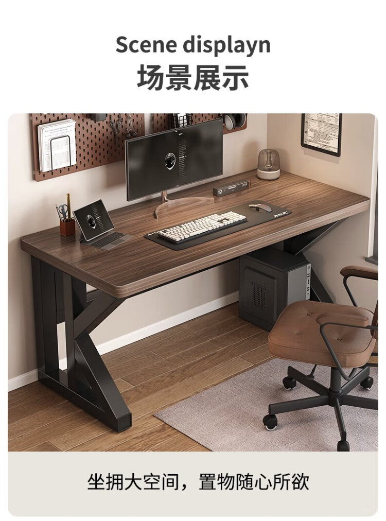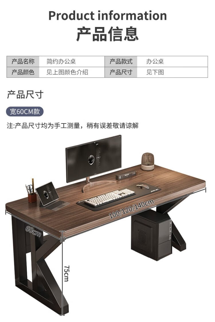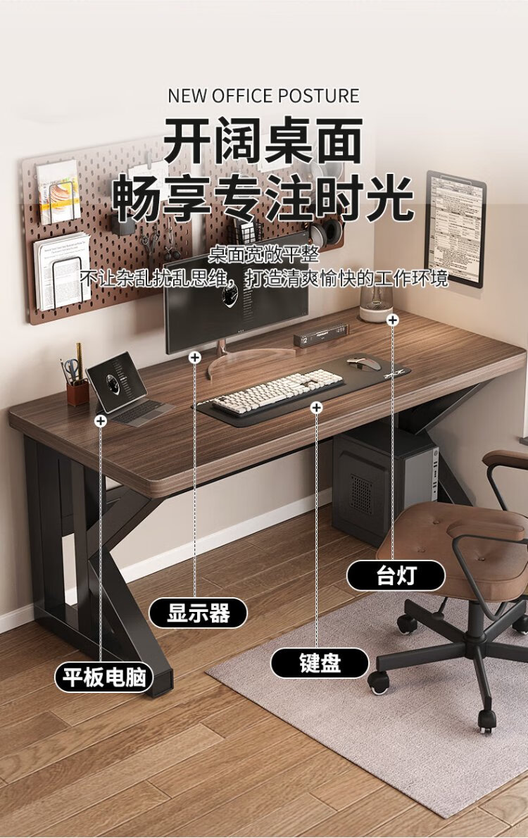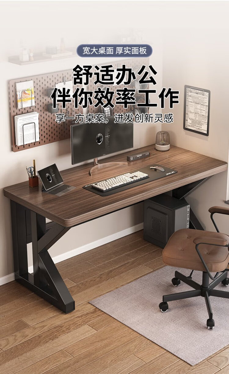 New appearance principle computer desk home study desk desktop desk office simple desk e-sports long table XZ21 deep walnut K frame extra thick panel 100*60cm