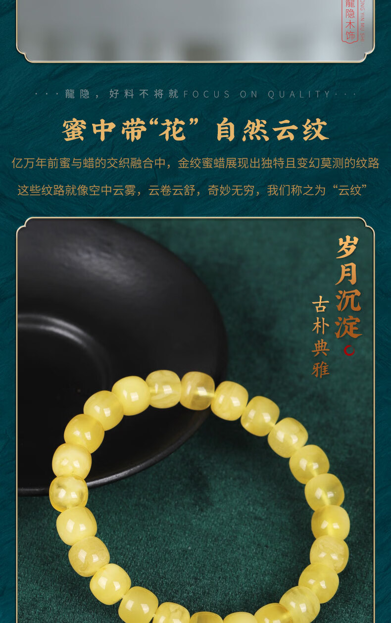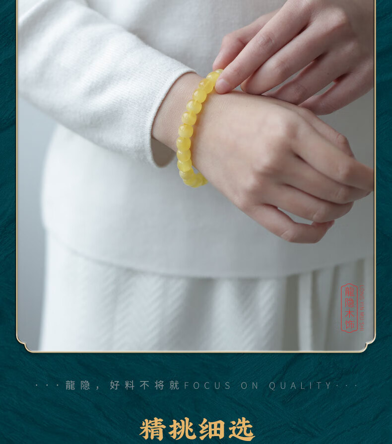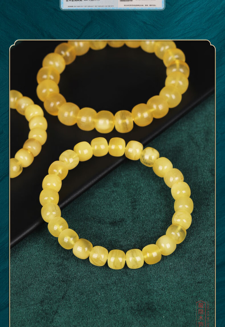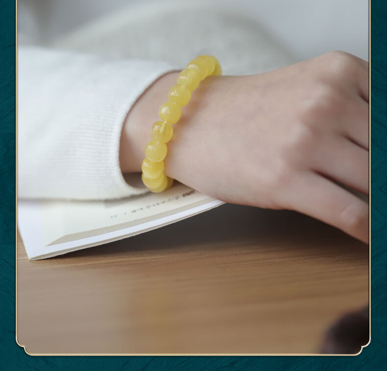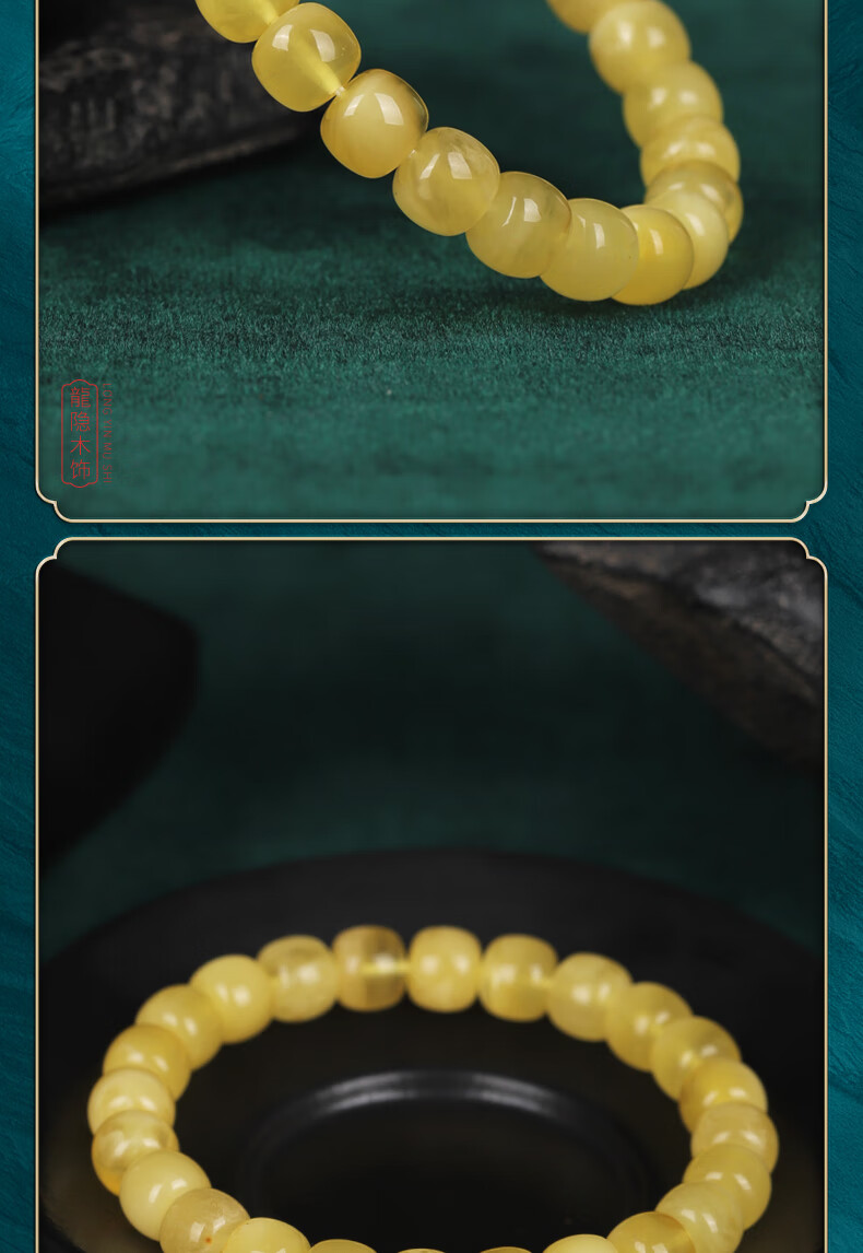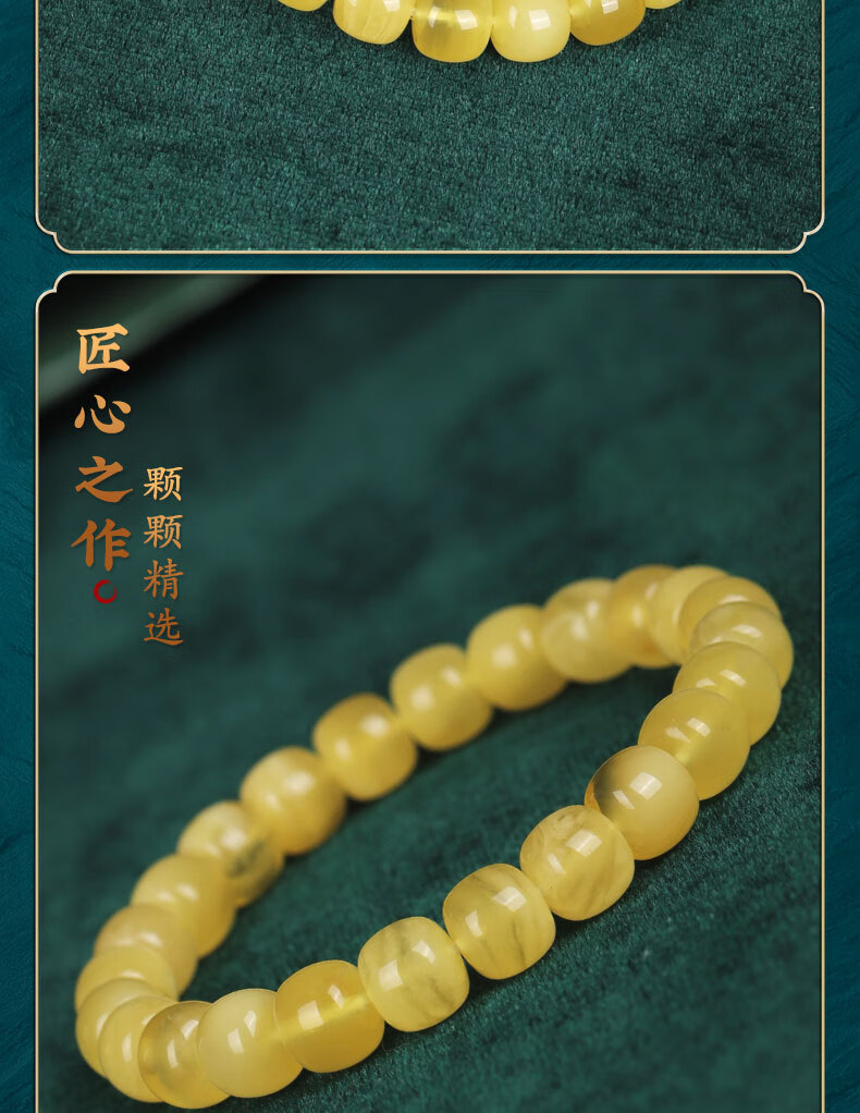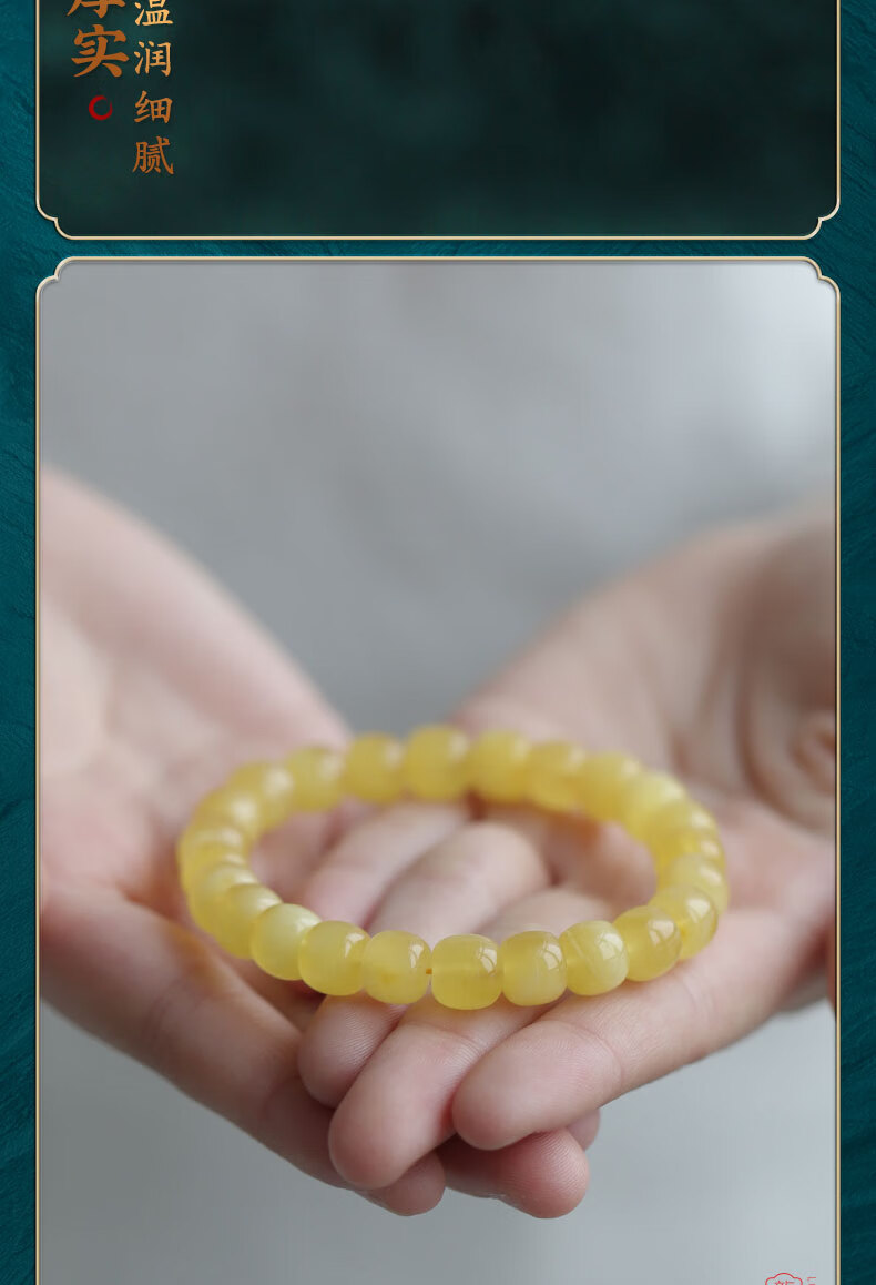 Longyin beeswax bracelet for women, Russian material, white flower nectar, chicken oil, yellow amber Buddha beads bracelet, men's single circle toy birthday gift, 8mm*9mm bucket bead style