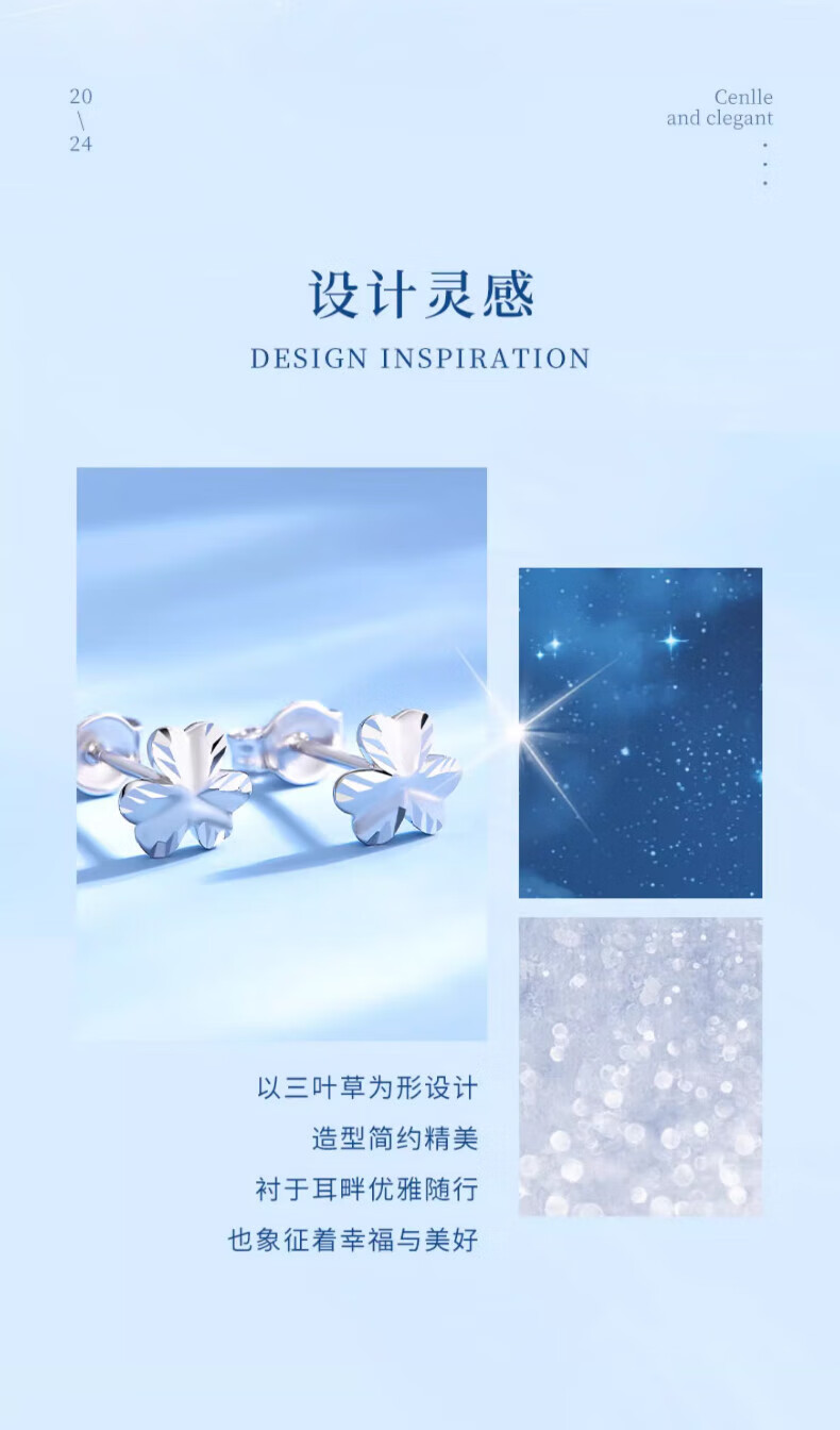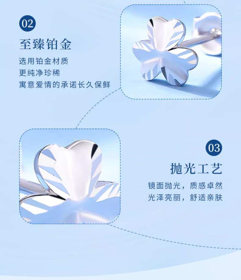 China Gold (CHINA GOLD) Clover Earrings for Women PT950 Platinum Earrings Platinum Earrings Niche Wedding and Birthday Gifts for Girlfriends Platinum Clover Earrings About 1.5g