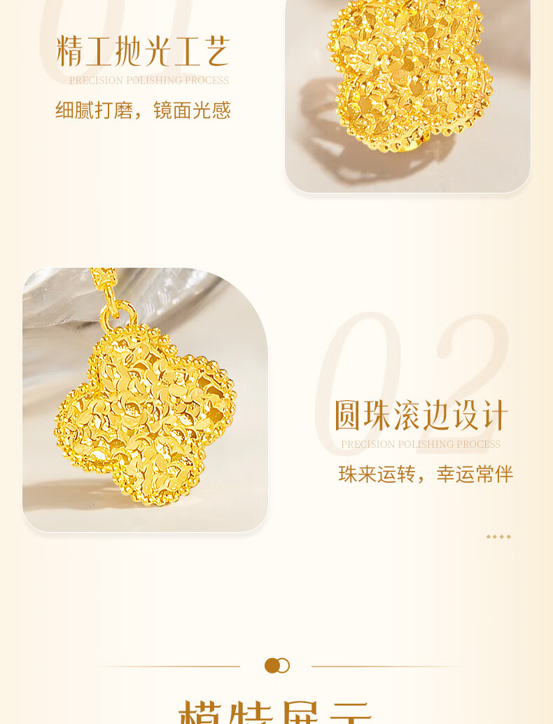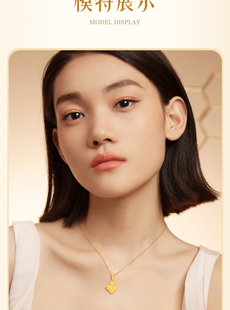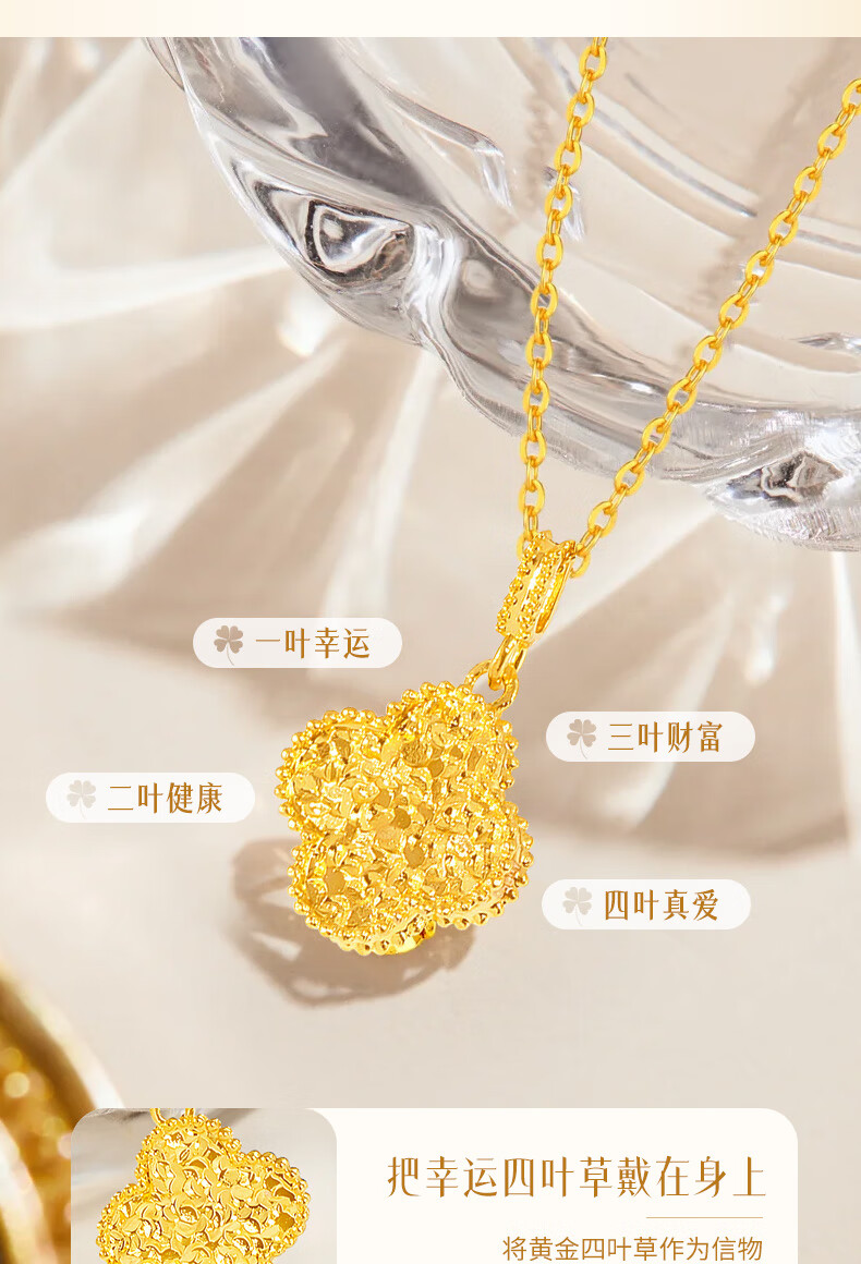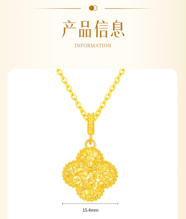 Chinese gold crushed ice four-leaf clover gold necklace female 18K gold pendant birthday gift for girlfriend and wife practical and high-end 18K gold crushed ice pendant + K gold chain