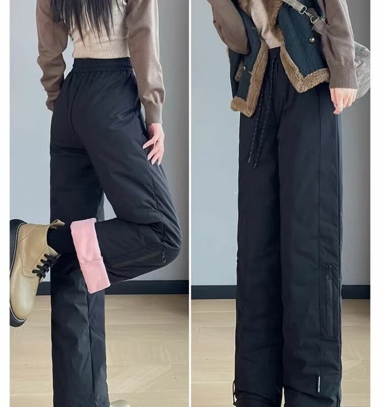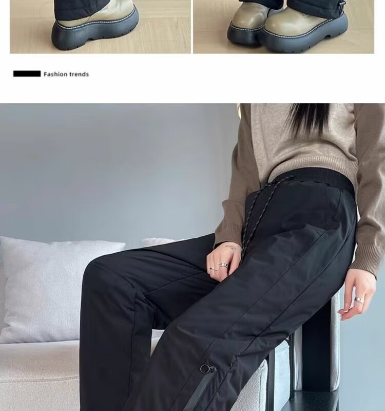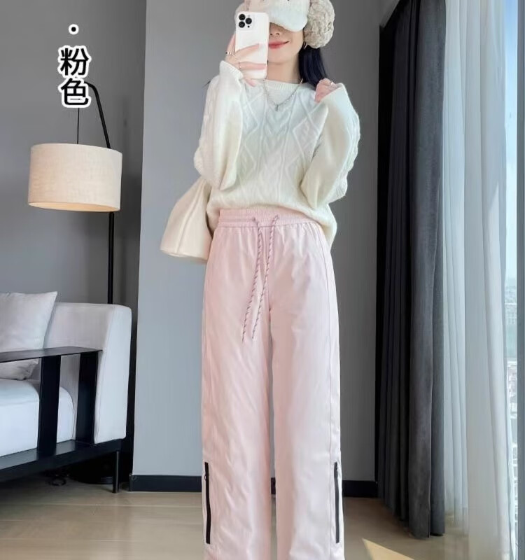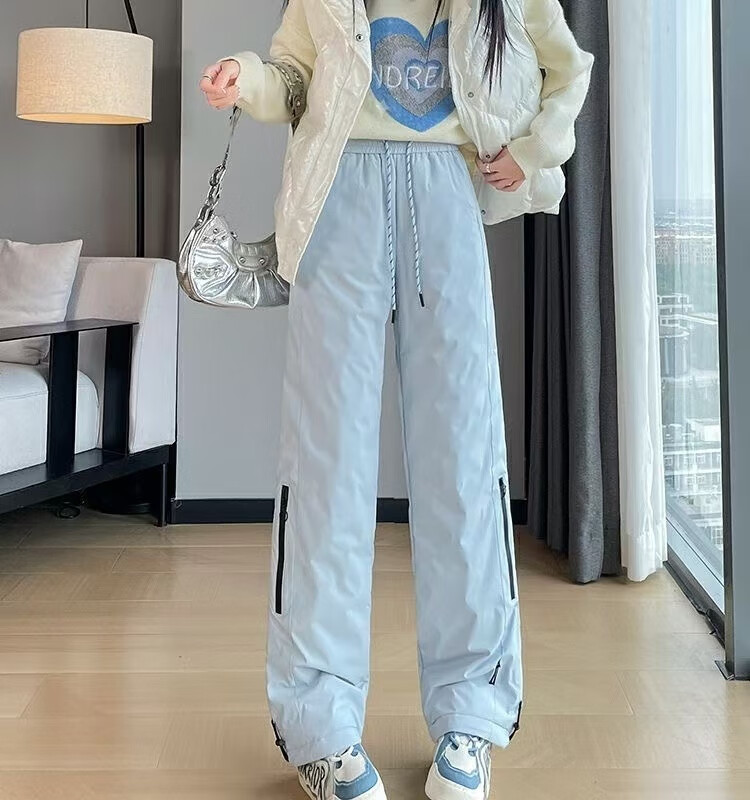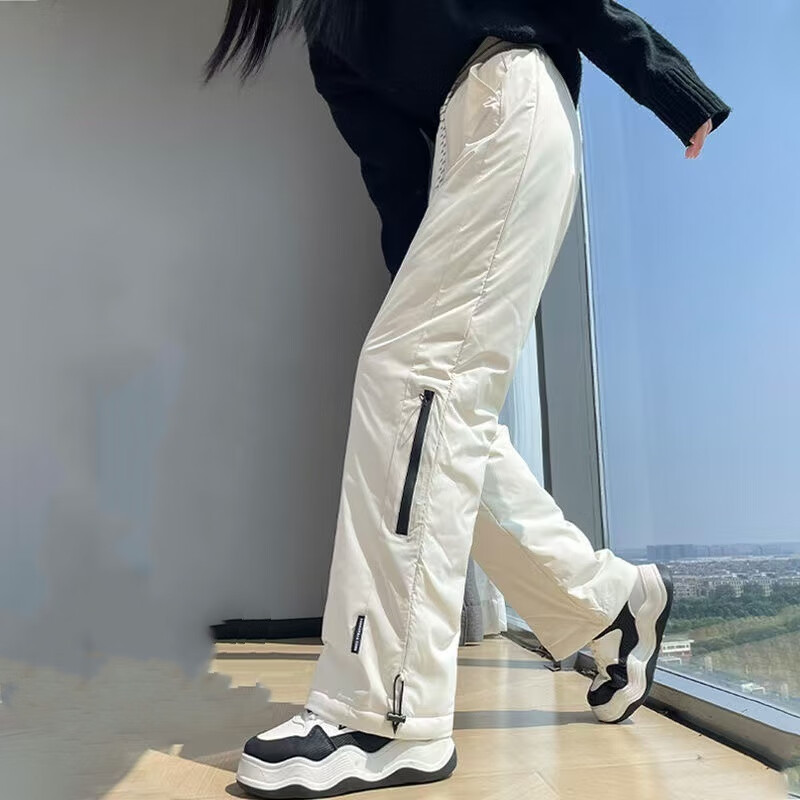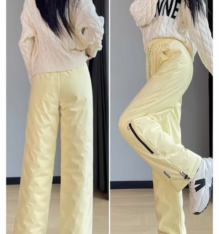 Yalu thickened down pants overalls for women 2025 winter new Northeast warm and cold-proof snow waterproof skiing off-white M