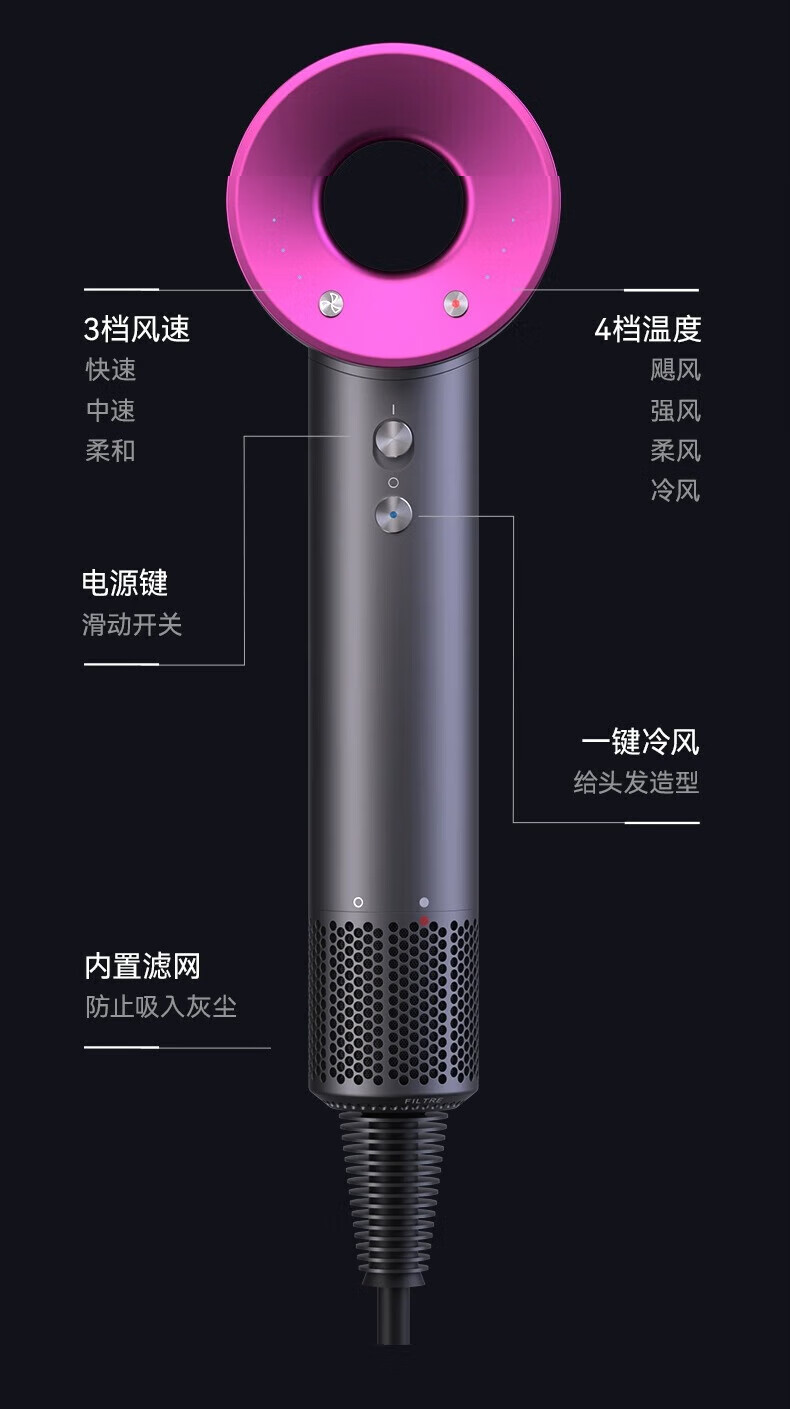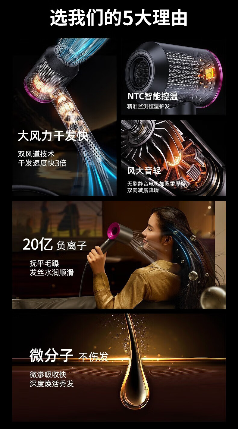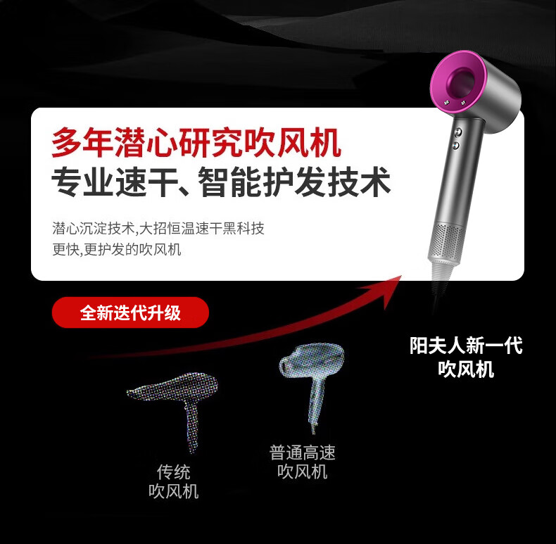 Mrs. Yang Huaqiangbei High-speed Hair Dryer Home Silent Negative Ions High Power Non-Hurting Hair Care High-Wind Hair Dryer Hair Salon Quick-drying Low-Noise Student Dormitory Hair Dryer 2024 Major Upgrade Rose Red Hair Care丨Quick-drying丨Silent