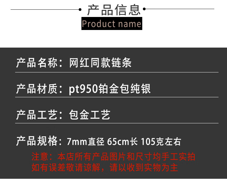 Fat Donglai's same style platinum pt950 necklace bag silver men's internet celebrity's same style tank Internet celebrity's same style punk style necklace *PT272 about 7mm