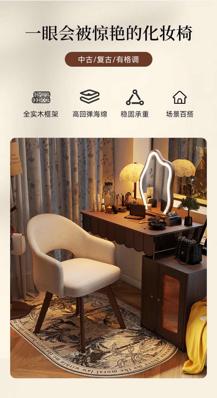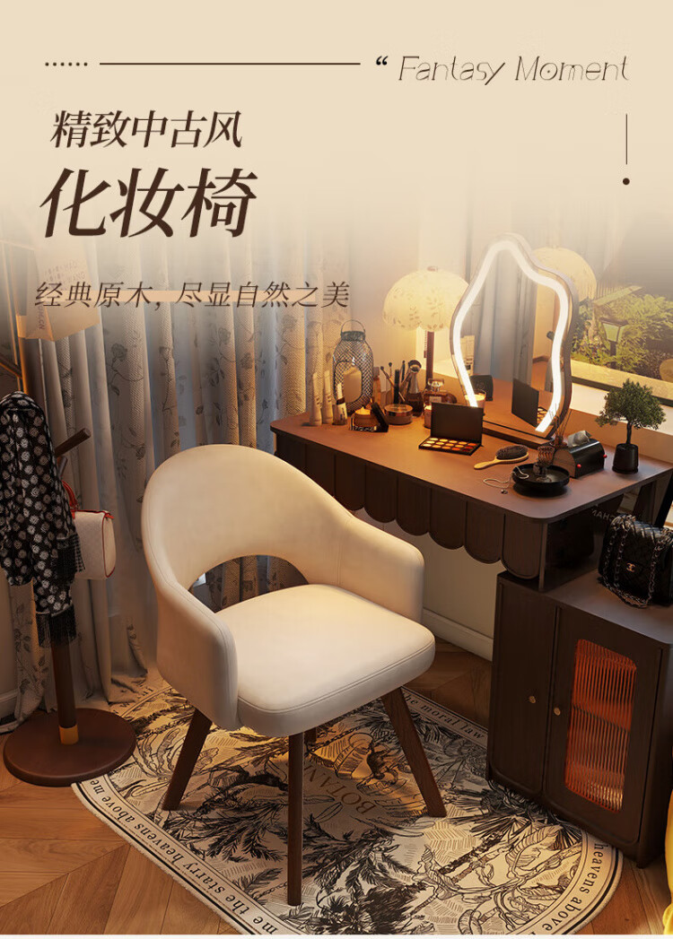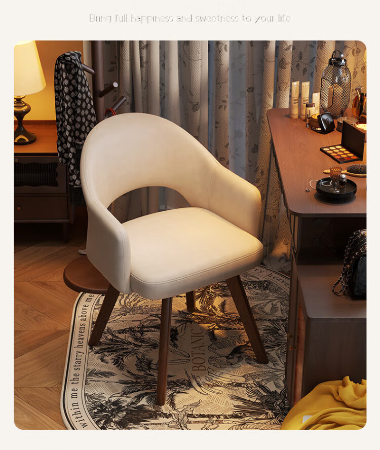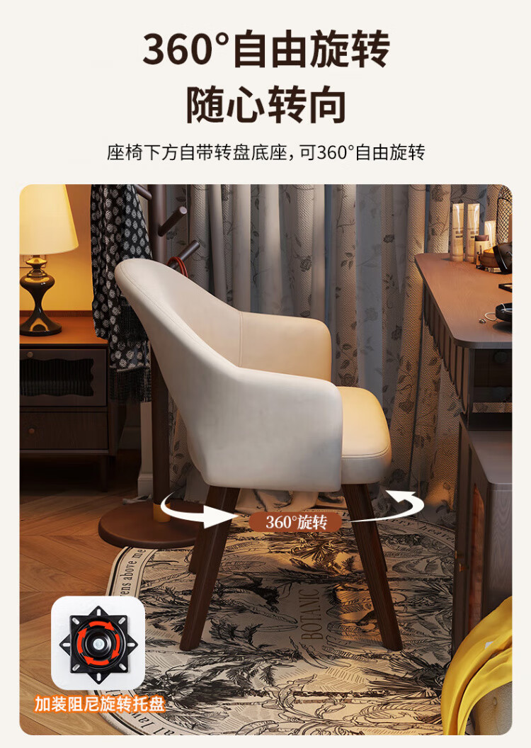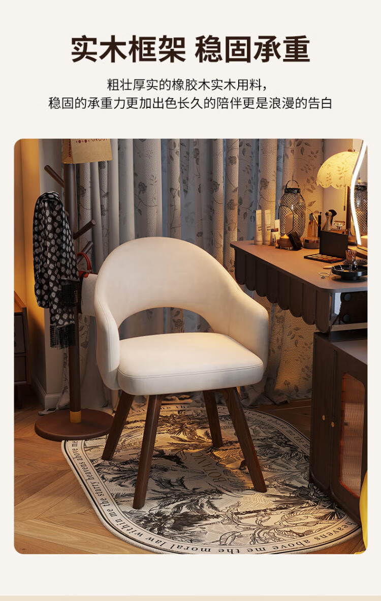Manshanzhong antique style dressing chair solid wood rotatable makeup chair girls bedroom dressing table back chair retro stool light luxury simple white-latex cushion skin-friendly flannel