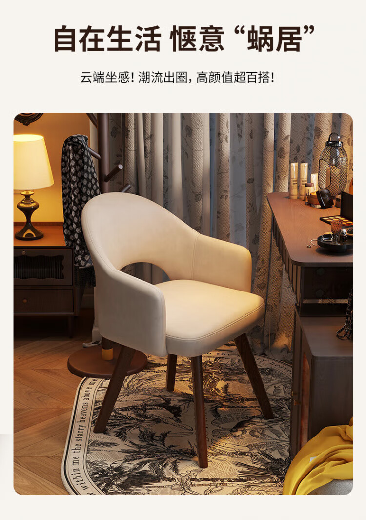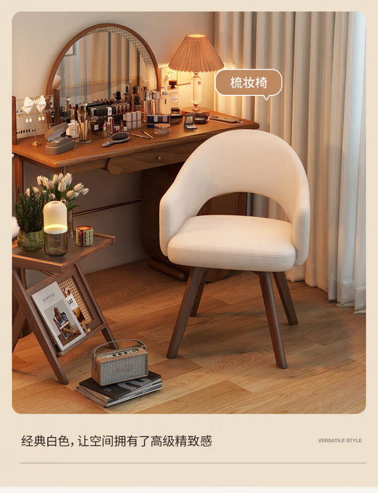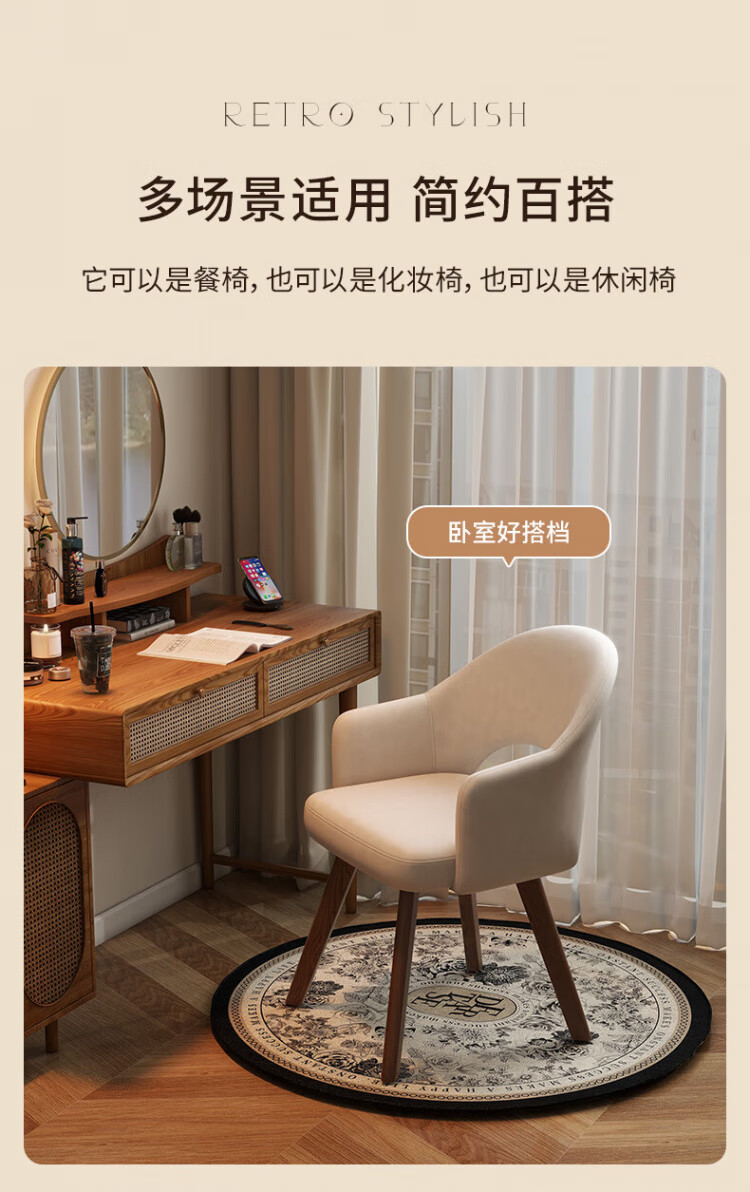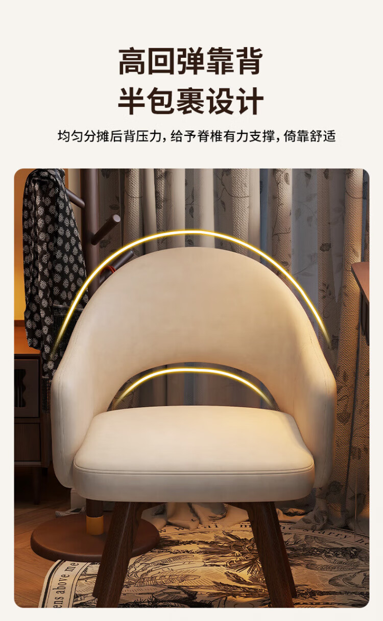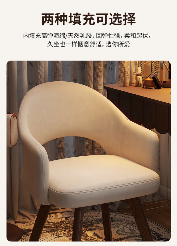 Manshanzhong antique style dressing chair solid wood rotatable makeup chair girls bedroom dressing table back chair retro stool light luxury simple white-latex cushion skin-friendly flannel