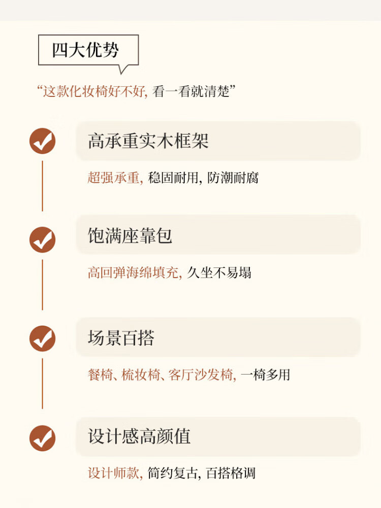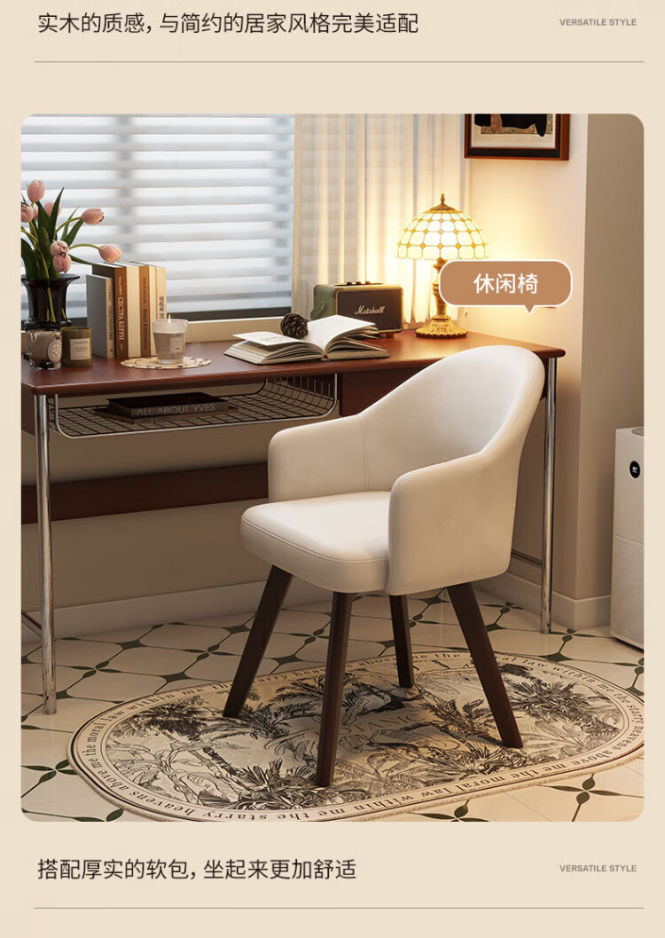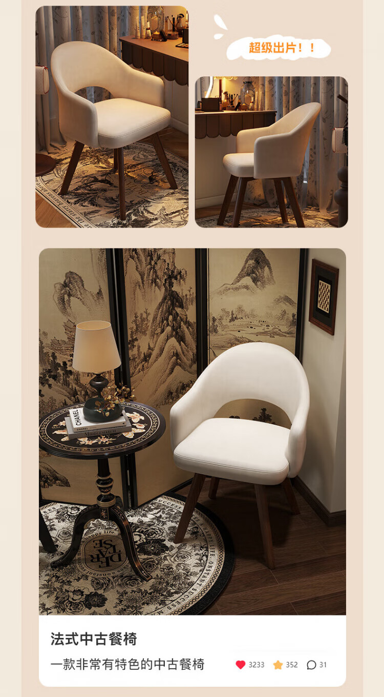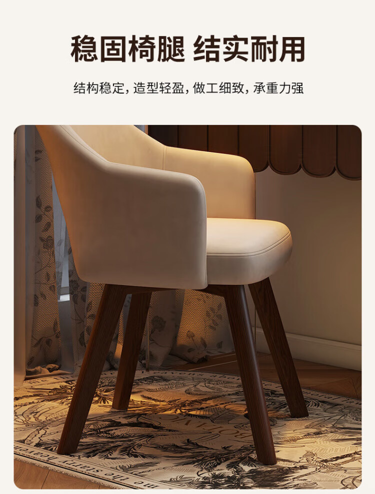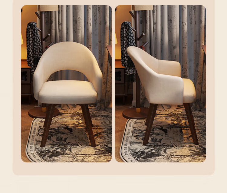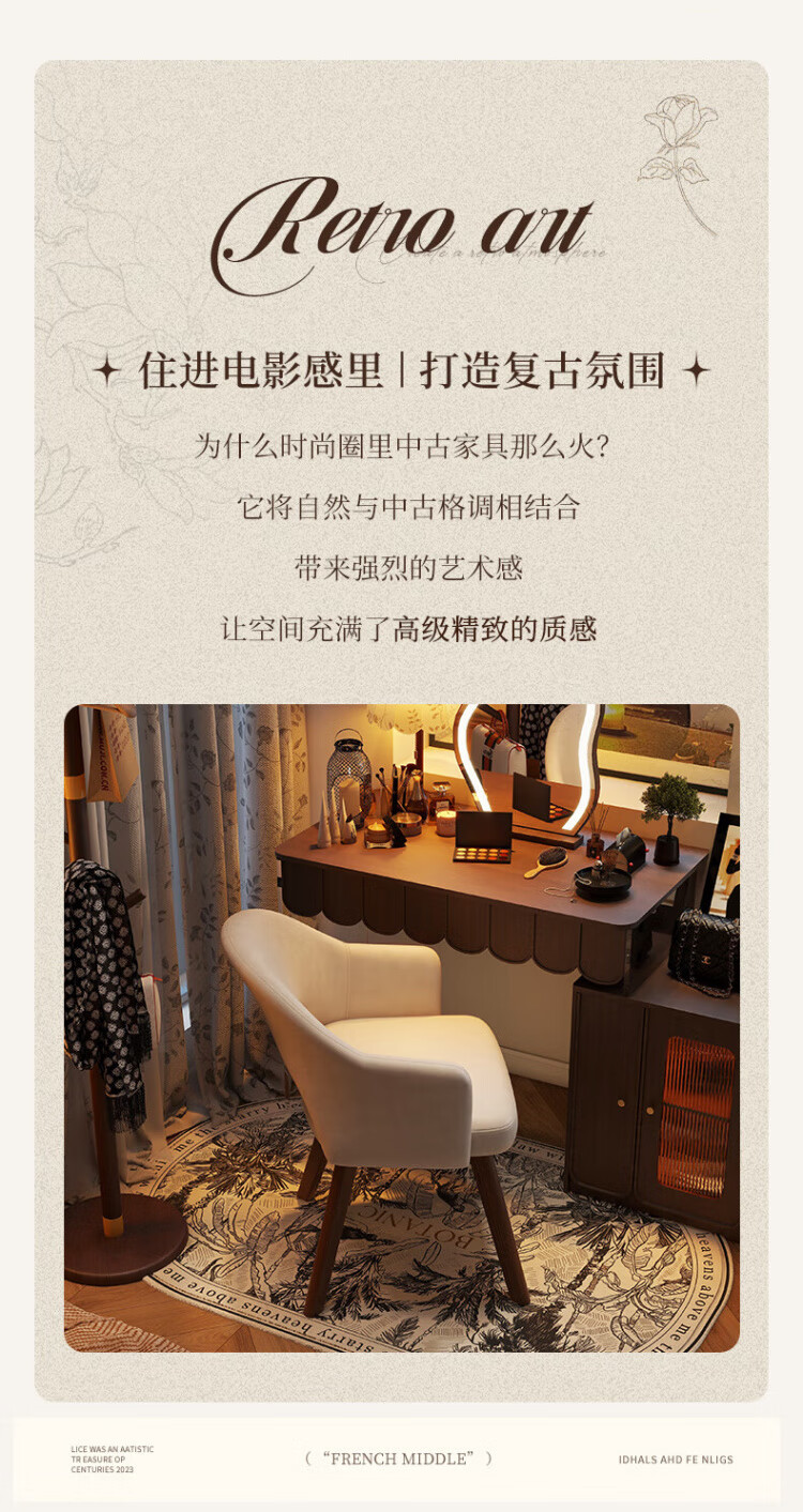 Manshanzhong antique style dressing chair solid wood rotatable makeup chair girls bedroom dressing table back chair retro stool light luxury simple white-latex cushion skin-friendly flannel