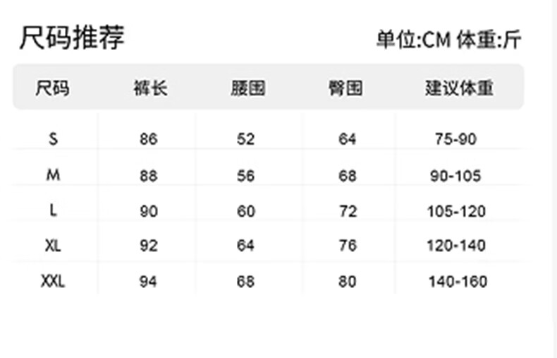 China (cm) 160-165/84-86 165-170 / 88-90 167-172 / 92-96 168-173 / 98-102 170-176 / 106-110