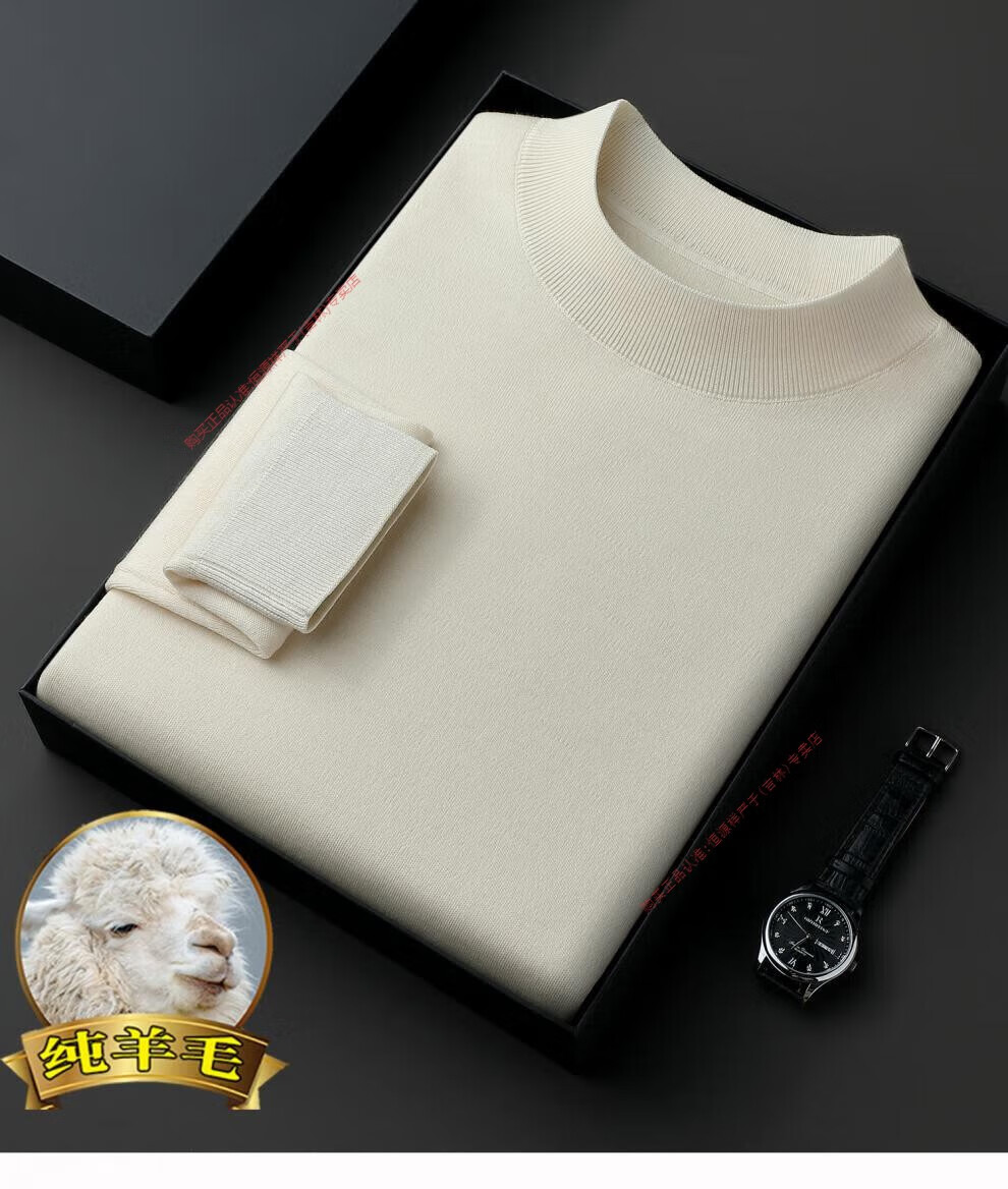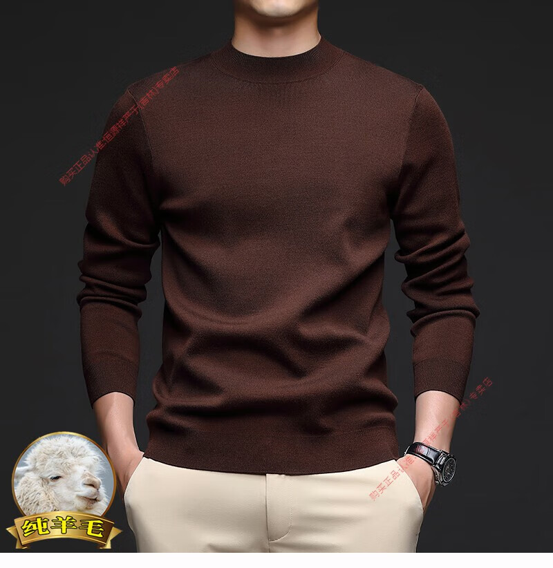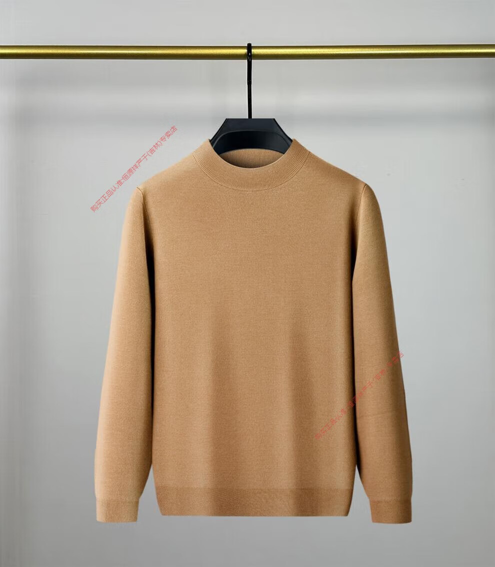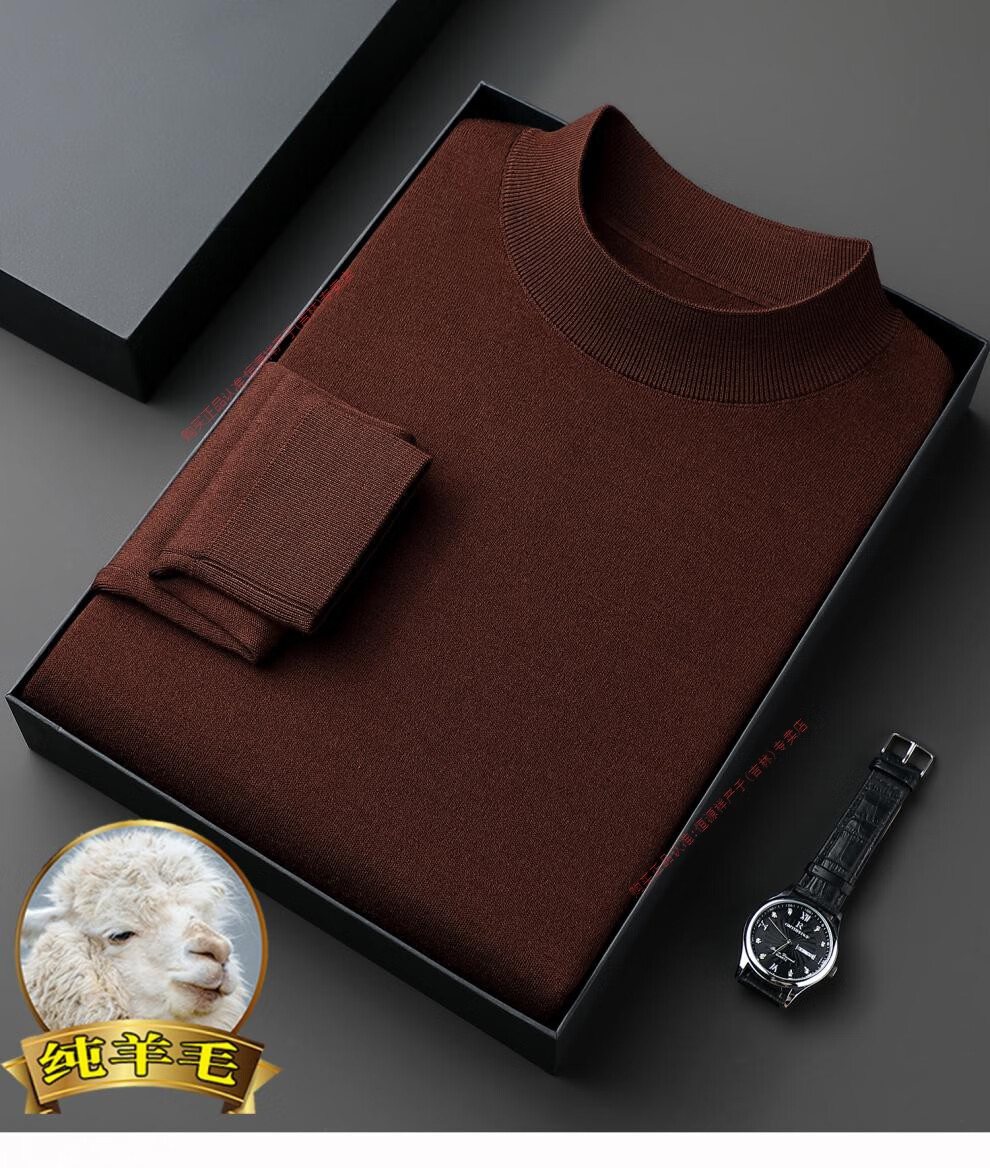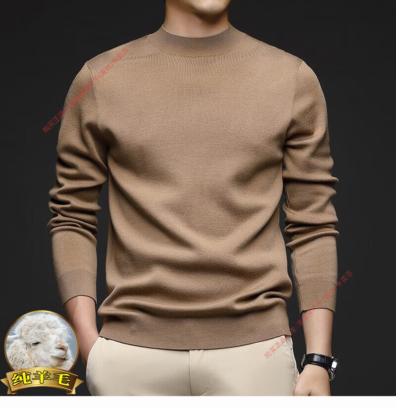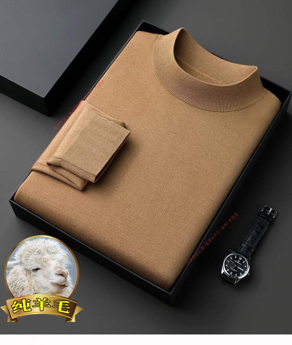 Hengyuanxiang men's worsted solid color woolen sweater machine washable winter mid-collar sweater all wool warm base layer sweater for men light brown high-end big brand L 170 high-end big brand