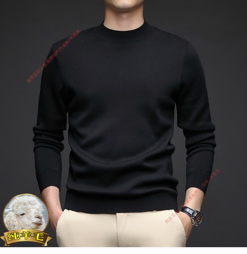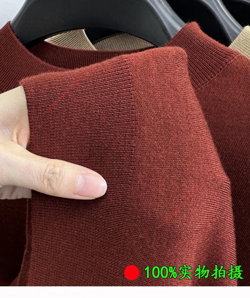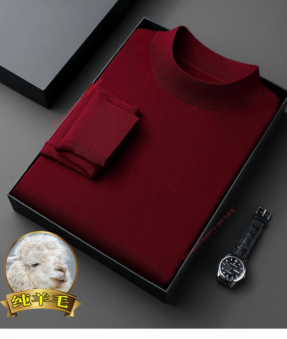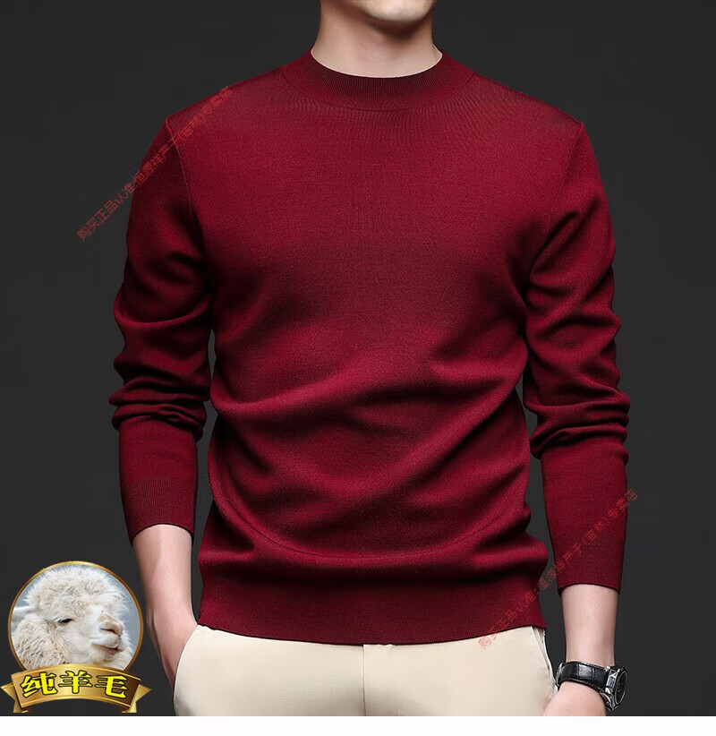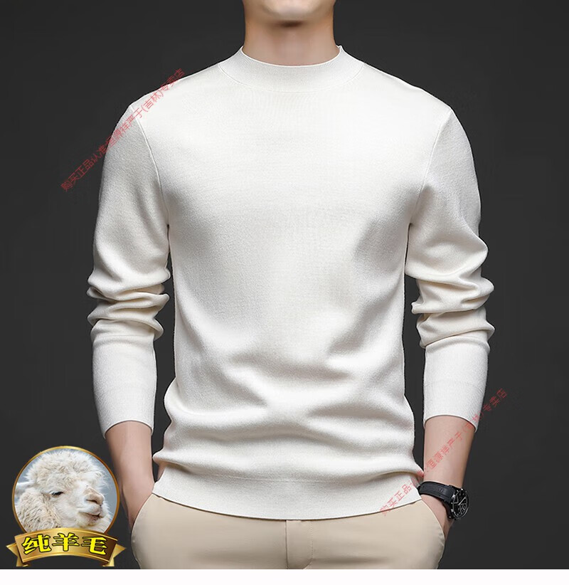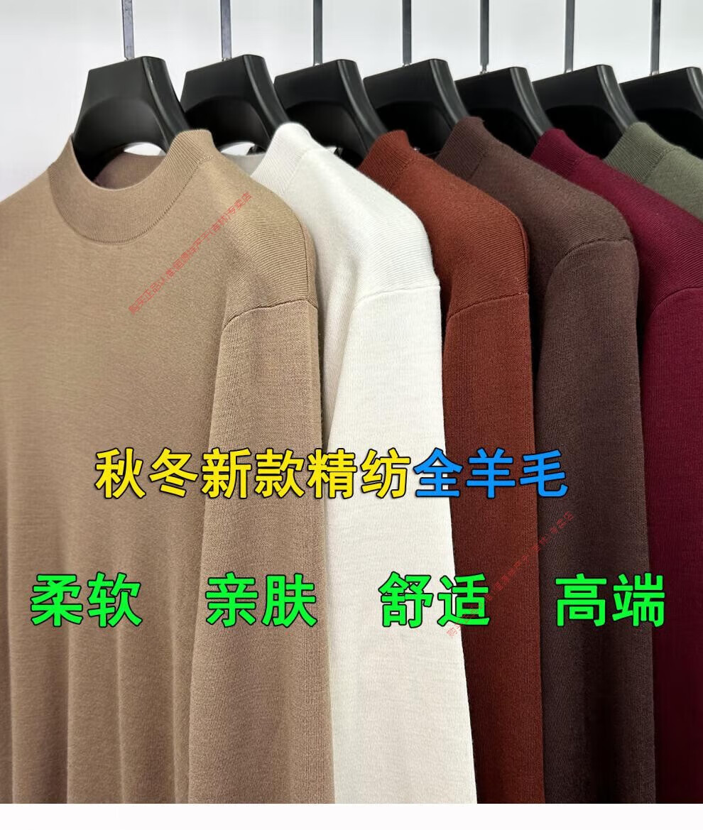 Hengyuanxiang men's worsted solid color woolen sweater machine washable winter mid-collar sweater all wool warm base layer sweater for men light brown high-end big brand L 170 high-end big brand