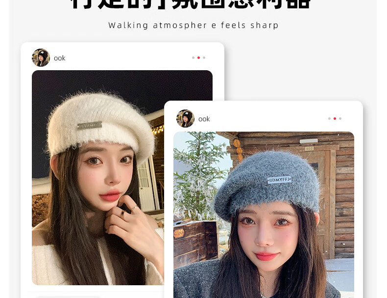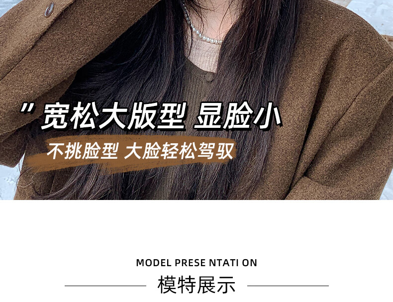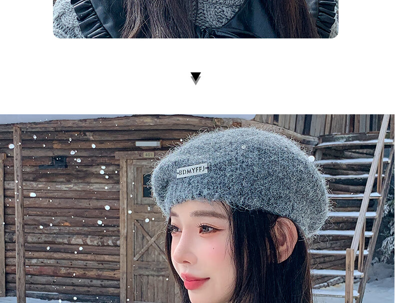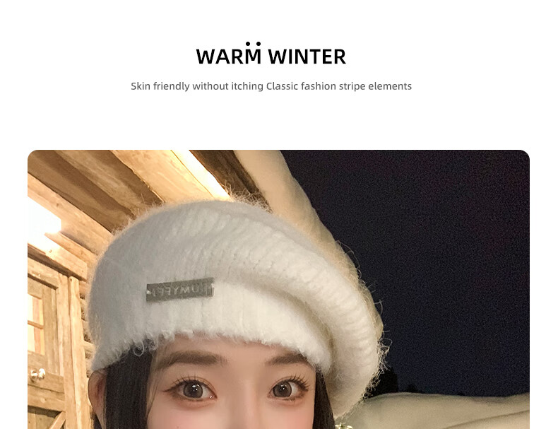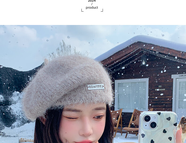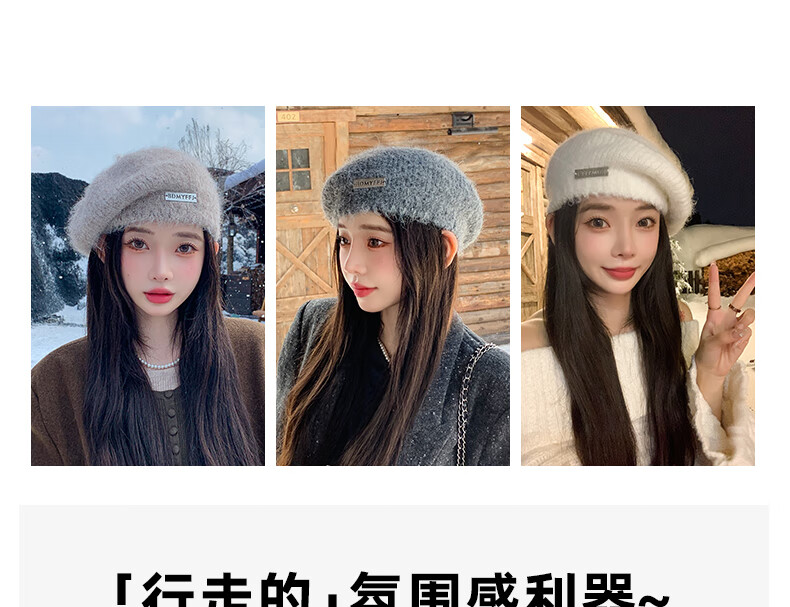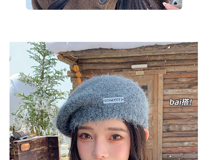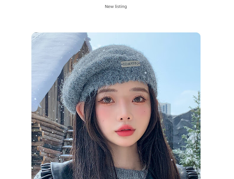 Xingmei Lanfei knitted beret women's autumn and winter plush lazy style painter's hat big head circumference showing face small winter woolen hat camel adjustable