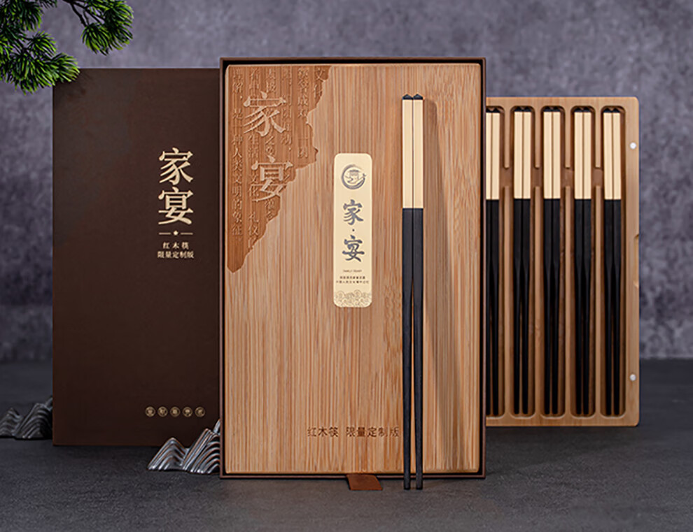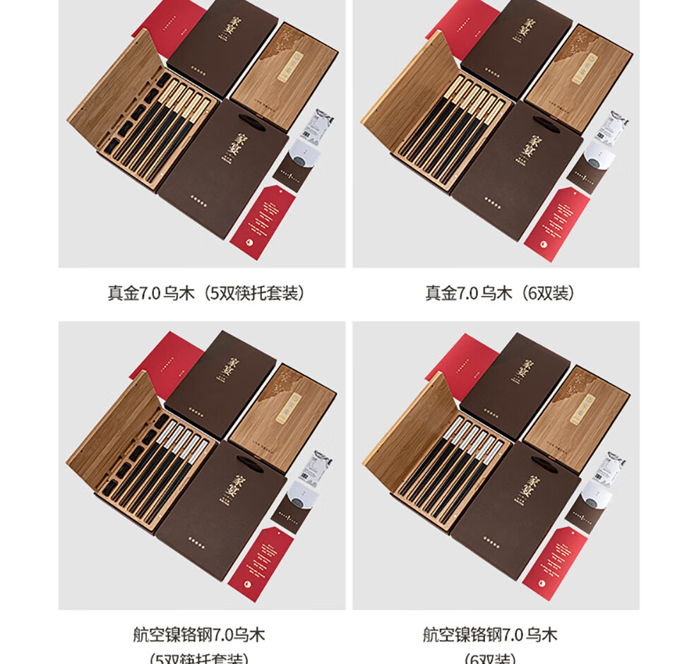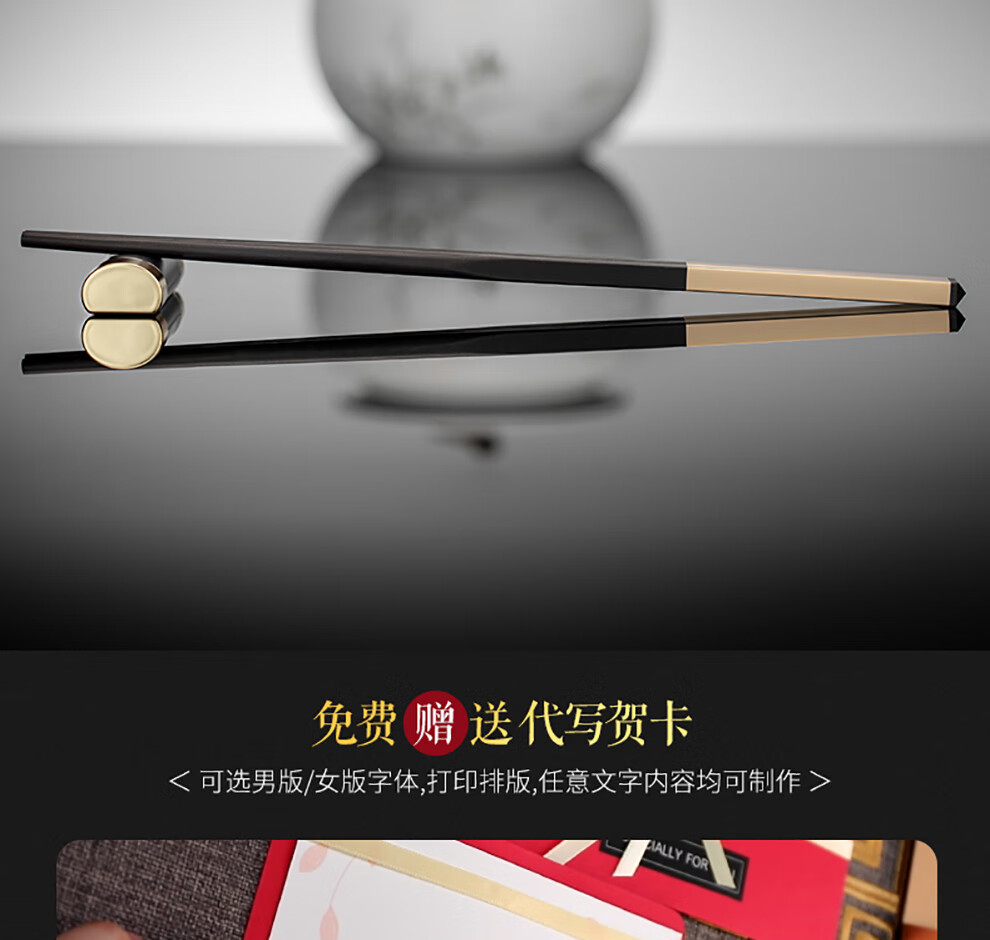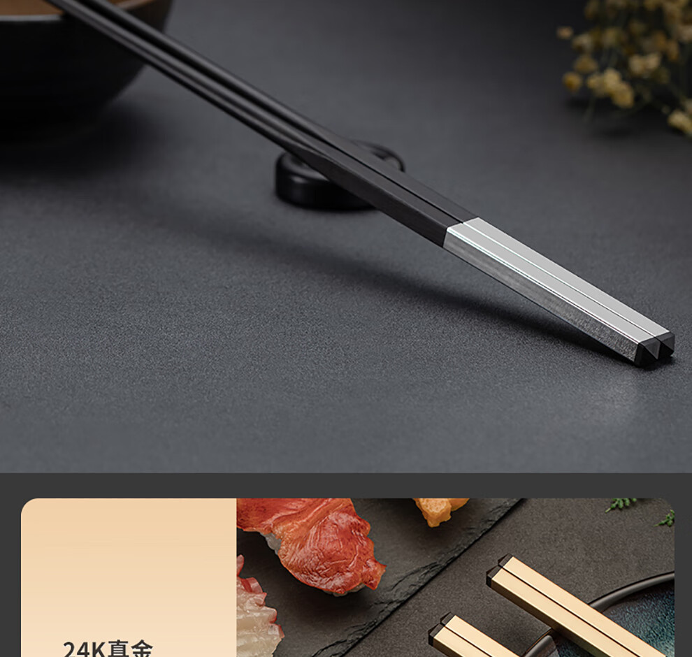 Hongtuo Family Banquet 24K Gold Chopsticks Ebony Ebony Chopstick Holder Wooden Box Housewarming Gift Box Set Customized Family Banquet 5 Pairs Set-Aviation Nickel Chrome Steel Ebony