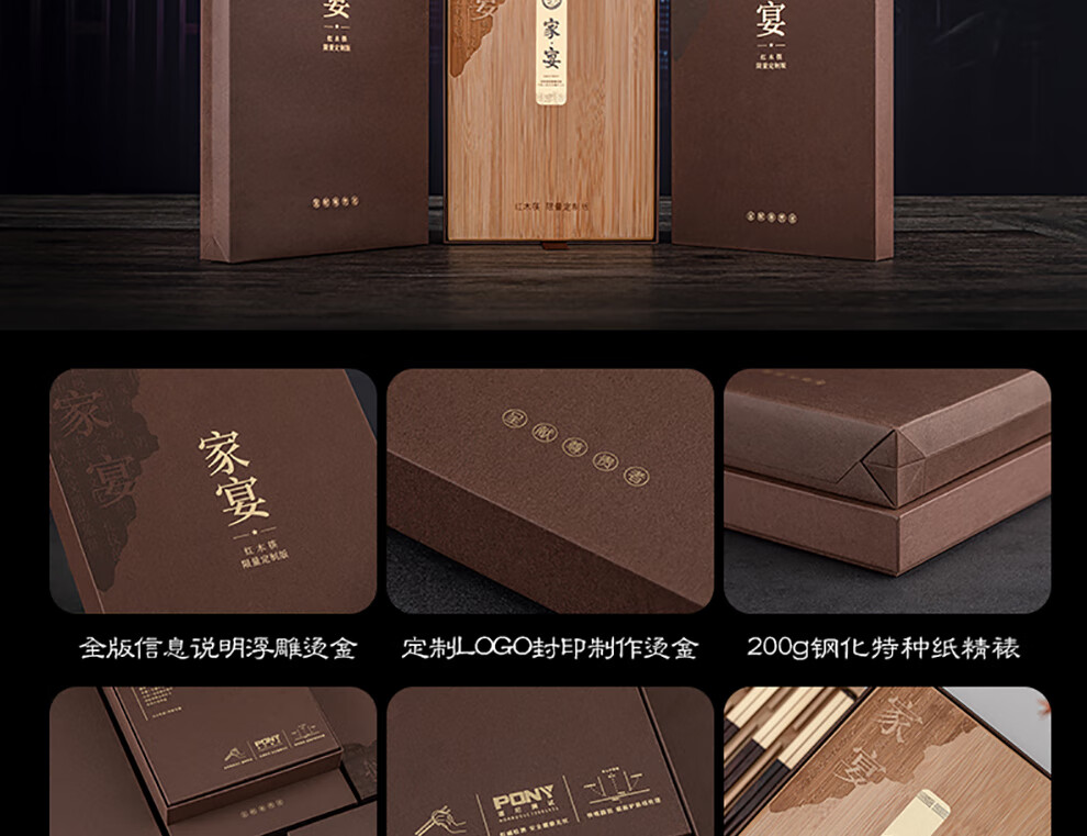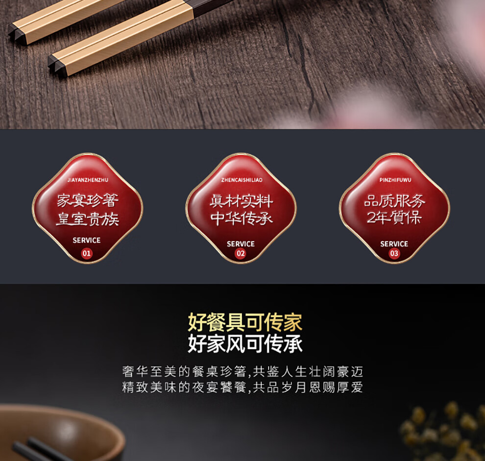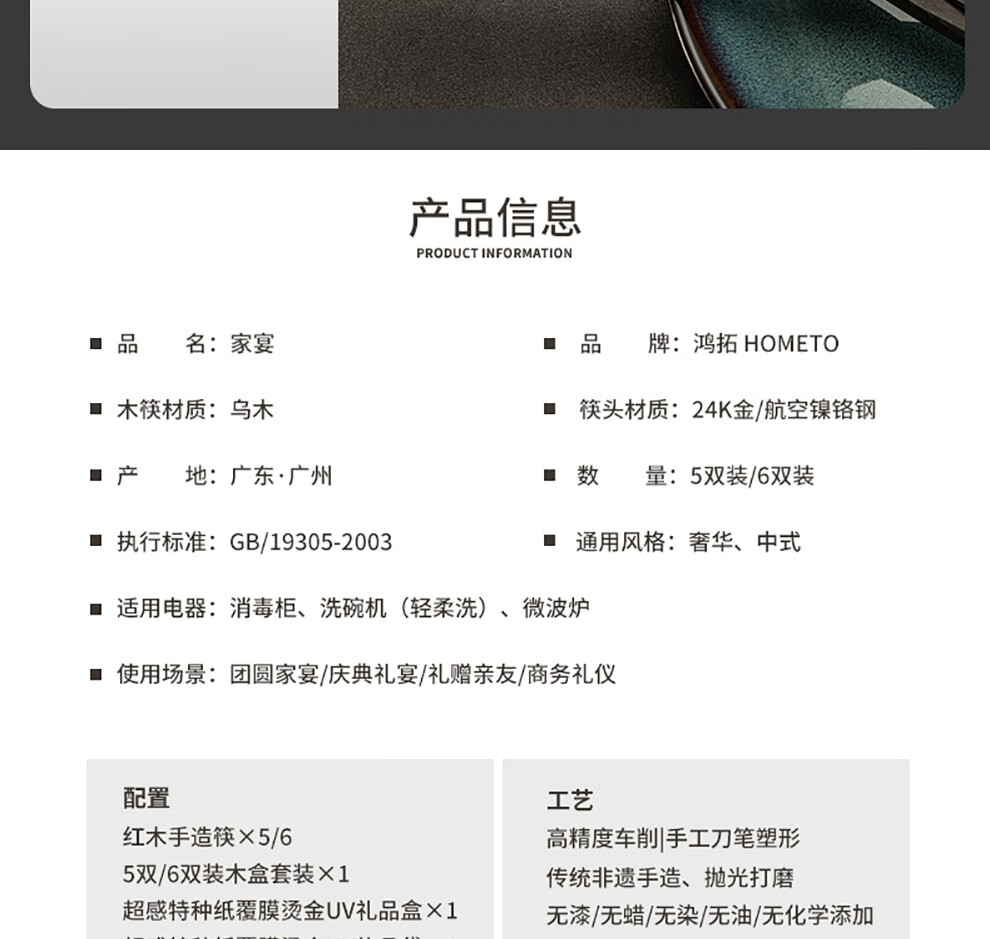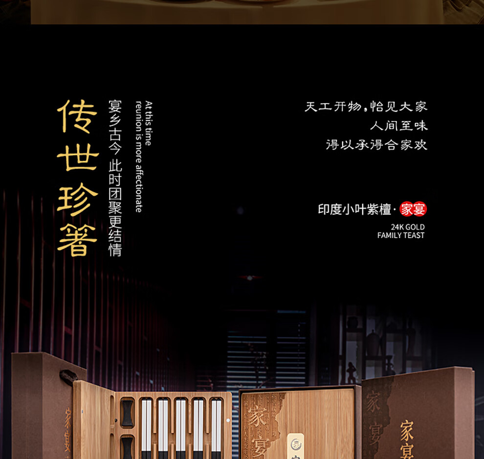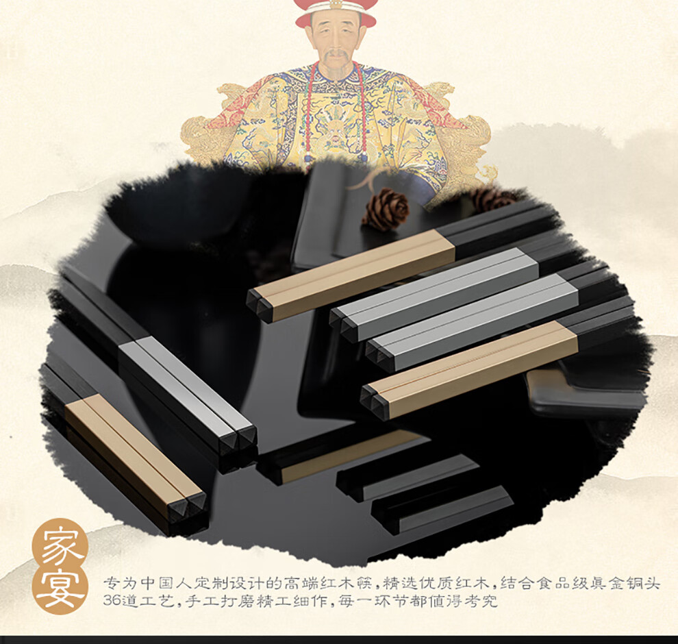 Hongtuo Family Banquet 24K Gold Chopsticks Ebony Ebony Chopstick Holder Wooden Box Housewarming Gift Box Set Customized Family Banquet 5 Pairs Set-Aviation Nickel Chrome Steel Ebony