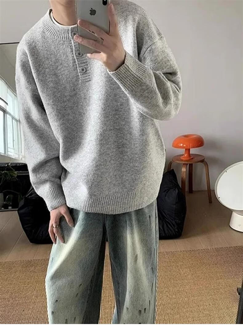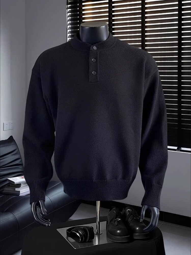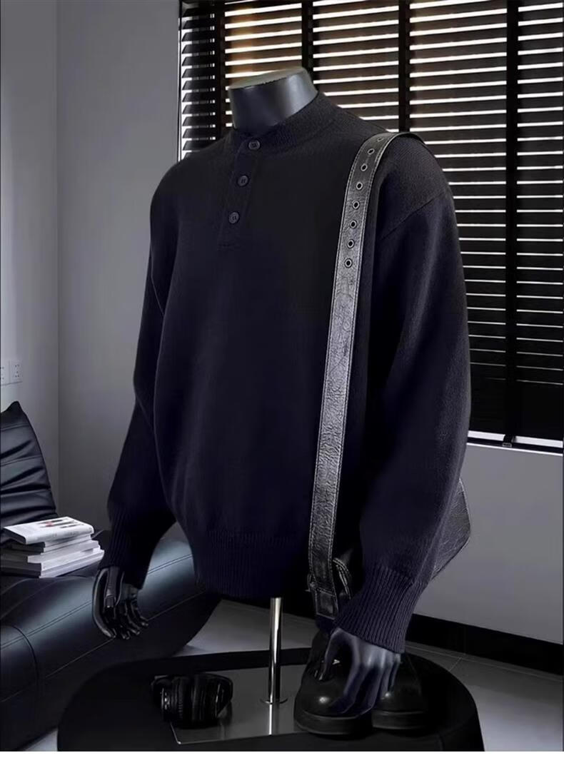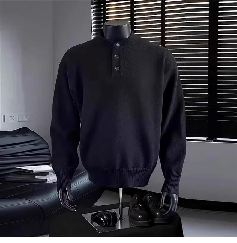 Lifeng Lei Jun's same style cleanfit Henry collar sweater men's winter lazy style bottoming sweater American jacket black upgraded style L (recommended 115-130Jin Jin equals 0.5 kg)