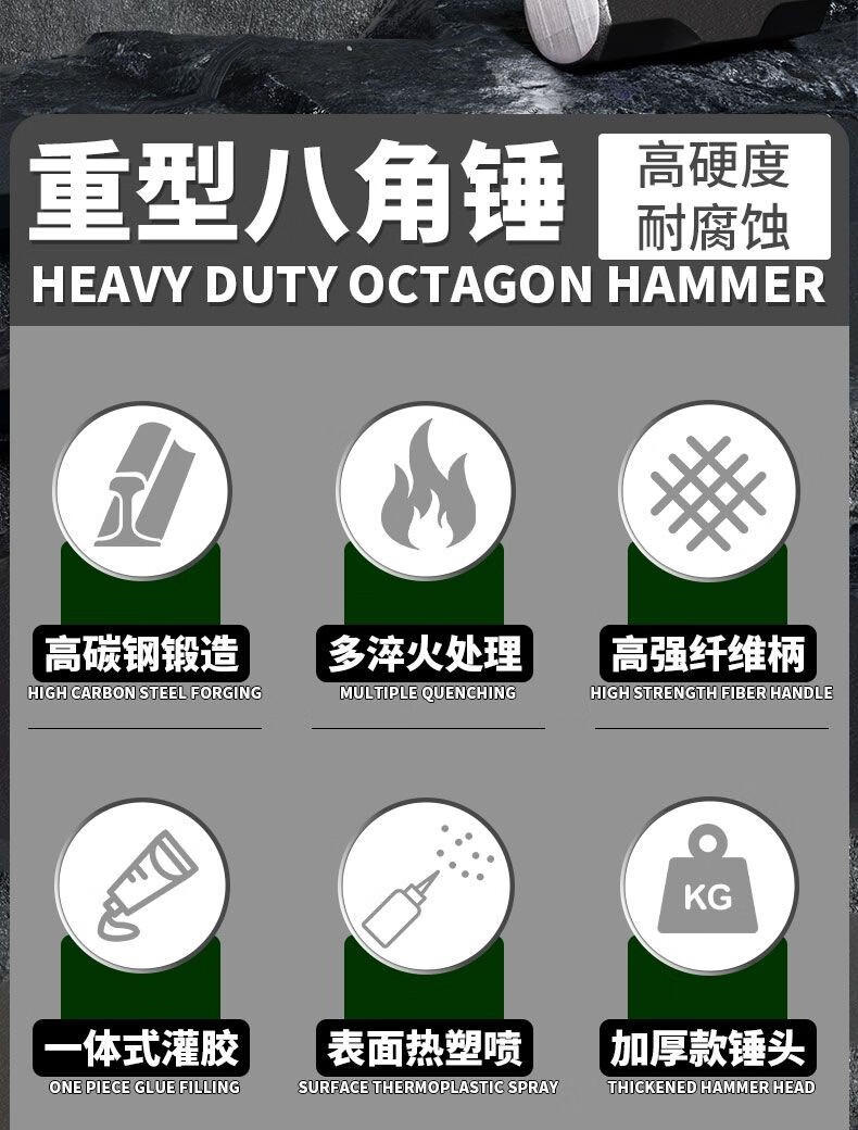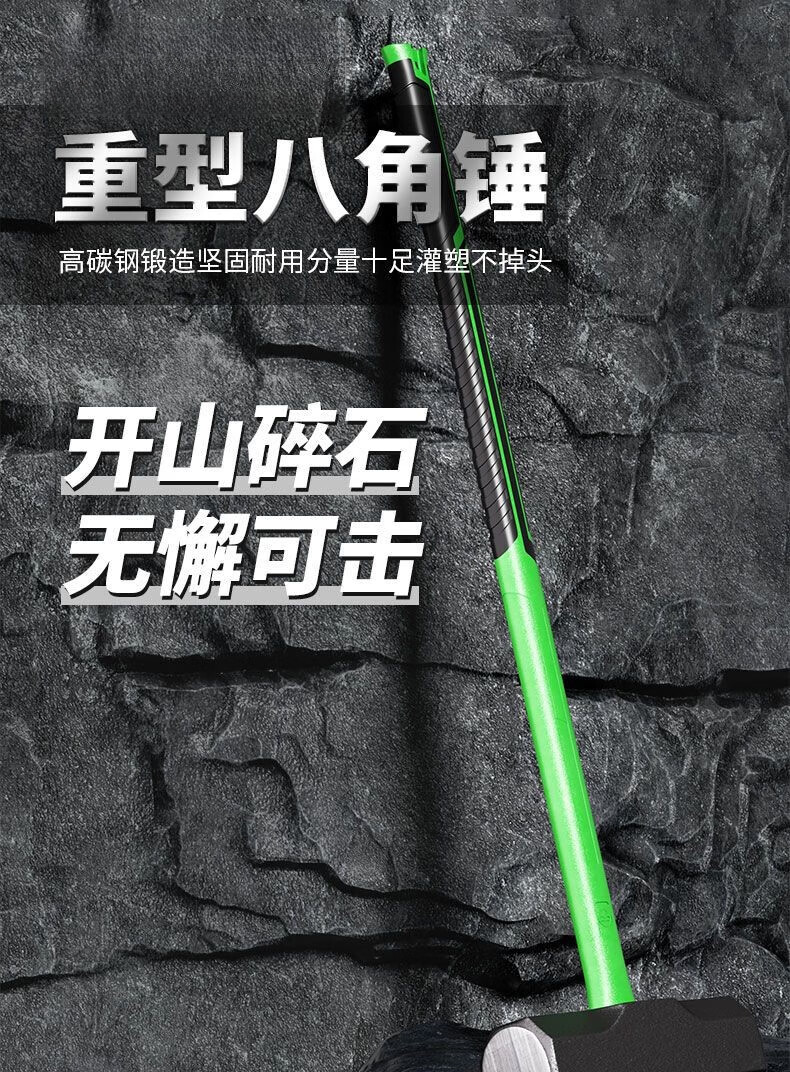 Yichen customized sledge hammer with soft handle, heavy-duty hammer for smashing the wall, octagonal hammer, rubber handle, anti-shock hammer tool, solid one-piece hand hammer, 8-20 pound sledge hammer special hammer handle 1 piece
