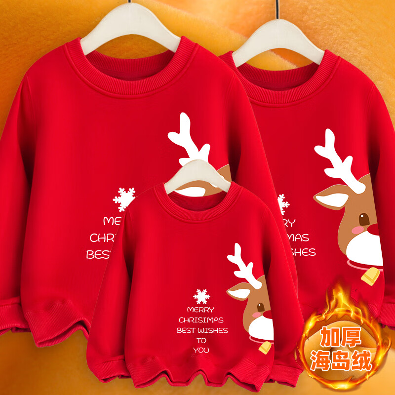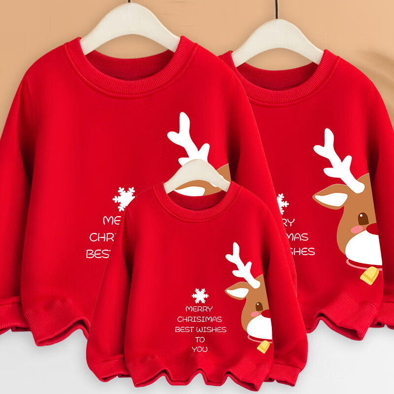 Disney (DISNEY) parent-child wear red family of three sweatshirts 2024 new foreign Christmas party mother-daughter wear family wear Spring and Autumn red round neck leaking face Christmas 120cm recommended 28-38Jin Jin equals 0.5 kg