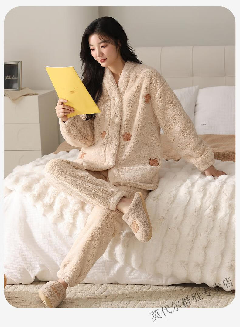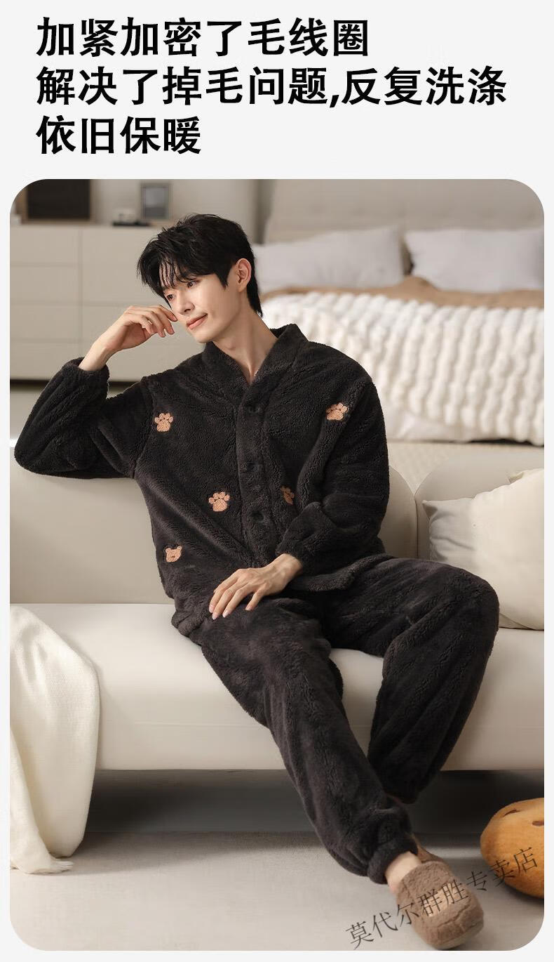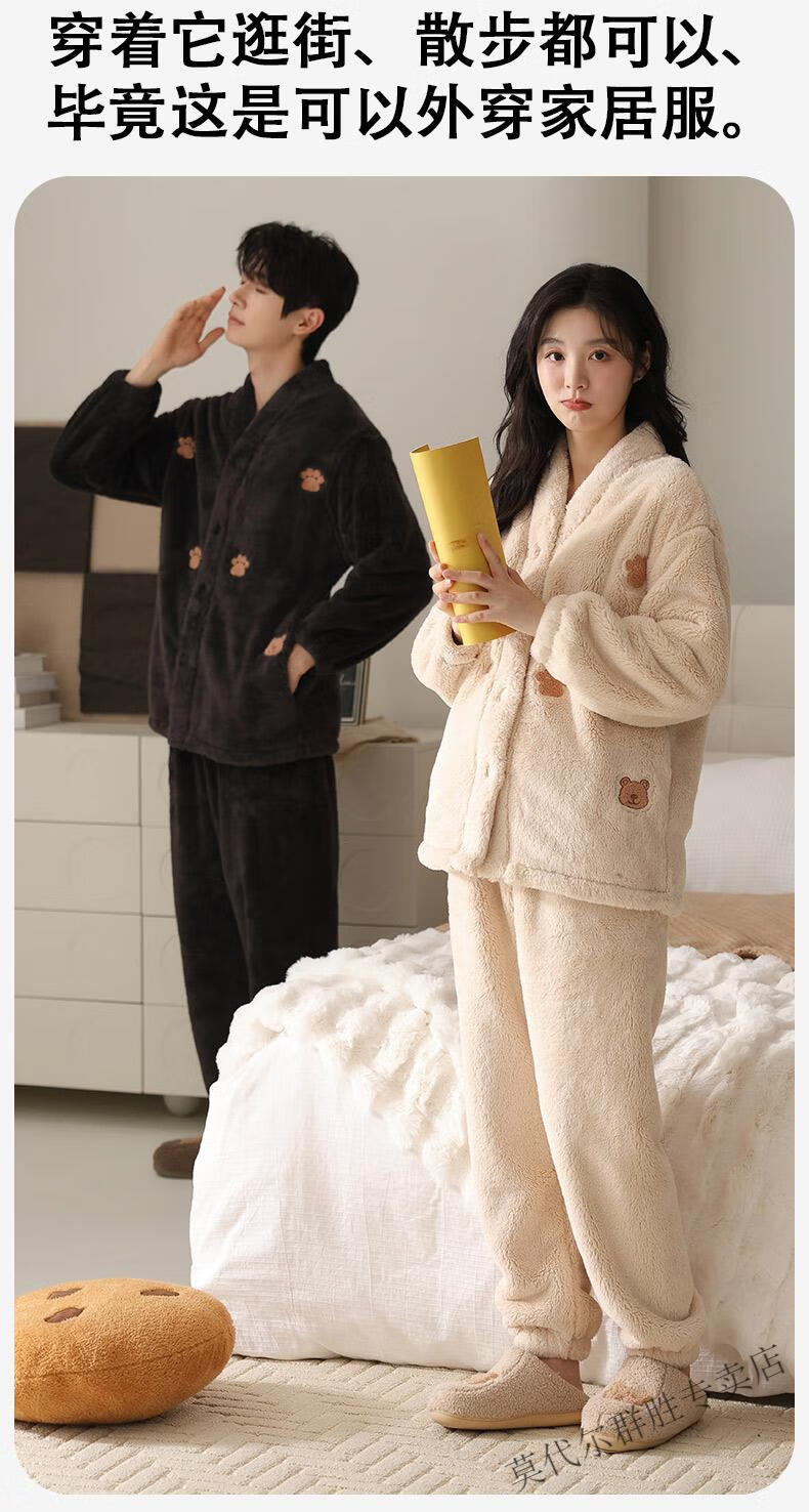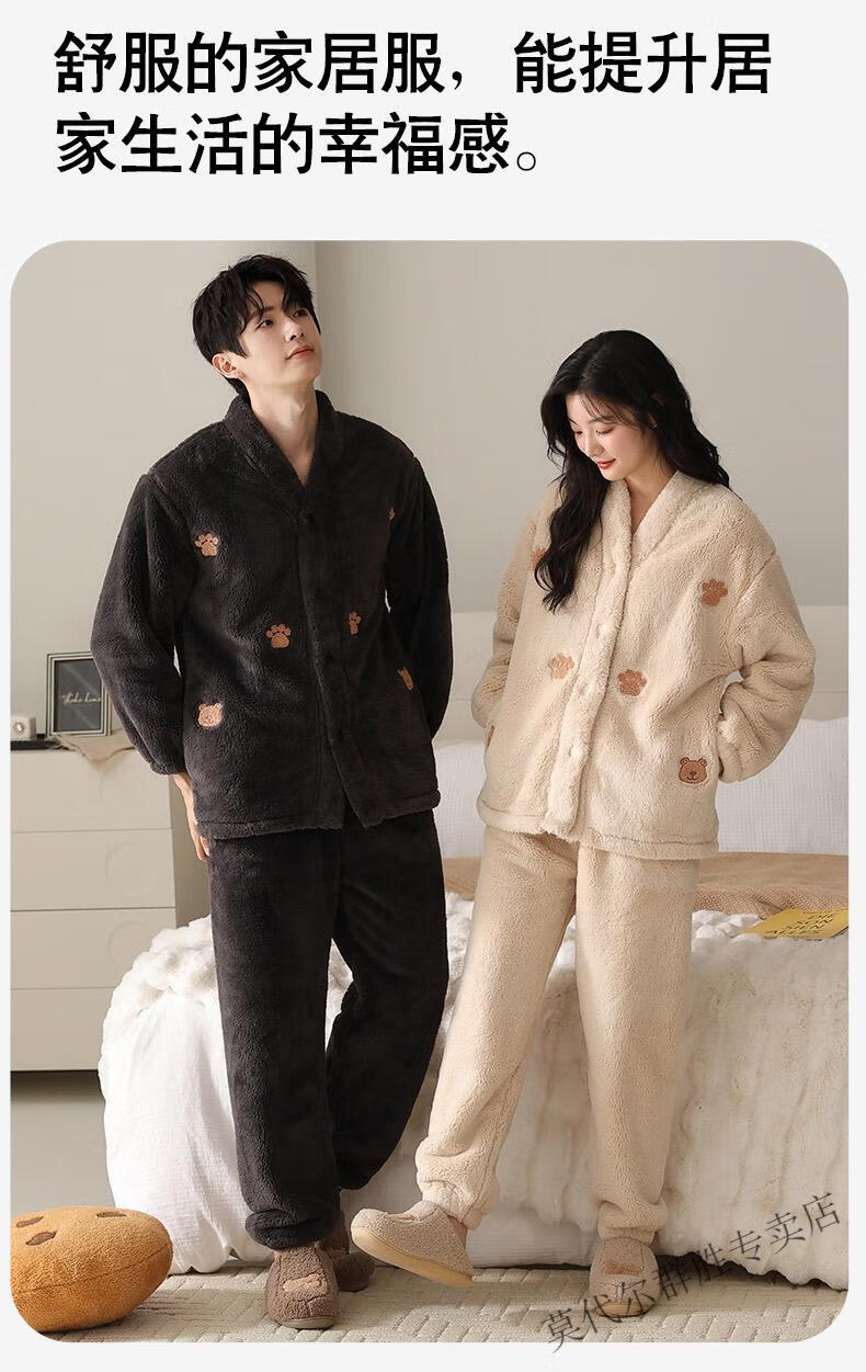 Modal Coral Velvet Couple Pajamas Women's Autumn and Winter Style Plus Velvet Thickening Men's Winter Cardigan Home Clothes Set LMK61083 L Women + Men 2XL