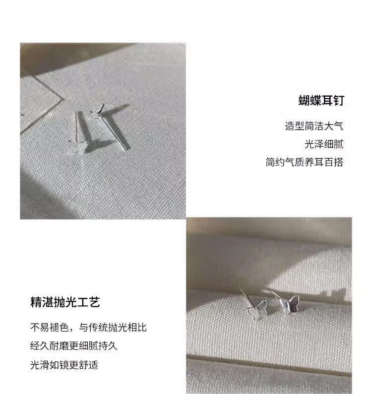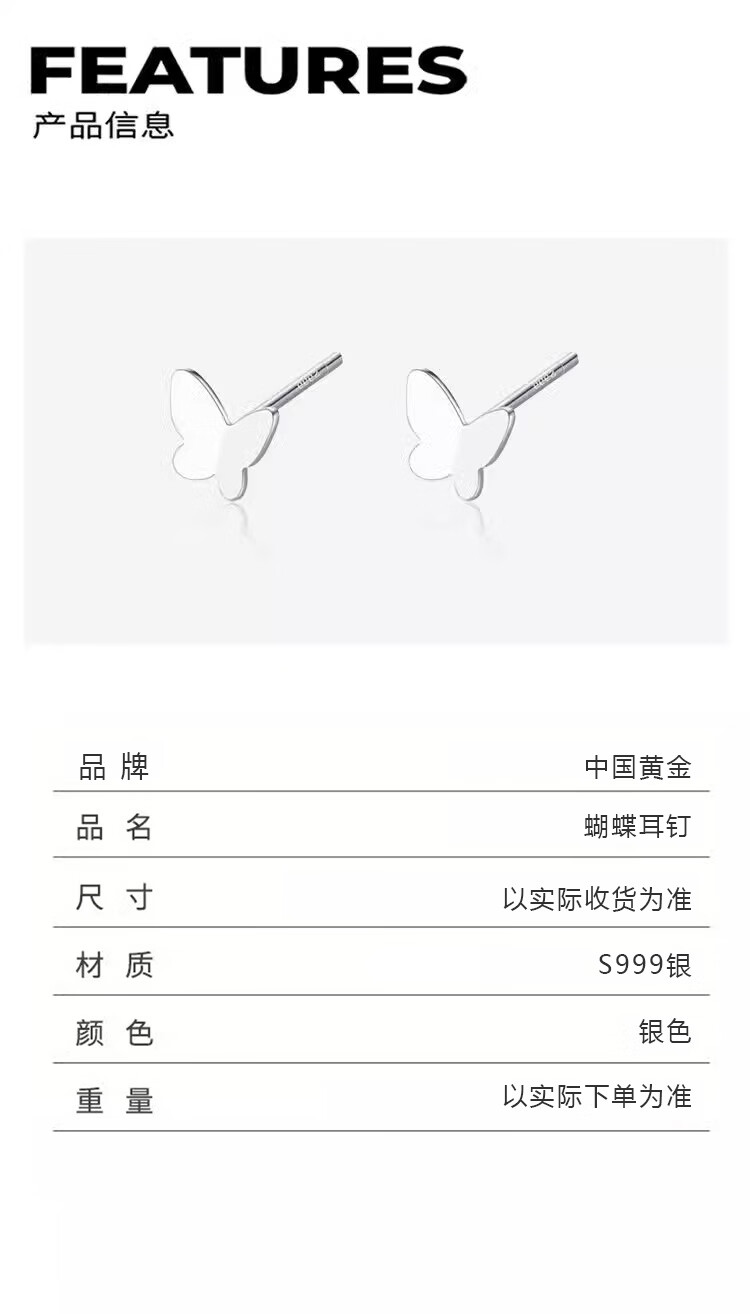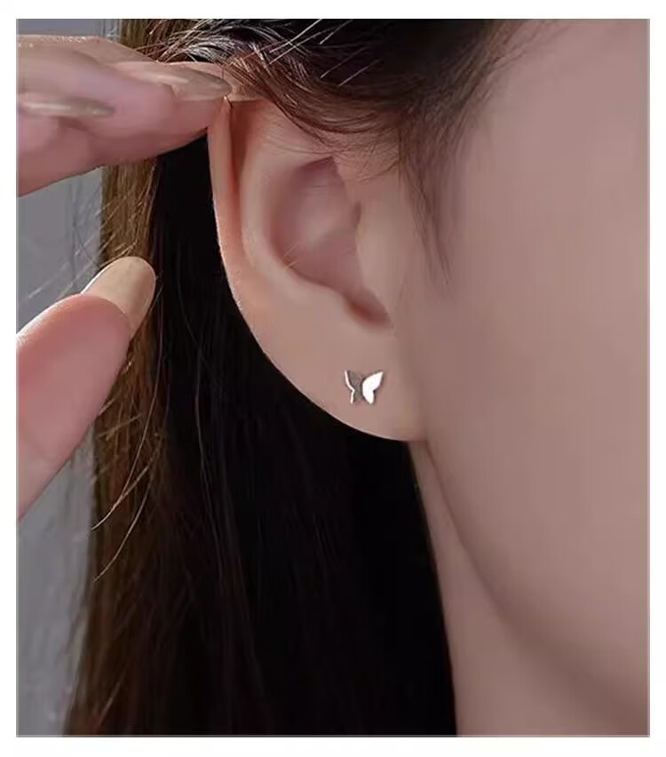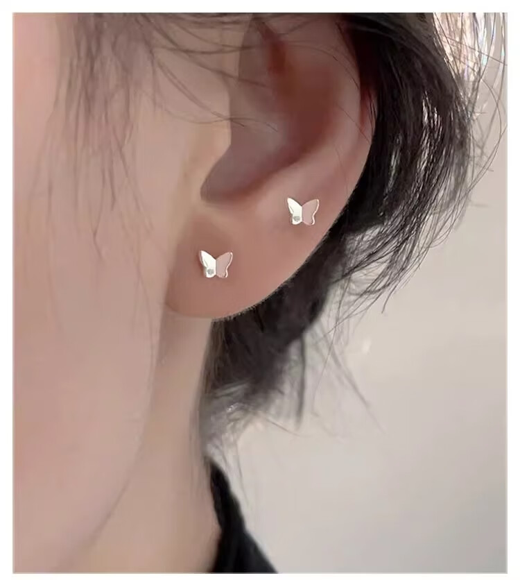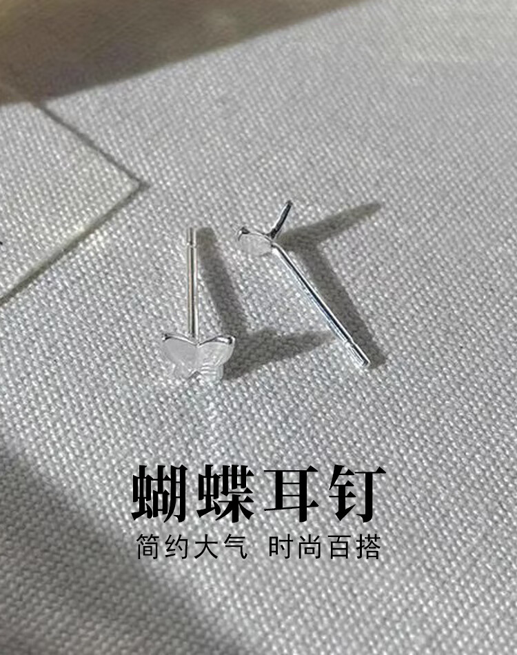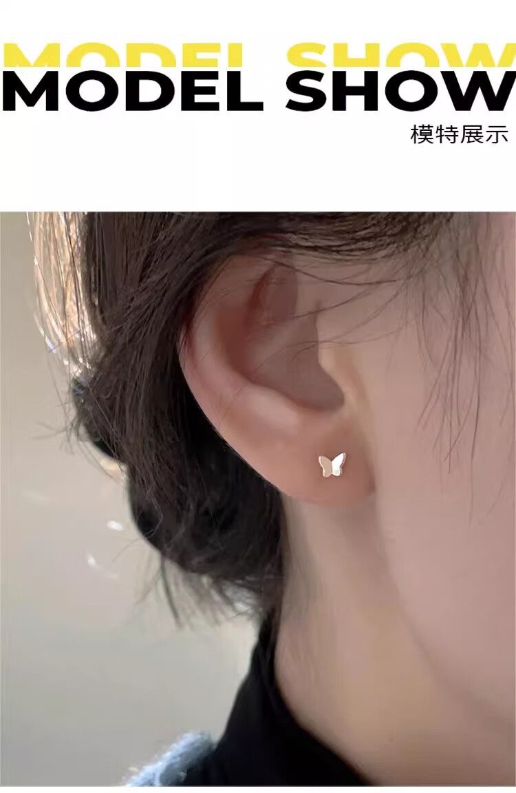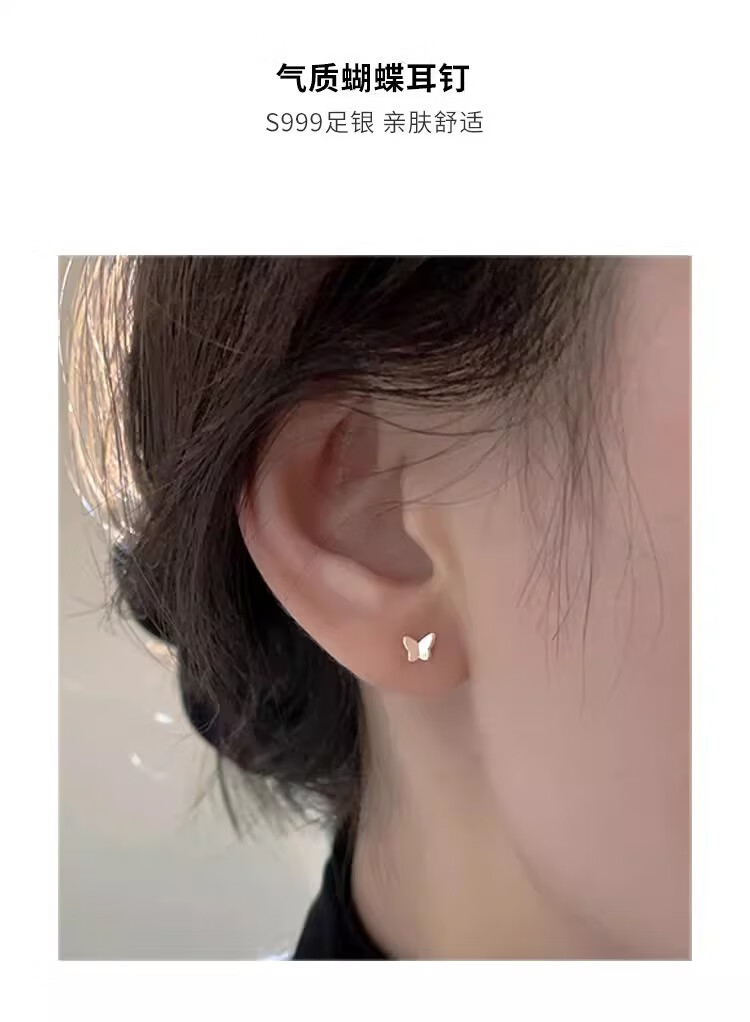 China Gold 999 Pure Silver Butterfly Earrings Women's Ear Bone Nails High-end Earrings Exquisite and Small for Ear Holes and Not Easy to Allergy Pure Silver Butterfly Earrings