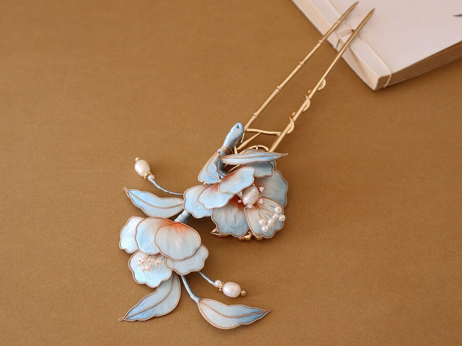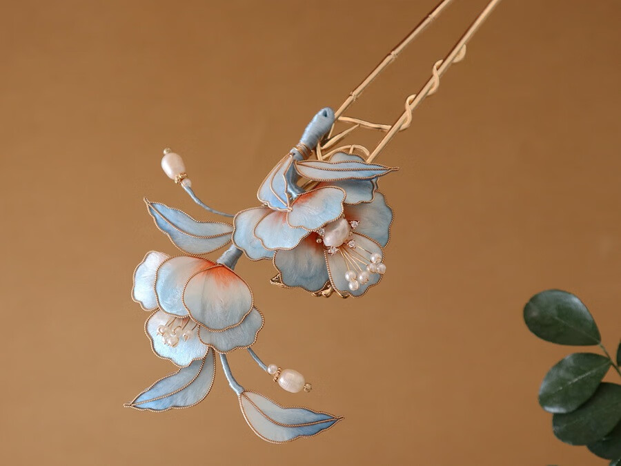 Meng Junchen Intangible Cultural Heritage Gradient Velvet Flower Hairpin New Chinese Hanfu Accessories Ancient Costume Imitation Dotted Green Classic Hairpin Gift Hair Accessory Gradient Blue