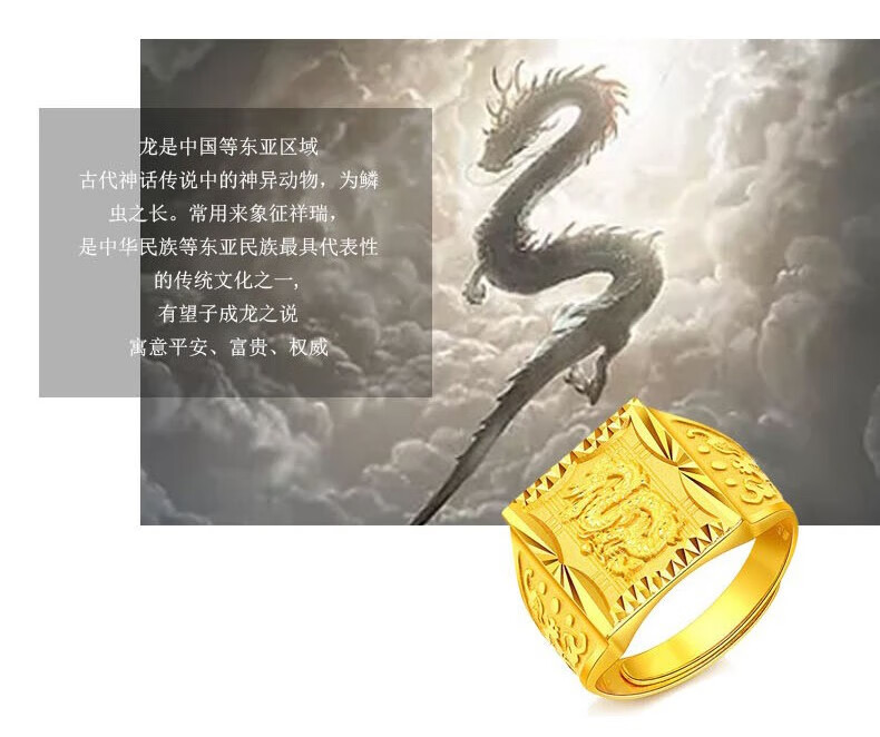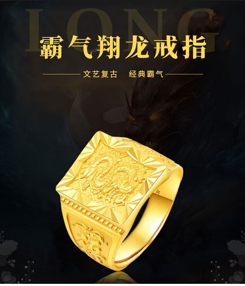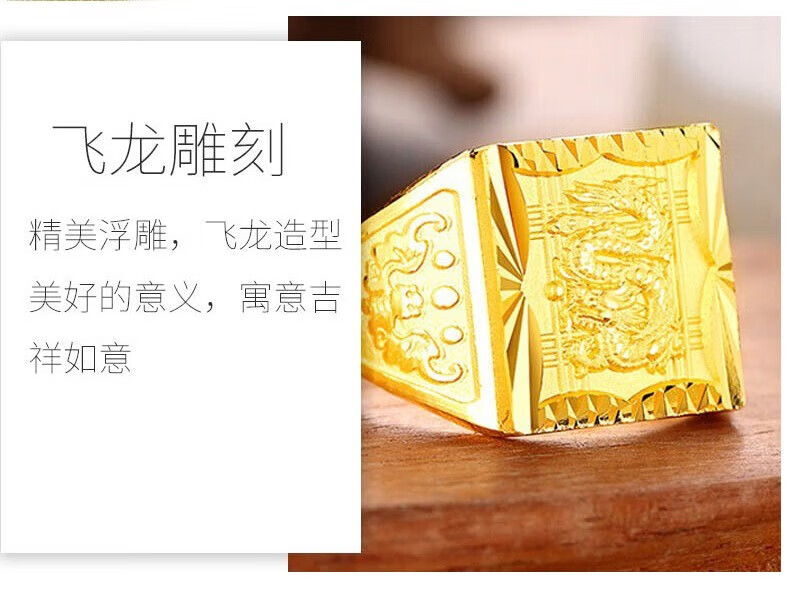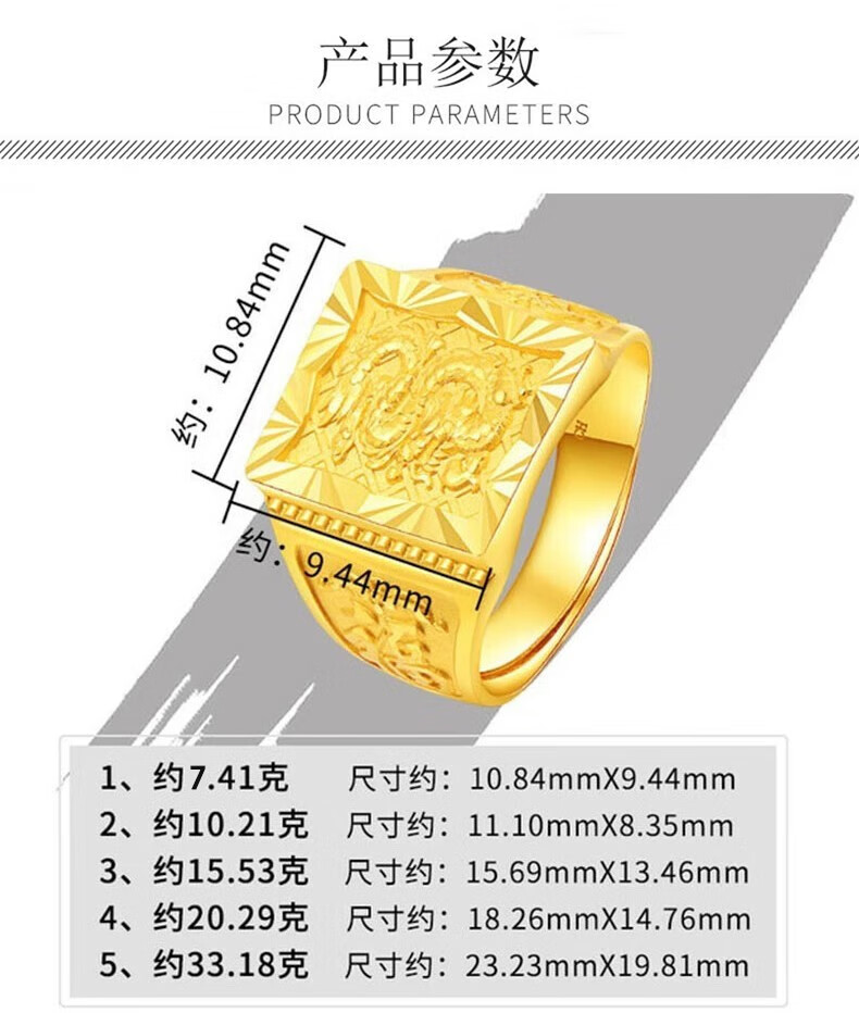 Fuxifeng Feilong gold ring men's solid solid gold 999 dragon pattern gold ring by the gram as a gift for dad and husband 14.58 grams