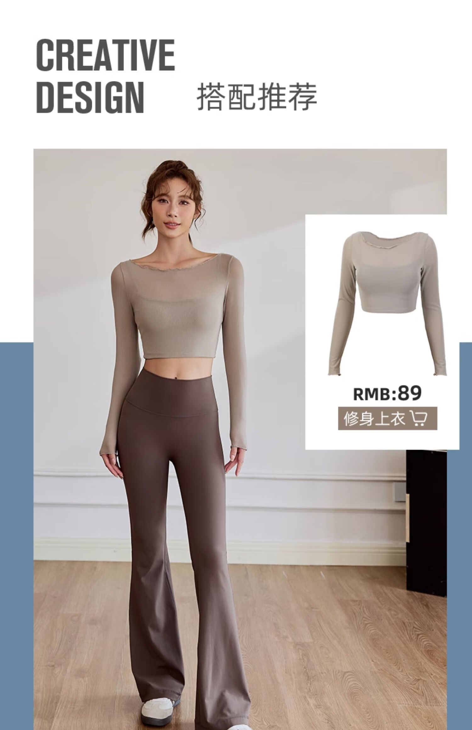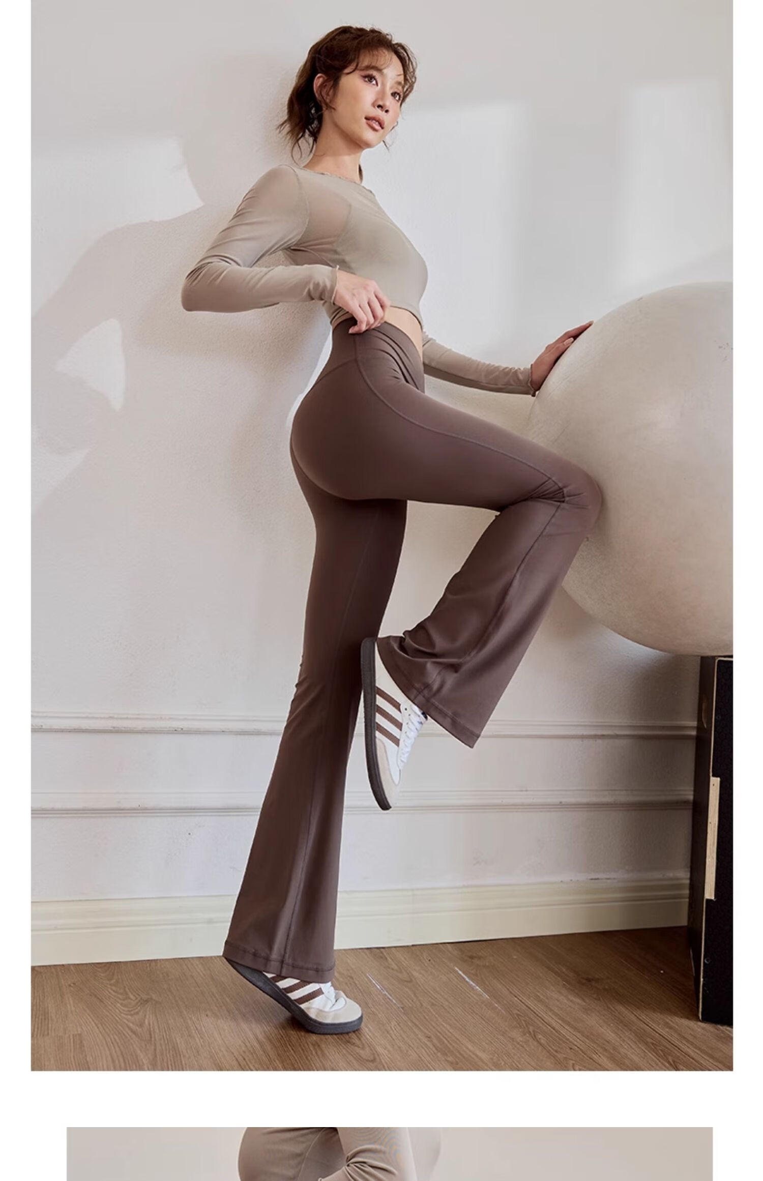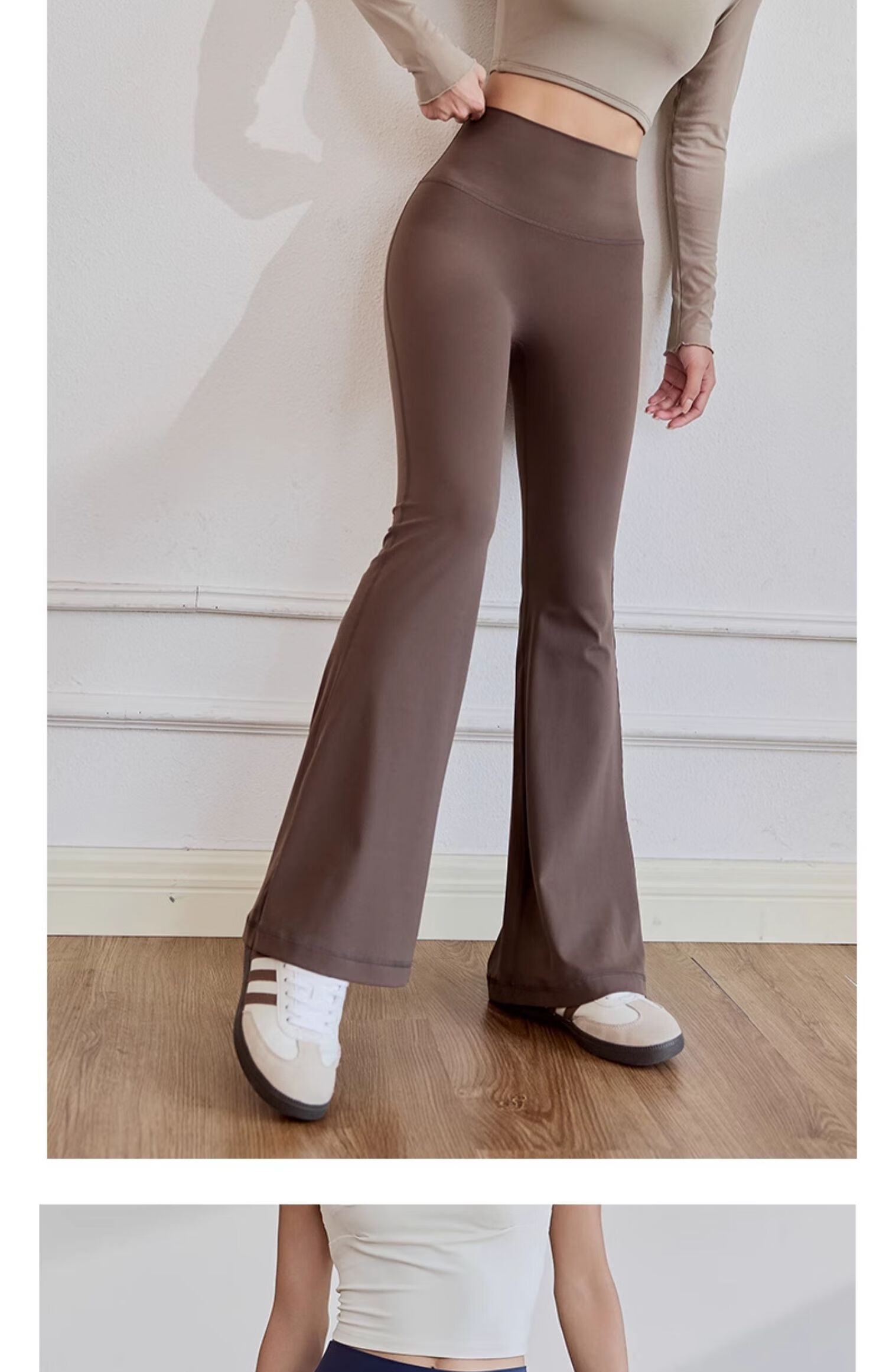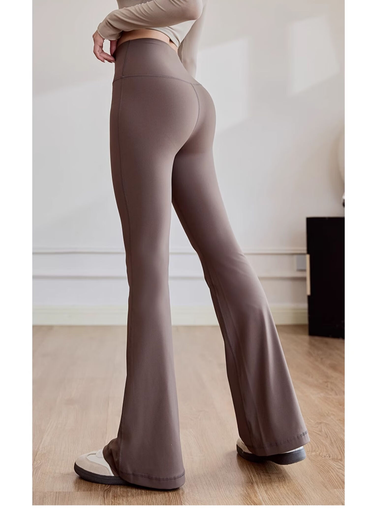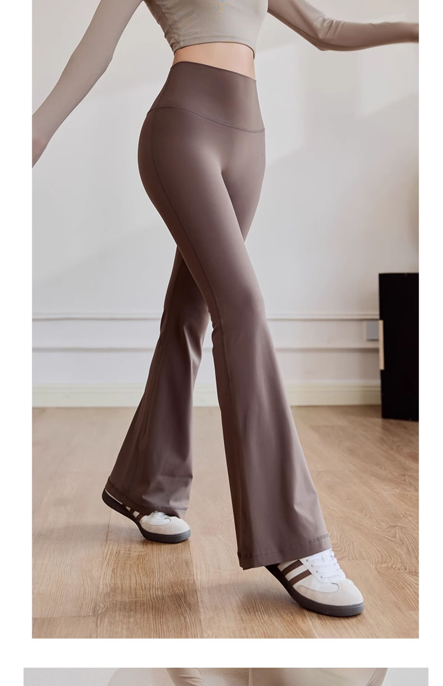 Dcw nude yoga pants women's tight slimming high-waisted fitness pants Pilates training micro-flare sports pants tea brown S