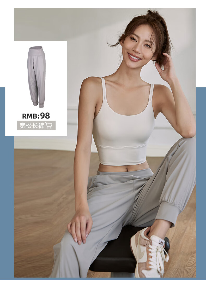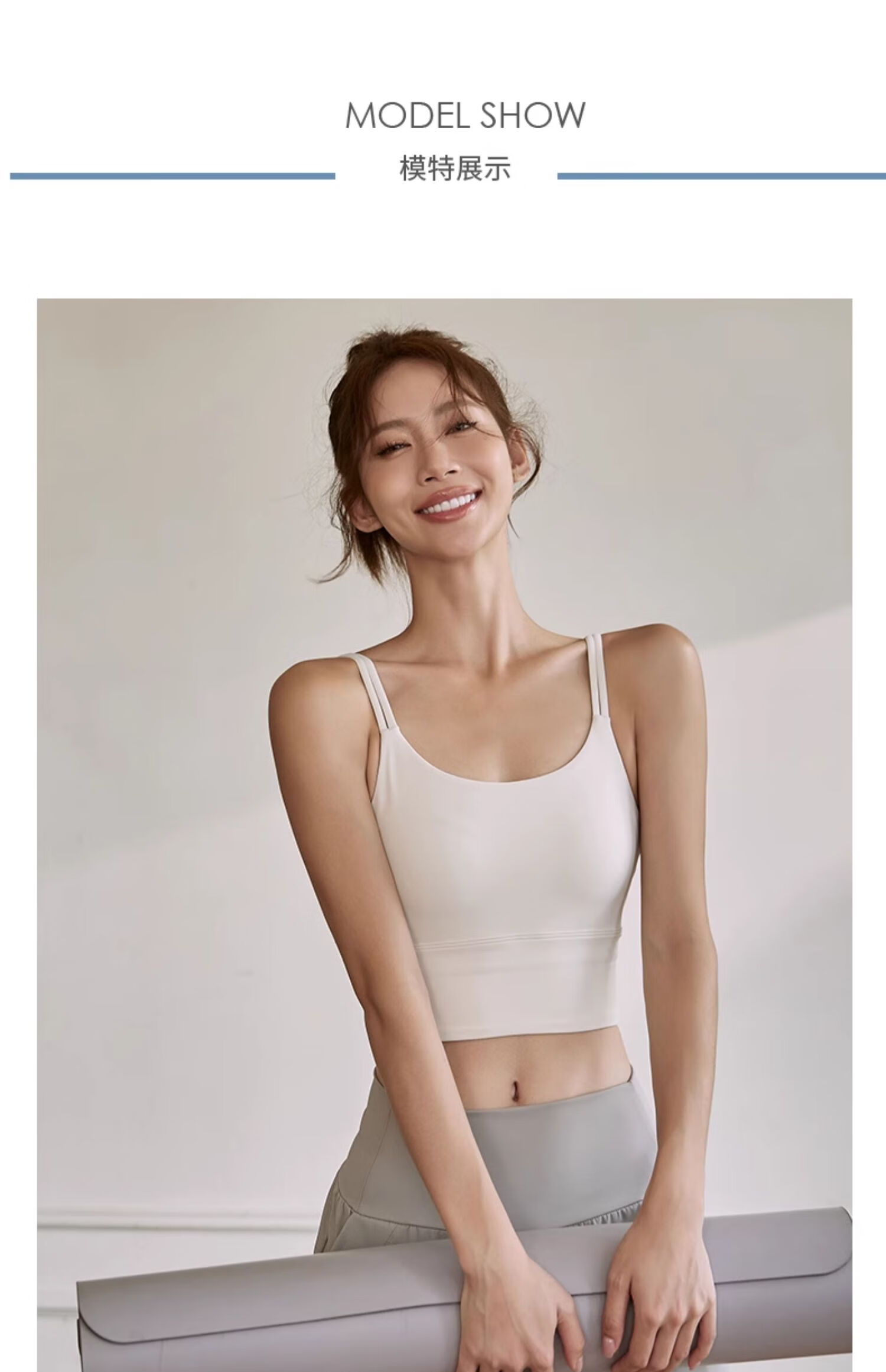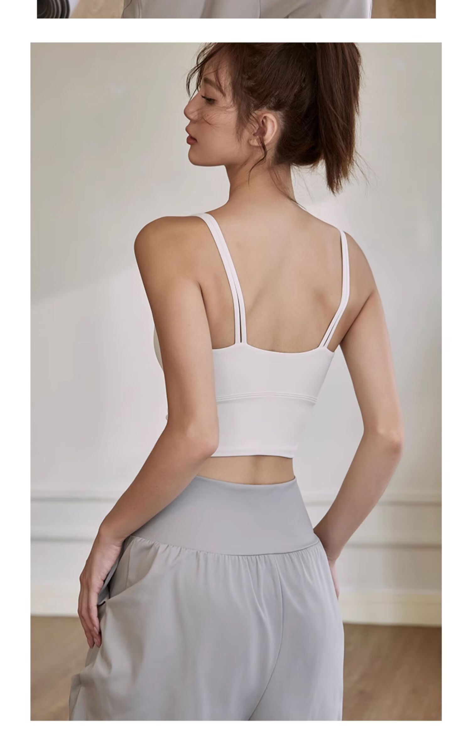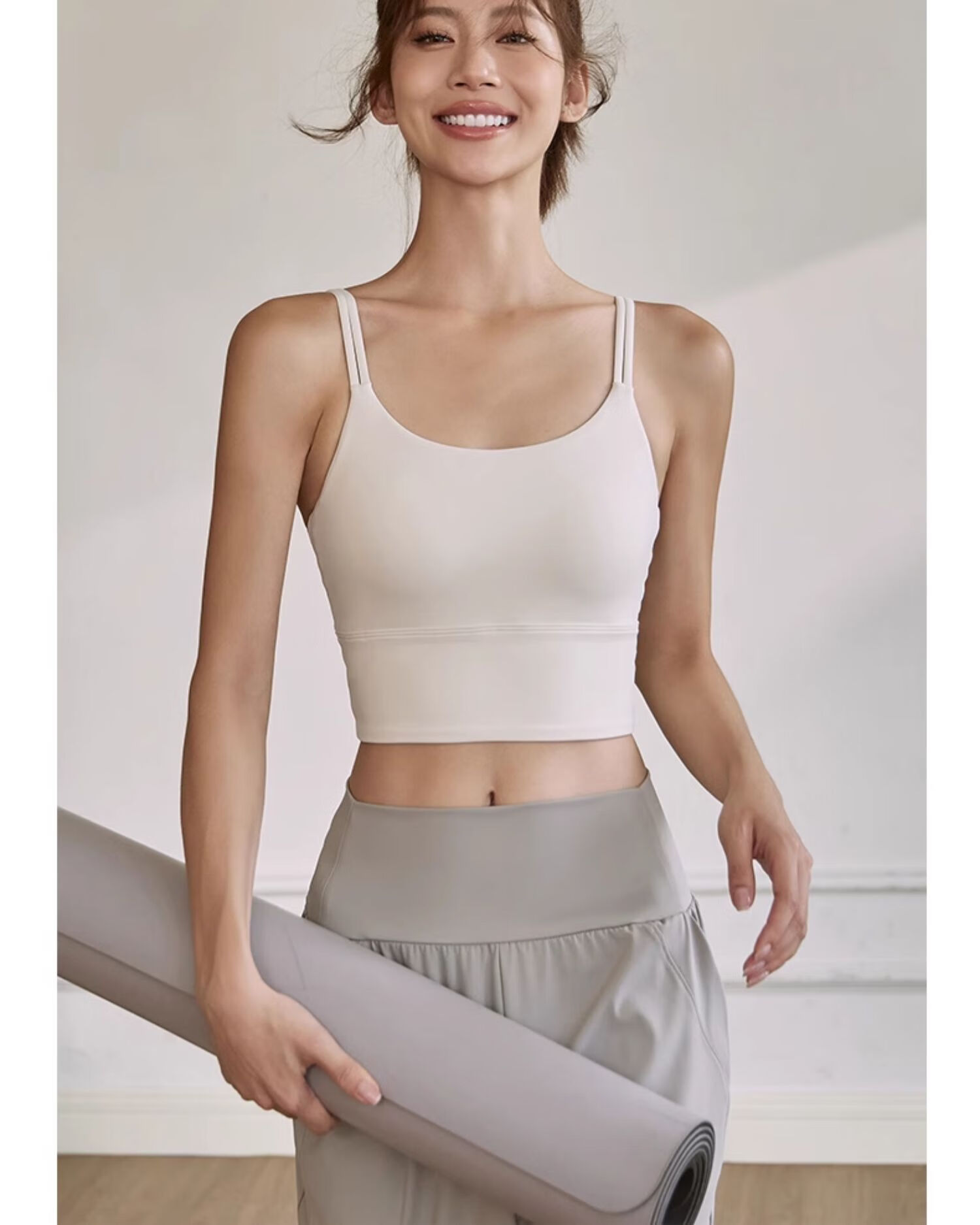 Dcw sports bra women's running shock-proof fitness vest spaghetti straps Pilates training all-in-one bra bra strap light ivory S